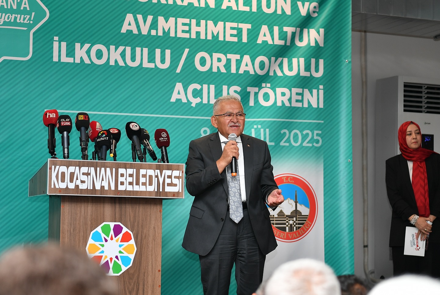 Kocasinan ilçesinde açılışı yapılan ve hayırsever Altun ailesi tarafından yaptırılan Türkan Altun ve Avukat Mehmet Altun İlkokulu-Ortaokulu’nda, saygı duruşunda bulunulması ve İstiklal Marşı’nın okunması ile başlayan yeni eğitim öğretim yılı açılış törenine, Kayseri Büyükşehir Belediye Başkanı Dr. Memduh Büyükkılıç’ın yanı sıra önceki dönem Çevre, Şehircilik ve İklim Değişikliği Bakanı Mehmet Özhaseki ile Kayseri Valisi Gökmen Çiçek, Garnizon Komutanı Hava Tuğgeneral Volkan Ersun Acar, AK Parti Kayseri Milletvekilleri Murat Cahid Cıngı, Sayın Bayar Özsoy, Kocasinan Kaymakamı Erdoğan Turan Ermiş, Erciyes Üniversitesi Rektörü Prof. Dr. Fatih Altun, AK Parti Kayseri İl Başkanı Hüseyin Okandan, Kocasinan Belediye Başkanı Ahmet Çolakbayrakdar, İl Milli Eğitim Müdürü Coşkun Esen ile Hayırsever Avukat Mehmet Altun, Hayırsever İş İnsanı Osman Ulubaş, eğitimciler, öğrenciler ve vatandaşlar katıldı.