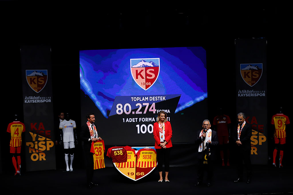 Kayseri Büyükşehir Belediye Başkanı Dr. Memduh Büyükkılıç, “Kayserispor’a Vefa” gecesine katılarak hem maddi destek verdi hem de canlı bağlantılara eşlik ederek konukların yardım miktarını artırmalarına öncülük etti. “Kayseriliyim” diyen ve bundan gurur duyanların şehrin takımına sahip çıktığı “Kayserispor’a Vefa” gecesinde Büyükşehir Belediye Başkanı Dr. Memduh Büyükkılıç’ın sergilediği tavır örnek oldu. Başkan Büyükkılıç, geceye maddi manevi destek veren herkese teşekkür etti. Kayseri’nin marka değerlerinin başında gelen Kayserispor’a Vefa Gecesi düzenlenerek yaklaşık 80 binin üzerinde forma ve SMS ile katkı sağlandı. Kadir Has Kongre ve Kültür Salonu’nda gerçekleştirilen “Kayserispor’a Vefa” gecesi Beyaz Tv, TGRT EU ve Kayseri televizyonları ekranlarından canlı olarak yayınlandı. Kayserispor Başkanı Erol Bedir’in ev sahipliğinde gerçekleşen törene Kayseri Büyükşehir Belediye Başkanı Dr. Memduh Büyükkılıç’ın yanı sıra Kayseri Valisi Şehmus Günaydın, AK Parti Kayseri Milletvekili İsmail Tamer, ilçe belediye başkanları, Kayseri’nin önemli iş adamları ve Kayserispor taraftarları katıldı. Ünlü TV sunucuları Ersin Düzen ve Şükran Albayrak’ın moderatörlüğünde gerçekleşen geceye Kayseri’nin yetiştirdiği önemli iş adamları, siyasiler, sivil toplum kuruluşlarının temsilcileri canlı yayına bağlanarak kampanyaya katkı sağladılar. Başkan Büyükkılıç’tan Sıkı Pazarlık Telefon ile canlı yayına bağlanarak Kayserispor’a destek vermek isteyen Kayseri’nin tanınmış isimlerinin aldığı forma adedini az bulan Büyükşehir Belediye Başkanı Memduh Büyükkılıç, yaptığı sıkı pazarlıklarla forma sayılarını ikiye katladı. Pazarlıklar sırasındaki konuşmalar renkli görüntülere sahne oldu. Birlik Vurgusu Düzenlenen Vefa Gecesi’nde bir konuşma yapan Kayseri Büyükşehir Belediye Başkanı Dr. Memduh Büyükkılıç, bu şekilde bir gecenin Kayseri’de ilk defa düzenlendiğine vurgu yaparak, emeği geçenlere teşekkür etti. Başkan Büyükkılıç, konuşmasına şöyle devam etti: “Önemli olan bir şey vermek almak değil, önemli olan sahip çıkma duygusunu geliştirmek, pekiştirmektir. O açıdan belki keşke benim de imkanım olsaydı da ben de destek olsaydım diyenler, belki destek olanlardan çok daha fazla bu anlamda şehrine sahip çıkma duygusunu geliştirmiştir. O açıdan ben katkı sağlayanlara minnet duyuyor, teşekkür ediyorum. Katkı sağlamak isteyip de katkı sağlayamayan dostlarımıza da inşallah fırsatların bitmediğini hatırlatıyorum. SMS kampanyamız devam ediyor.” Başkan Büyükkılıç, Taraftarların İsteklerine Kayıtsız Kalmadı Kayserispor’a Vefa programında en büyük katkı da yine Kayseri Büyükşehir Belediye Başkanı Dr. Memduh Büyükkılıç’tan geldi. Kadir Has Kongre ve Kültür Merkezi’ni dolduran taraftarların yoğun istek ve tezahüratlarına kayıtsız kalmayan Başkan Memduh Büyükkılıç, aldığı 10 bin 38 forma ile gecenin rekorunu kırdı. Başkan Büyükkılıç’ın katkısı üzerinde salonda büyük bir coşku hakim olurken taraftarlar Başkan Büyükkılıç’a ‘’Büyük Başkan’’ sloganları atarak duydukları memnuniyeti dile getirdiler.
