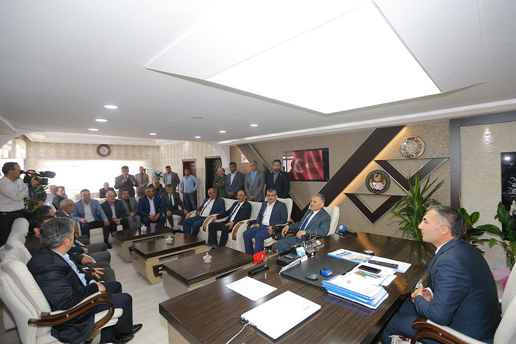 Kayseri Büyükşehir Belediye Başkanı Dr. Memduh Büyükkılıç, kent merkezinin yanı sıra ilçelerde de yoğun bir şekilde çalışmaya devam ediyor. Başkan Memduh Büyükkılıç, Sarız ve Pınarbaşı ilçelerini de ziyaret ederek, ilçelerin taleplerine ilişkin bilgiler aldı. Dün gece teravih namazı ve sonrasında Bünyan’da bulunan Büyükşehir Belediye Başkanı Dr. Memduh Büyükkılıç, bugün de Sarız ve Pınarbaşı ilçelerine gitti. İlk ziyaretini Sarız’a yapan Başkan Büyükkılıç, Sarız Belediyesine geçerek Belediye Başkanı Baki Bayrak ile görüştü. Başkan Büyükkılıç, Sarız’a ilgili bürokratlarıyla birlikte gitti. Sarız Belediye Başkanı Baki Bayrak, Başkan Büyükkılıç’ın ziyaretinden duyduğu memnuniyeti dile getirdi ve Sarız’da yapmakta oldukları projelerle ilgili bilgiler verdi. Başkan Bayrak’ın Hayvan Pazarı’nı gündeme getirmesi üzerine yer konusunun belirlenmesinin ardından Büyükşehir olarak konuyu değerlendireceklerini ifade eden Başkan Memduh Büyükkılıç, “Tarım ve hayvancılığı geliştirmek için ne yapılması gerekiyorsa azamisini yapmaya hazırız” dedi. SARIZ’DAN PINABAŞI’YA GEÇTİ Büyükşehir Belediye Başkanı Memduh Büyükkılıç, Sarız ilçesinin ardından Pınarbaşı ilçesine geçti. Pınarbaşı ilçesinde ilk ziyaretini Pınarbaşı Kaymakamlığına yapan Başkan Büyükkılıç, İlçe Kaymakamı Aziz Oğuz Alemdaroğlu ile bir süre görüştü. Başkan Büyükkılıç daha sonra Pınarbaşı Belediye Başkanı Memduh Uzunluoğlu’nu ziyaret etti. Uzunluoğlu’na hayırlı olsun temennilerini ileten Başkan Büyükkılıç, bir süre karşılıklı görüştü. Uzunluoğlu, Başkan Büyükkılıç’a ilçede yapacakları projelerle ilgili bilgiler verdi. Büyükşehir Belediye Başkanı Büyükkılıç, Pınarbaşı Belediye Başkanı Uzunluoğlu ile birlikte yapılmak istenen bazı projelerle ilgili sahada incelemelerde bulundu. Cuma namazını da Pınarbaşı Karslı Camisi’nde kılan Başkan Memduh Büyükkılıç, namaz sonrası cemaatle selamlaştı. Başkan Büyükkılıç, “Pınarbaşı ve Sarız Belediye Başkanlarımızla el ele gönül gönüle halkımıza hizmet için çalışacağız. Başkanlarımıza gösterdikleri sıcak ilgiden dolayı teşekkür ederim” dedi. Pınarbaşı Belediye Başkanı Memduh Uzunluoğlu da Başkan Büyükkılıç’ın ziyaretinden duydukları memnuniyeti dile getirerek, “Başkanımız bizim projelerimizde gerekli desteği sağlıyorlar. Biz kendisinden razıyız, Allah da razı olacak inşallah” diye konuştu.