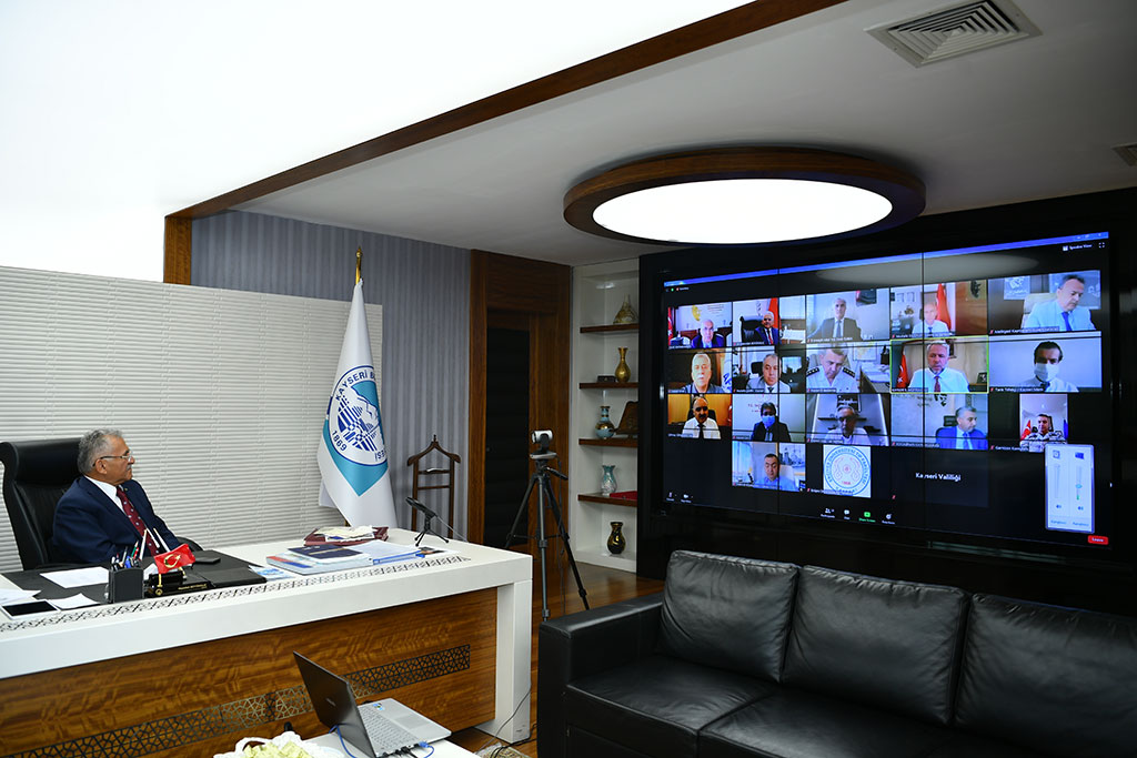 Büyükşehir Belediye Başkanı Dr. Memduh Büyükkılıç, üyesi olduğu İl Pandemi Kurulu toplantısına katıldı. Başkan Büyükkılıç, toplantıda, İçişleri Bakanı Süleyman Soylu ve Sağlık Bakanı Fahrettin Koca ile Ankara’da pandemi süreciyle ilgili yaptığı görüşmenin detaylarını kurul üyeleri ile paylaştı. Başkan Büyükkılıç, Vali Şehmus Günaydın’ın başkanlığında video konferans yöntemiyle gerçekleştirilen toplantıda, Büyükşehir Belediyesi’nin pandemi sürecinde yaptığı çalışmaları değerlendirerek, tüm kamu kurum ve kuruluşları ile yürütülen uyumlu çalışmaların başarıyla sürdürüldüğüne işaret etti. 2 gün süreyle Ankara’da bulunduğunu ve Kayseri’nin yararına gerçekleşecek çalışmalarla ilgili önemli görüşmelerde bulunduğunu hatırlatan Başkan Büyükkılıç, İçişleri Bakanı Süleyman Soylu ve Sağlık Bakanı Fahrettin Koca ile de Kayseri’de “Pandemi” sürecine yönelik çalışmalarla ilgili görüştüğünü ifade etti. İl Pandemi Kurul üyelerine İçişleri ve Sağlık Bakanları ile yaptığı görüşmenin detaylarını anlatan Başkan Büyükkılıç, Vali Şehmus Günaydın başta olmak üzere tüm yöneticilerle birlikte yürütülen çalışmaların Ankara tarafından takdirle karşılandığını ve çalışmaların kararlılıkla sürdürülmesi gerektiğinin vurgulandığını kaydetti. Toplantıda, İçişleri Bakanlığı tarafından 81 ile gönderilen genelge kapsamında yapılan denetimler ve uyulması gereken tedbirler ve önlemler konuşuldu.