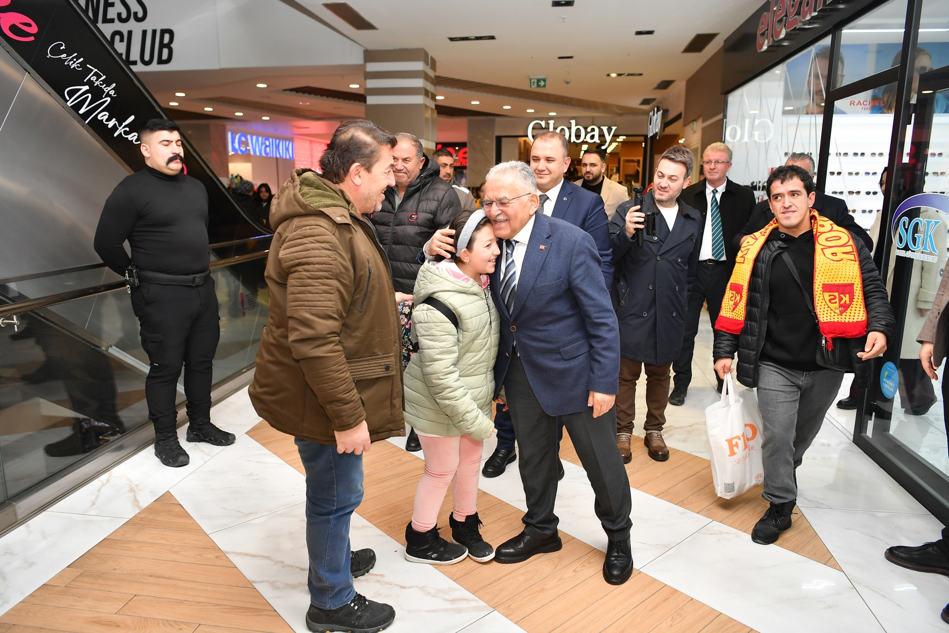 AVM ziyaretinde Başkan Büyükkılıç’a Büyükşehir Belediyesi Genel Sekreter Yardımcıları Fatih Temeltaş ile Ufuk Sekmen ve daire başkanları da eşlik etti.