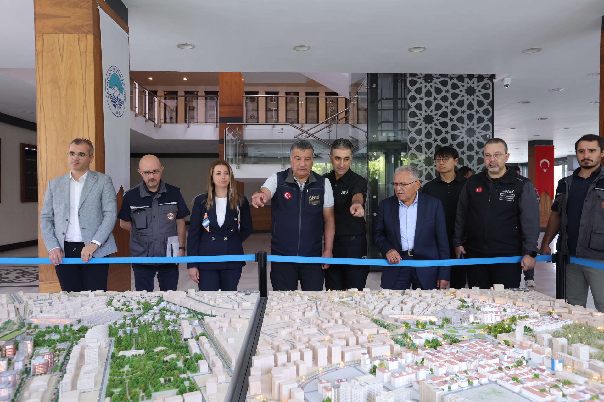 Kayseri Büyükşehir Belediye Başkanı Dr. Memduh Büyükkılıç, AFAD Deprem ve Risk Azaltma Genel Müdürü Prof. Dr. Orhan Tatar ile beraberindeki MTA Genel Müdürlüğü’nün proje koordinatörleri, Güney Kore KIGAM proje koordinatörleri ve Kayseri İl Afet ve Acil Durum Müdürü Rifat Genç’i, Büyükşehir Belediyesi Başkanlık Toplantı Salonu’ndan konuk etti. Kayseri’deki çalışmalar ile deprem konusundaki bilgilerin değerlendirildiği toplantıda Büyükkılıç, depremlerin ardından dirençli kentler konusunun önem arz ettiğini vurguladı.