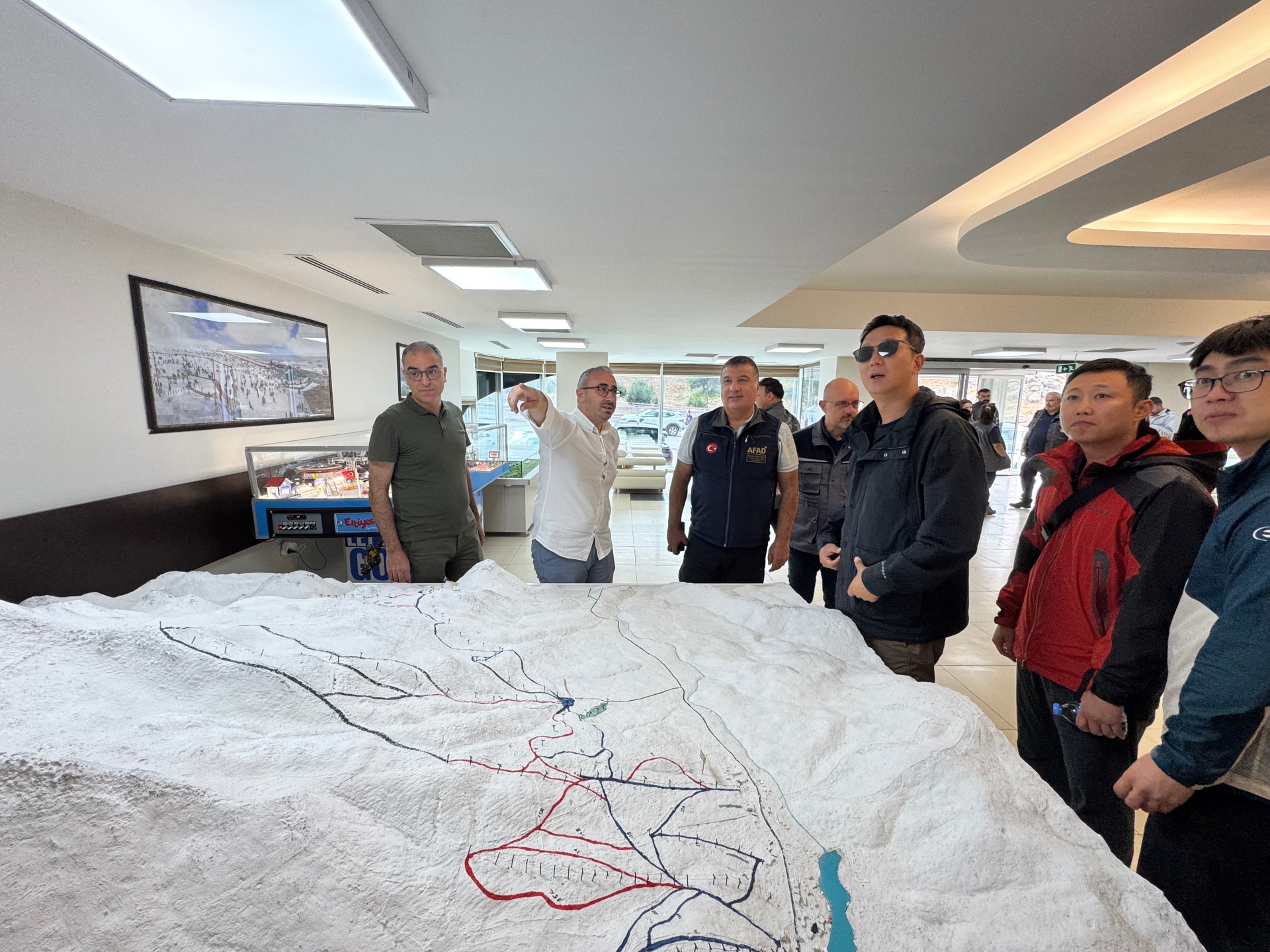 AFAD Deprem ve Risk Azaltma Genel Müdürü Prof. Dr. Orhan Tatar, AFAD İl Müdürü Rifat Genç ve beraberindeki MTA Genel Müdürlüğü’nün proje koordinatörleri ve Güney Kore KIGAM proje koordinatörlerine Erciyes ziyaretinde, Erciyes A.Ş. Yönetim Kurulu Başkanı Hamdi Elcuman, Büyükşehir Belediyesi Afet İşleri Daire Başkanı Gonca Arın ve Erciyes A.Ş. Genel Müdürü Zafer Akşehirlioğlu da eşlik ederek Erciyes hakkında proje heyetini bilgilendirdi.