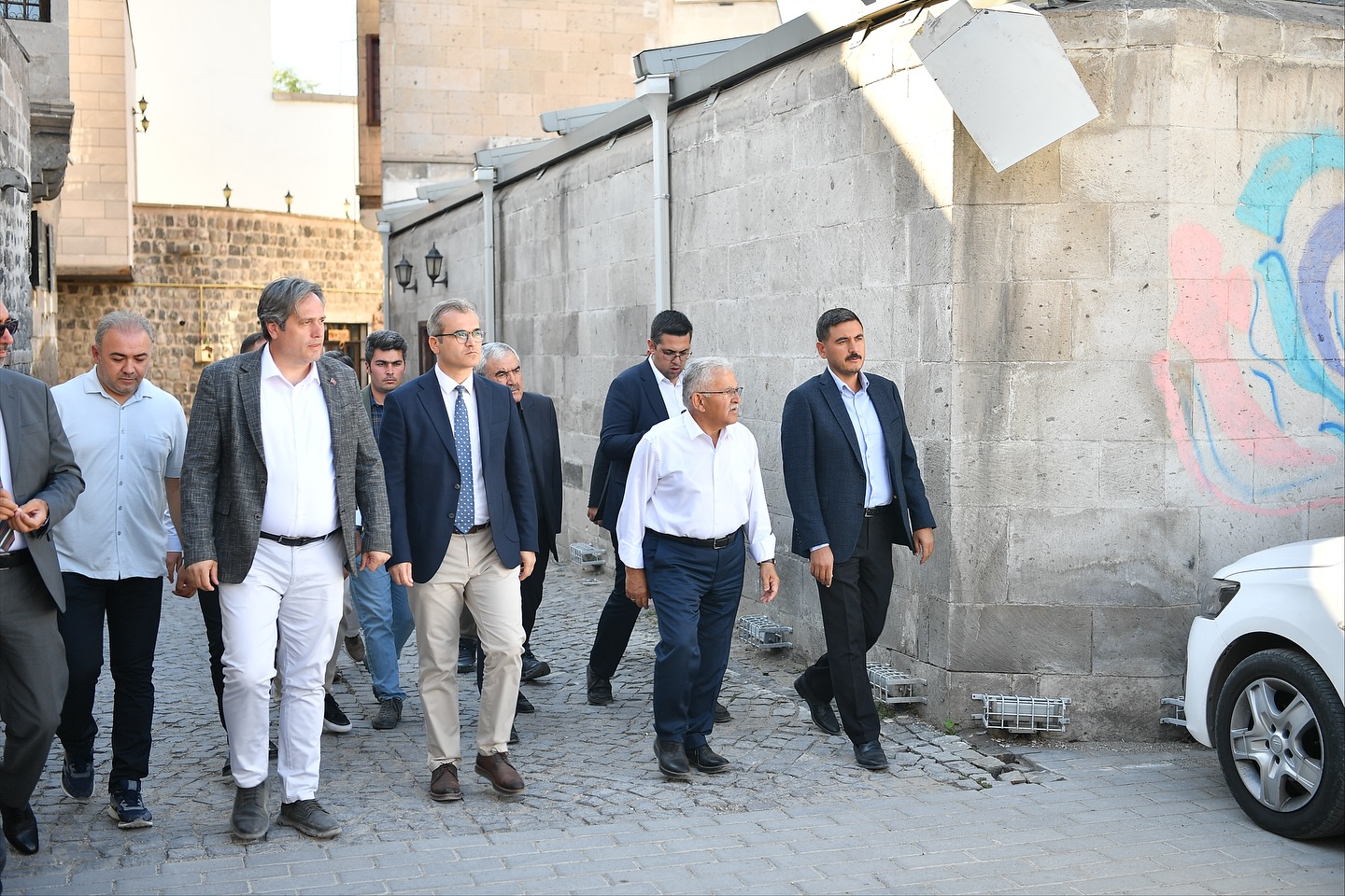 Bu kapsamda Başkan Büyükkılıç, tarihi Kayseri Mahallesi dokusunun ortaya çıkarılması için Tavukçu Mahallesi Projesi’nin 2’nci ve 3’üncü etap yapım çalışmalarında incelemelerde bulundu.