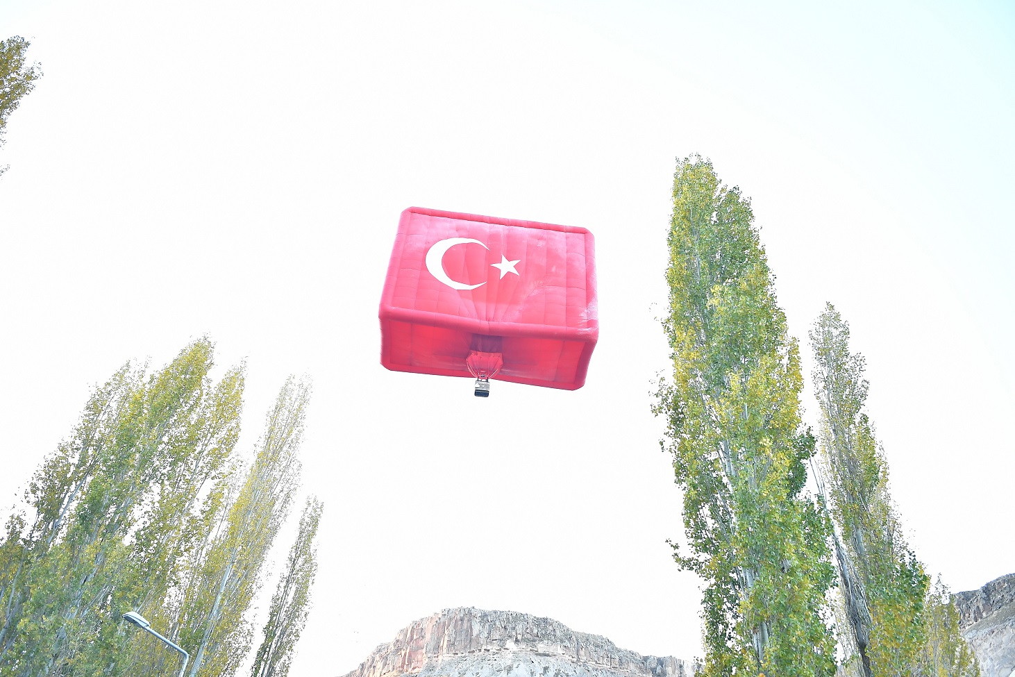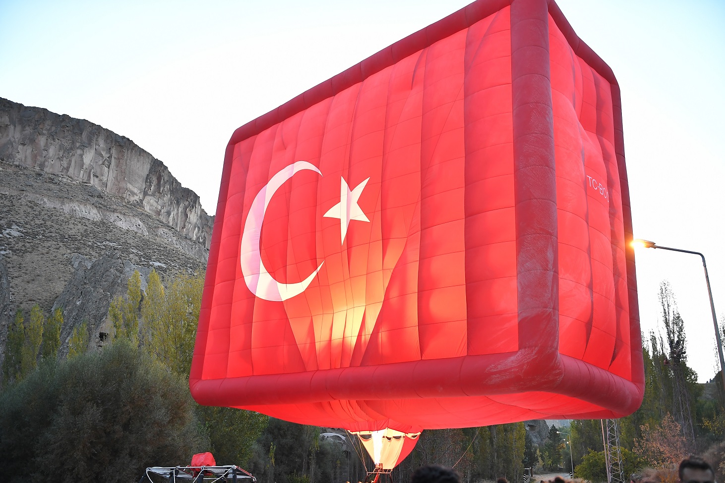 hava balonu, Cumhuriyet Bayramı’na özel uçuşla gökyüzüne yükseldi.