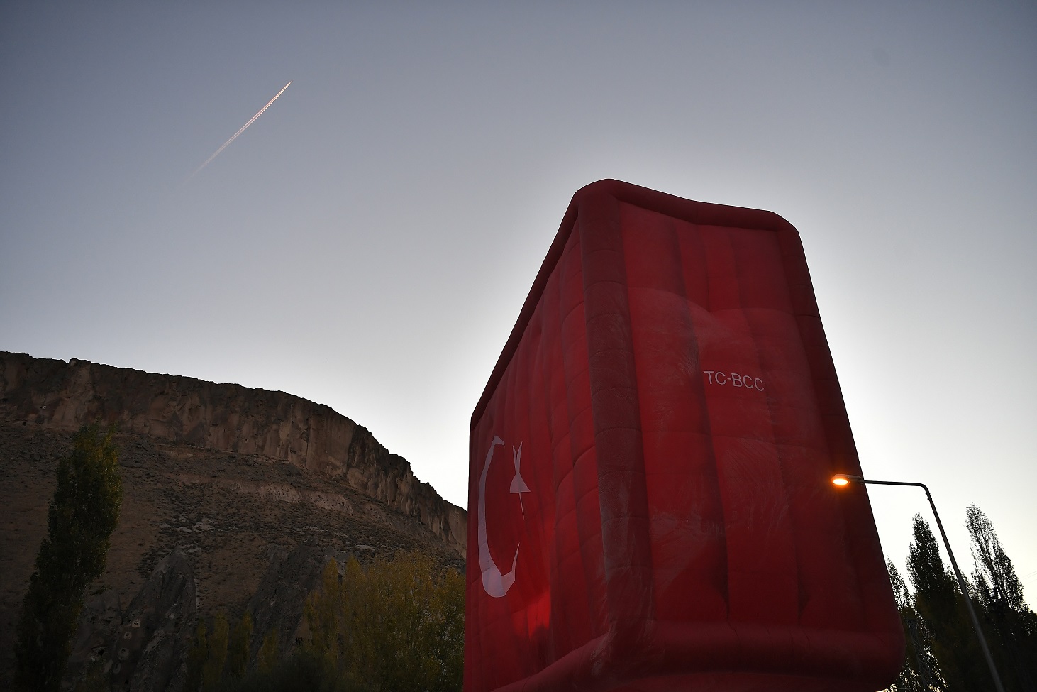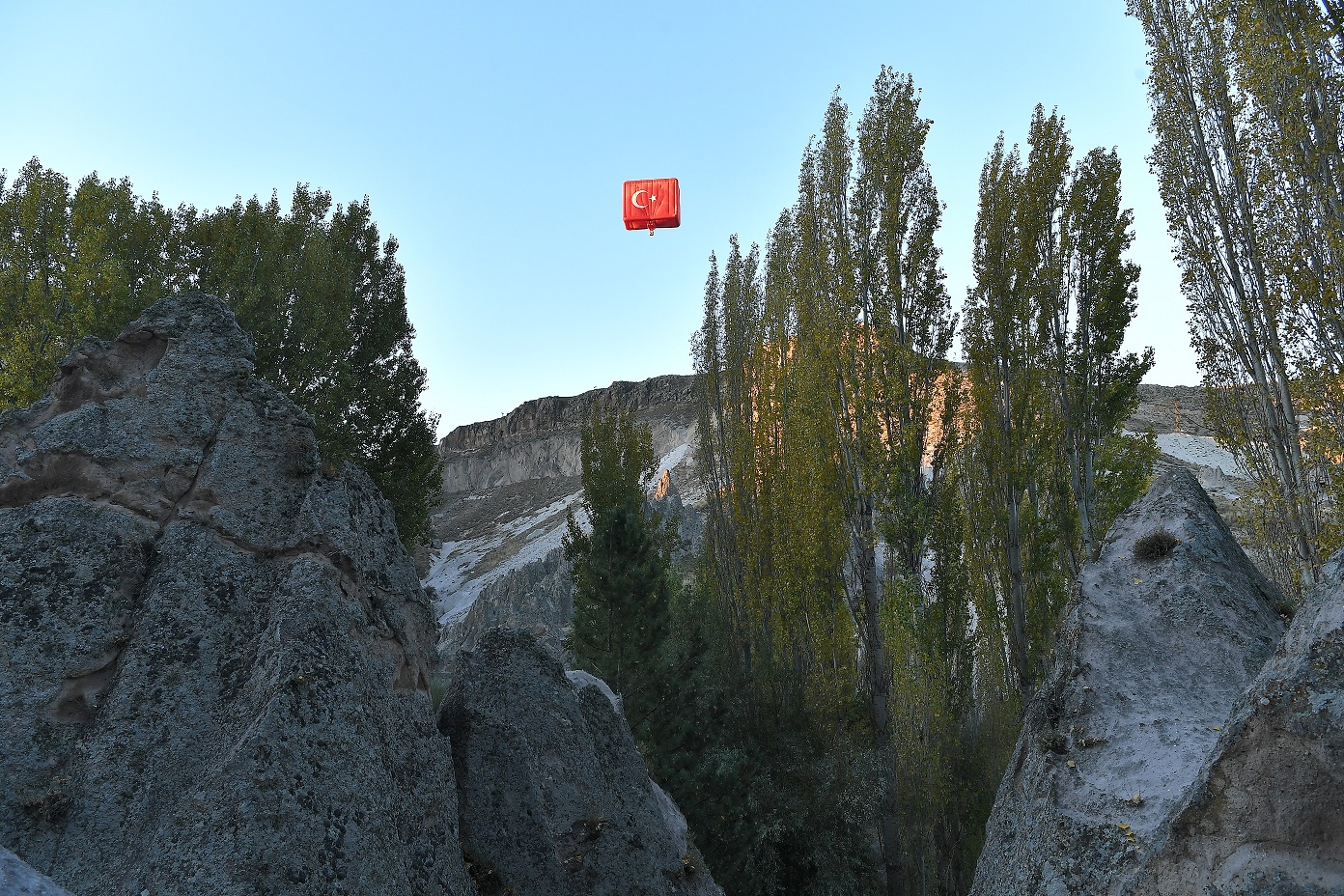 zenginlikleriyle tanınan turizm merkezi Soğanlı’da Türk Bayrağı figürlü sıcak