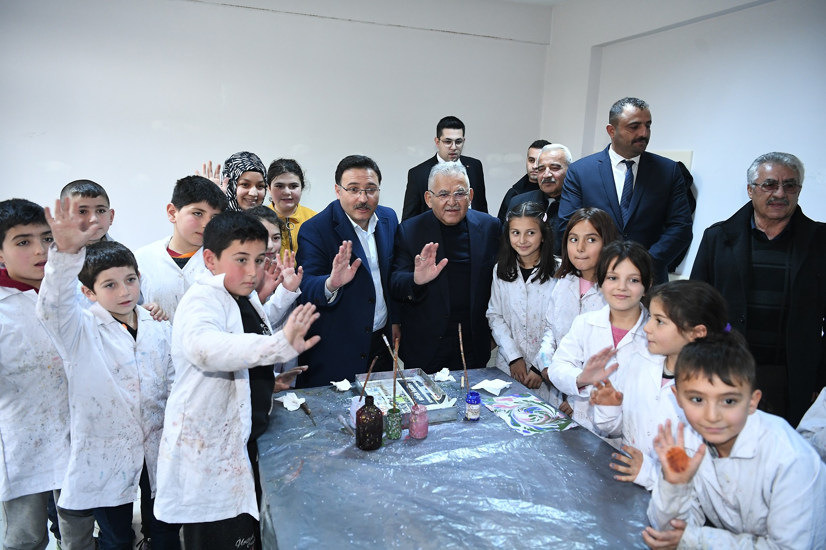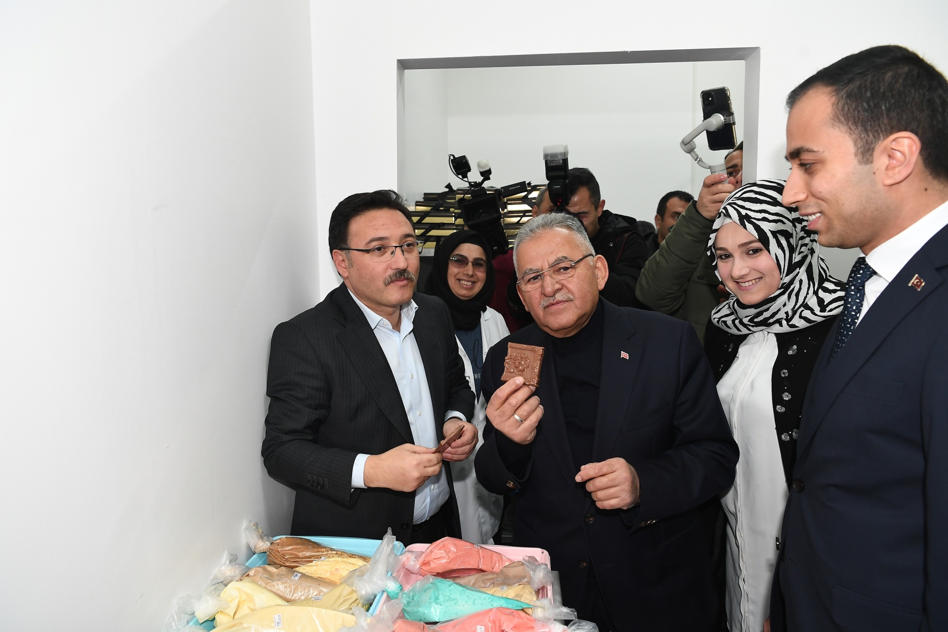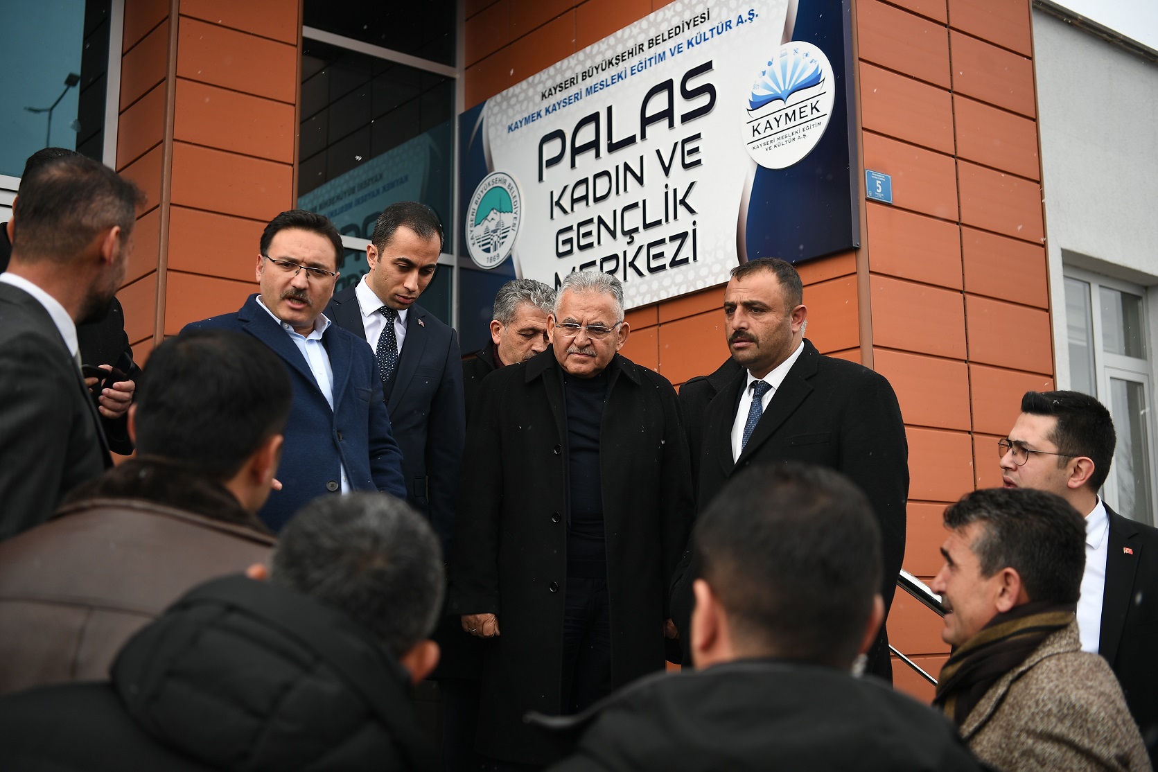 Başkan Büyükkılıç, Vali Gökmen Çiçek ile birlikte KAYMEK Palas Kadın ve Gençlik Merkezi’ni ziyaret etti. Büyükkılıç ile Çiçek, gençlerle ve kadın kursiyerleriyle bir araya geldi. Çocuklarla yakından ilgilenen Başkan Büyükkılıç ile Vali Çiçek, kadınların da yaptıkları el emeği göz nuru eserleri inceledi.