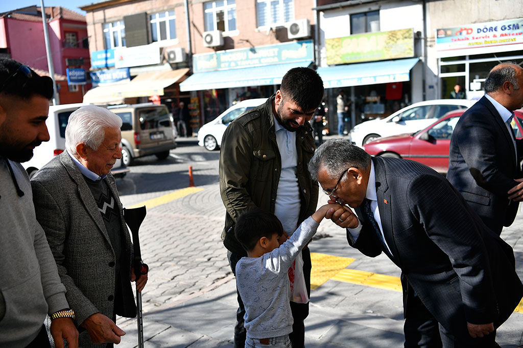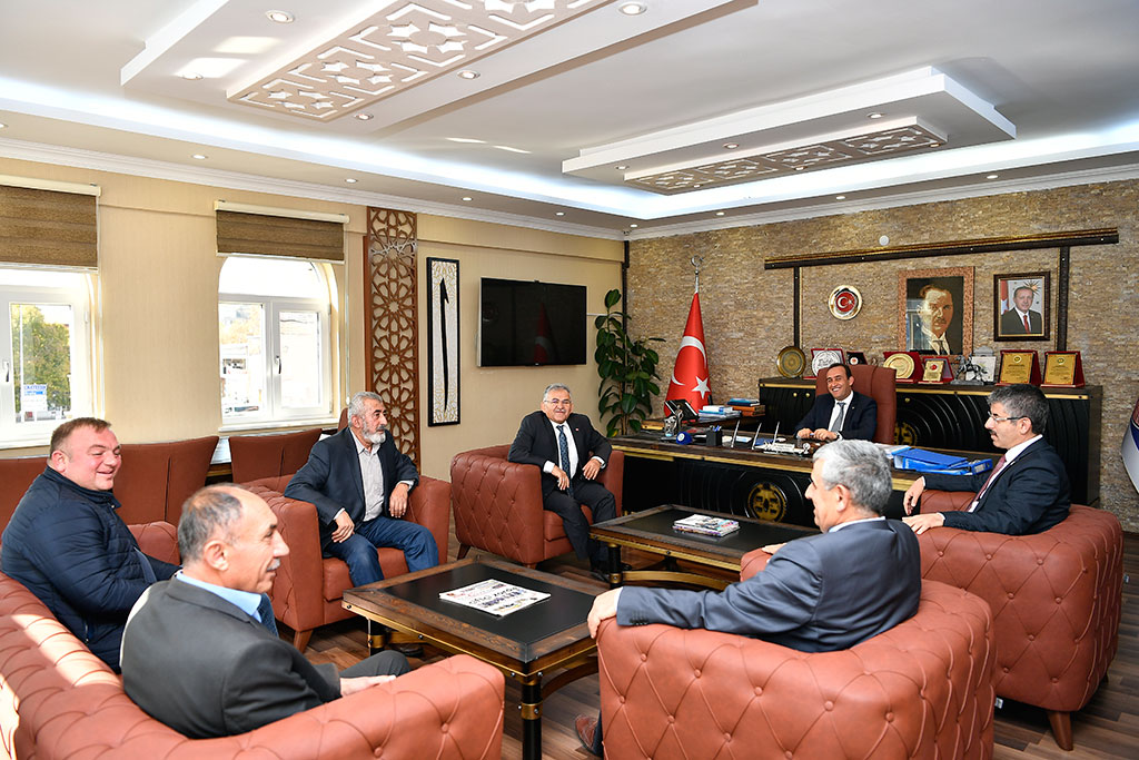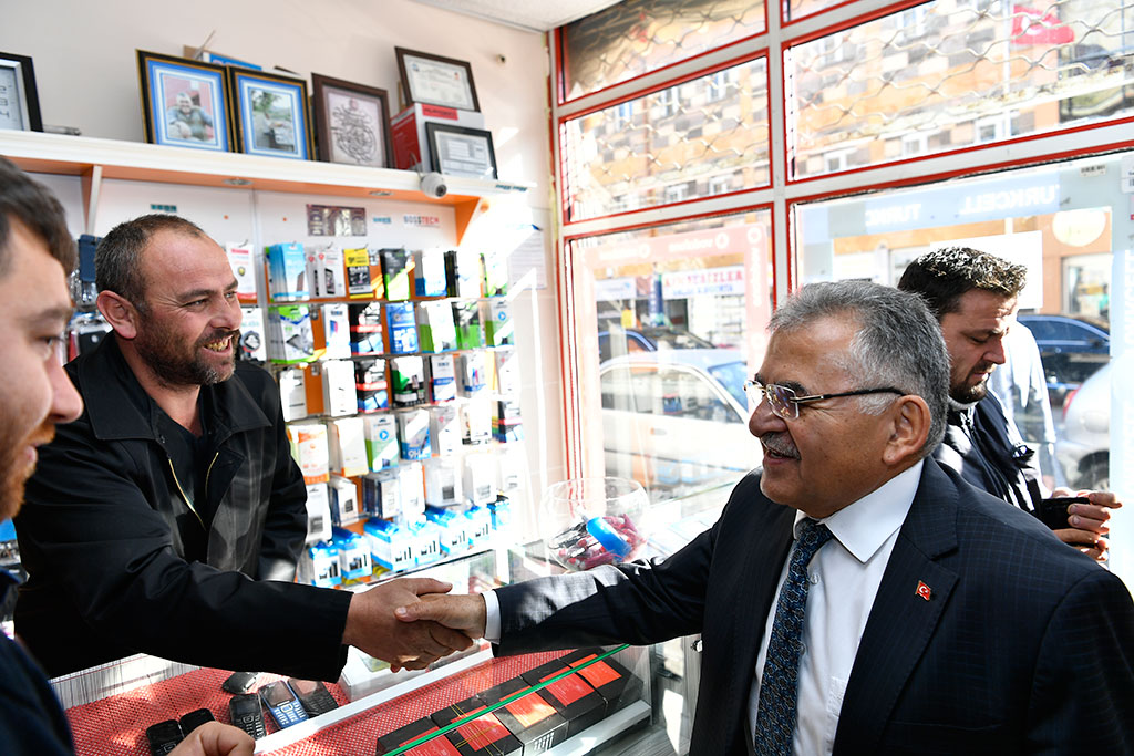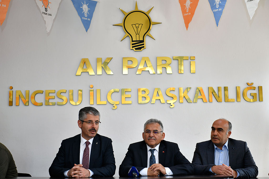 Kayseri Büyükşehir Belediye Başkanı Dr. Memduh Büyükkılıç, kent merkezindeki çalışmalarının yanı sıra ilçeleri de ziyaret etmeye devam ediyor. Başkan Büyükkılıç, AK Parti İl Başkanı Şaban Çopuroğlu ile birlikte İncesu ilçesini ziyaret etti. Büyükşehir Belediye Başkanı Memduh Büyükkılıç, AK Parti İl Başkanı Şaban Çopuroğlu ile birlikte gittiği İncesu’da öncelikle esnafları ziyaret etti. Esnaf ziyaretlerine İncesu Belediye Başkanı Mustafa İlmek de katıldı. Girdiği her iş yerinde sıcak ve samimi bir şekilde karşılanan Başkan Büyükkılıç, hayırlı işler dileklerinde bulundu ve esnaflarla sohbet etti. Başkan Büyükkılıç, esnaf ziyaretleri sırasında vatandaşlarla da selamlaşarak hal hatır sordu. Başkan Memduh Büyükkılıç, esnaf gezisinin ardından İncesu Ziraat Odası Başkanı Yaşar Karaçavuş’u ziyaret ederek bir süre görüştü. Yaşan Karaçavuş, İncesu’da yaptıkları çalışmalarla ilgili Başkan Büyükkılıç’a bilgiler verdi. Büyükşehir Belediye Başkanı Memduh Büyükkılıç, AK Parti İl Başkanı Şaban Çopuroğlu ile birlikte İncesu Belediyesi’ni de ziyaret ederek Başkan Mustafa İlmek ile görüştü. Ziyarette İncesu’da yapılan belediye hizmetleriyle ilgili görüş alışverişinde bulunuldu. İncesu’daki temaslarını AK Parti İncesu İl Başkanlığı ziyareti ile sürdüren Başkan Memduh Büyükkılıç, İlçe Başkanı İsmail Tekinsiz ve partililerle görüştü. İncesu’nun tarihi bir ilçe olduğunu ifade eden Başkan Büyükkılıç, kültürel ve turizm yönüyle çalışmalar yapılmasını önemsediklerini belirtti. İncesu’nun her değerinden ve her talebinden haberleri olduğunu dile getiren Başkan Büyükkılıç, İncesu halkını her hizmetle buluşturmak için çalıştıklarını kaydetti.