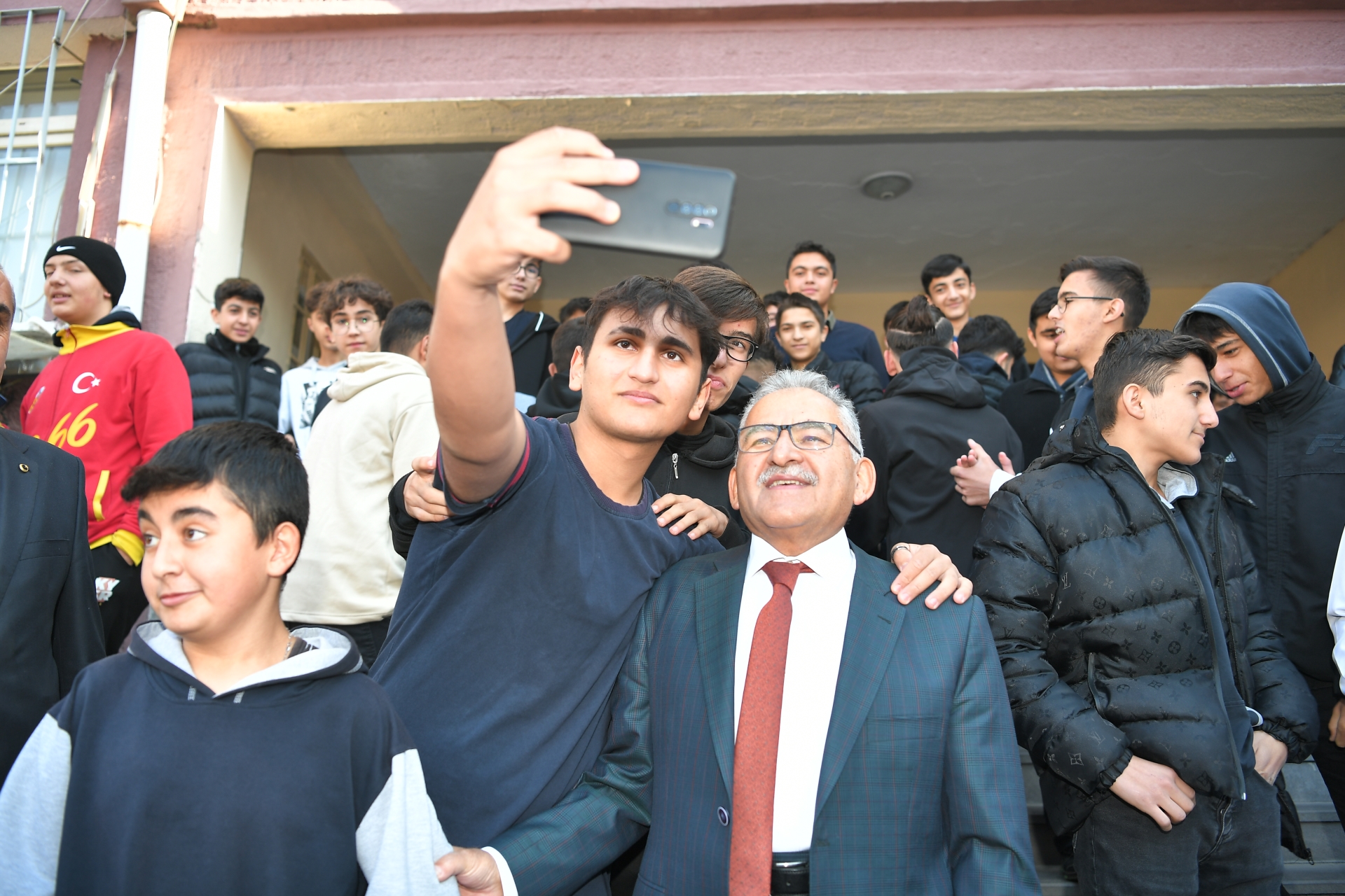 Okul girişinde İl Milli Eğitim Müdürü Ayhan Teltik ve Melikgazi İlçe Milli Eğitim Müdürü Hacı Kaya ile okul yönetimi ve öğrenciler tarafından karşılanan Başkan Büyükkılıç, burada öğrencilerin alkış ve sevgi gösterileriyle karşılaştı.