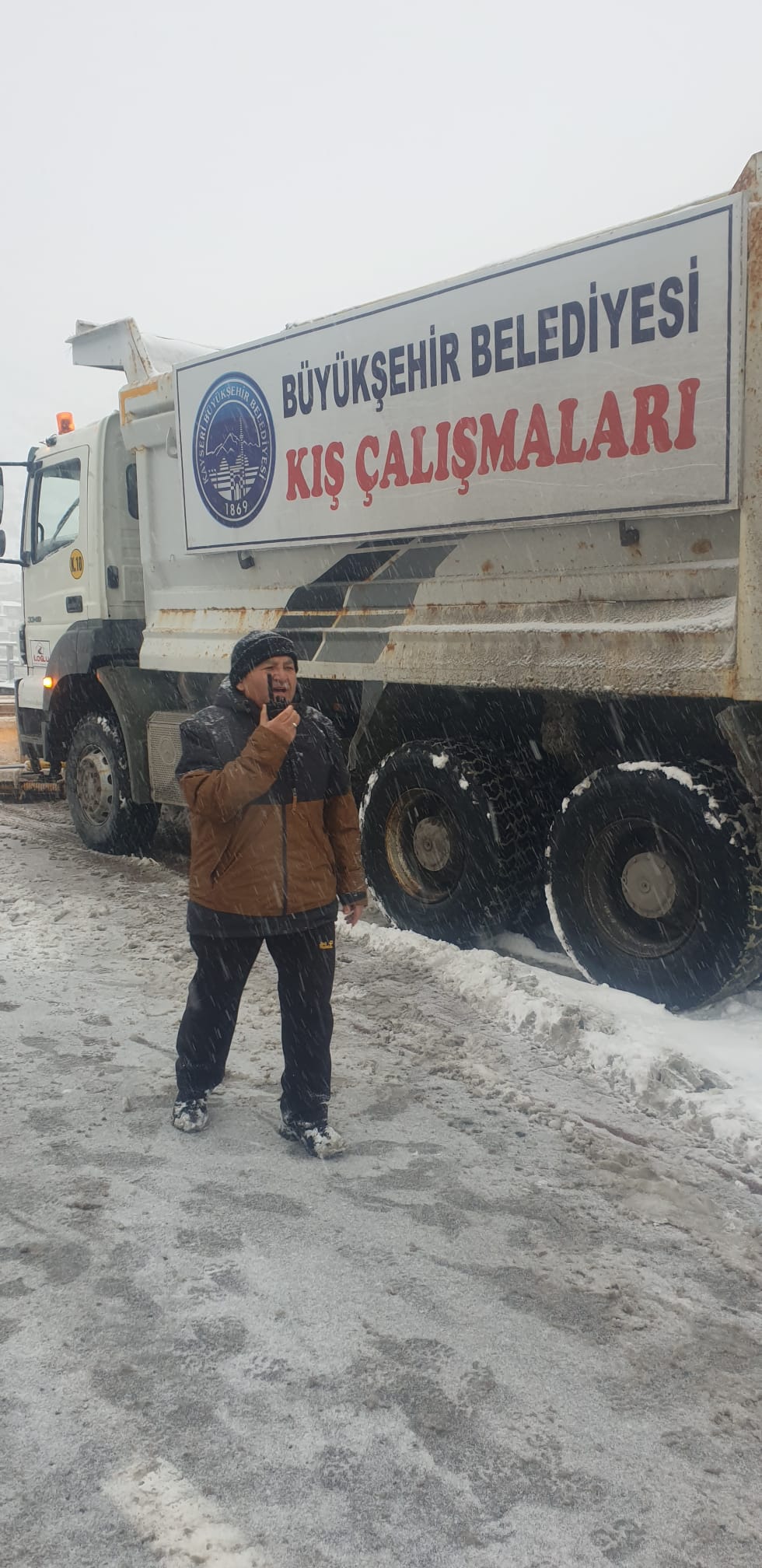 eden Başkan Büyükkılıç, telsizle karla mücadele eden ekiplere seslendi.