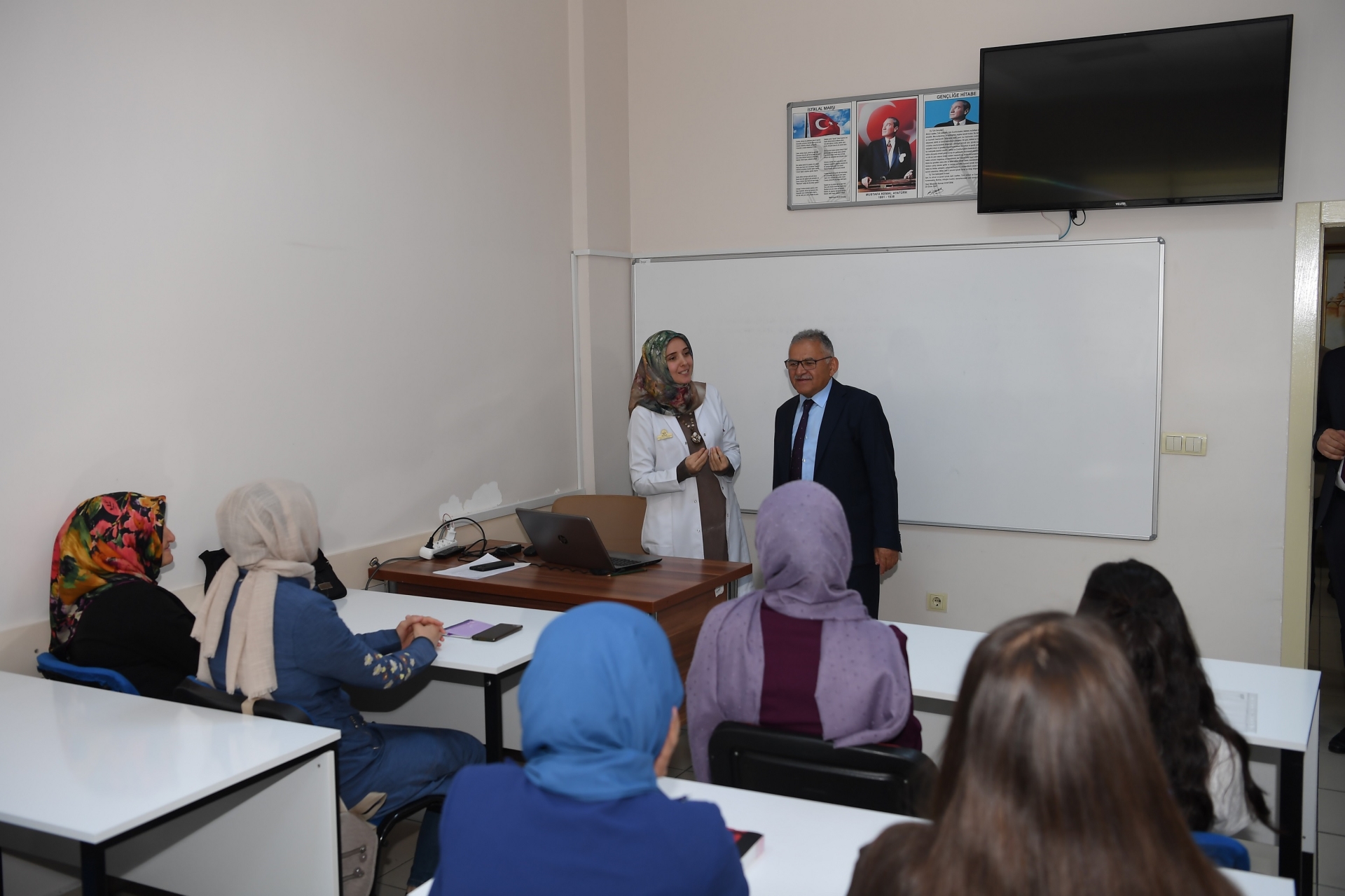gençlerle yakından ilgilenerek, sınıfları da ziyaret etti.