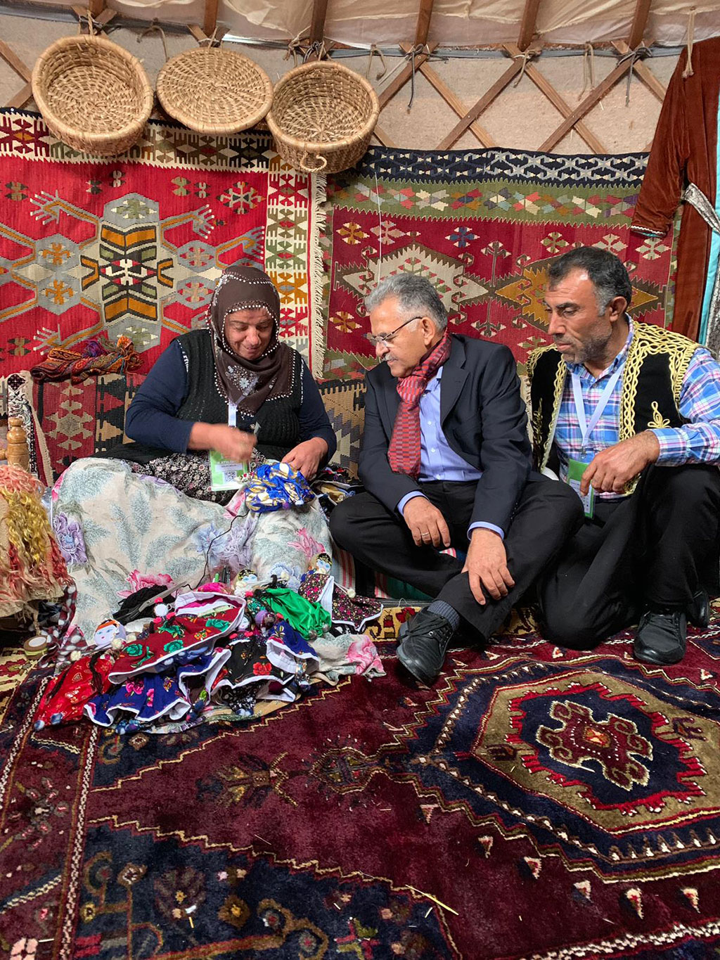 Kayseri Büyükşehir Belediyesi, Kayseri kültürünü tüm güzellikleri ve özellikleriyle her platformda tanıtmaya devam ediyor. Büyükşehir Belediye Başkanı Dr. Memduh Büyükkılıç, 17 ülkenin katılımıyla İstanbul’da yapılan Etnospor Kültür Festivali’nde Kayseri kültürünü bizzat tanıttı. Dünya Etnospor Konfederasyonu tarafından, her yıl geleneksel olarak düzenlenen Etnospor Kültür Festivali'nin 4'üncüsü, Yeşilköy Atatürk Havalimanı'nda yapıldı. Büyükşehir Belediye Başkanı Dr. Memduh Büyükkılıç da bu önemli festivale katılarak Kayseri kültürünü yansıtan ürünlerin bizzat tanıtımını gerçekleştirdi. Festival alanında Büyükşehir Belediyesi tarafından kurulan Kayseri çadırına büyük ilgi gösterildi. Büyükşehir Belediye Başkanı Dr. Memduh Büyükkılıç, başta Gençlik ve Spor Bakanı Dr. Mehmet Muharrem Kasapoğlu ve Dünya Etnospor Konfederasyonu Başkanı Bilal Erdoğan olmak üzere çok sayıda tanınmış isme Kayseri stantlarını gezdirdi. Başkan Büyükkılıç, konuklarına Anadolu ticaret tarihinin merkezi konumundaki Kültepe’deki kazılarda çıkarılan tabletlerin replikasını hediye etti. Büyükşehir Belediye Başkanı Büyükkılıç, Kayseri standındaki Soğanlı Bebeğinin yapımını da izledi, Etnospor Konfederasyonu Başkanı Bilal Erdoğan ile birlikte Kayseri’nin eşsiz lezzetlerinden kedi bacağının tanıtımını ve ikramını da gerçekleştirdi. Etnospor Kültür Festivali’nde Kayseri mutfağının ne denli güçlü olduğu da gösterildi. Kayseri standında, sucuk, pastırma ve mantının yanı sıra katmer, bazlama, nevzine ve gilaburu suyu gibi birbirinden eşsiz lezzetlerimiz de tanıtıldı.