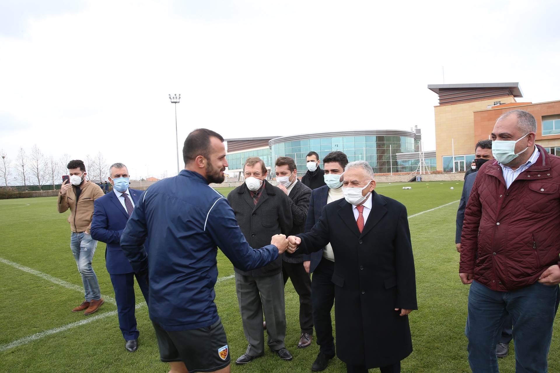 Büyükkılıç, antrenmanı da bir süre takip eden Başkan Büyükkılıç, futbolcularla
