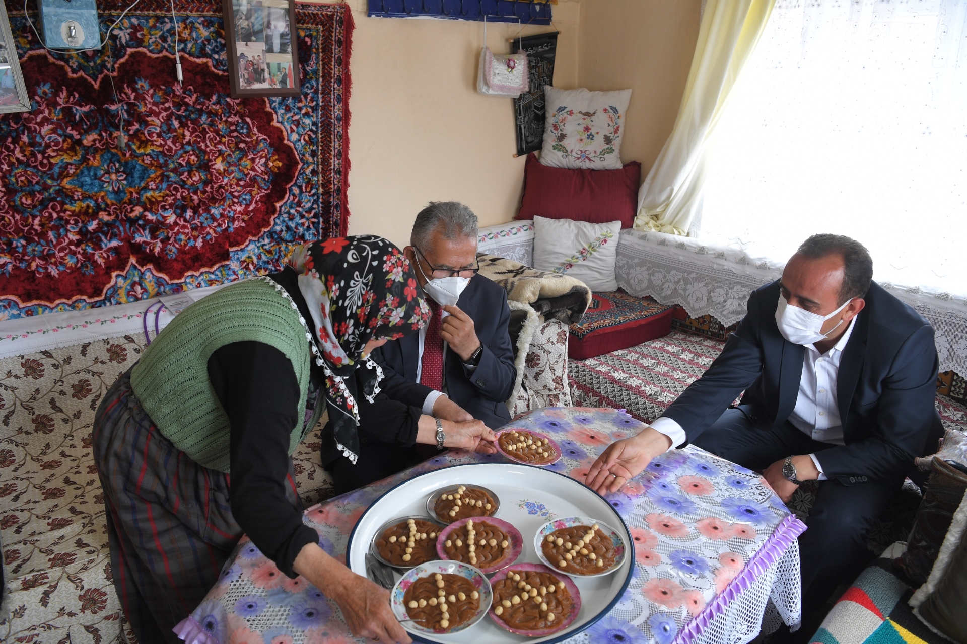 Başkan Büyükkılıç’a dolaz tatlısı ikram etti. Necibe Nine, “Dolandın da geldin