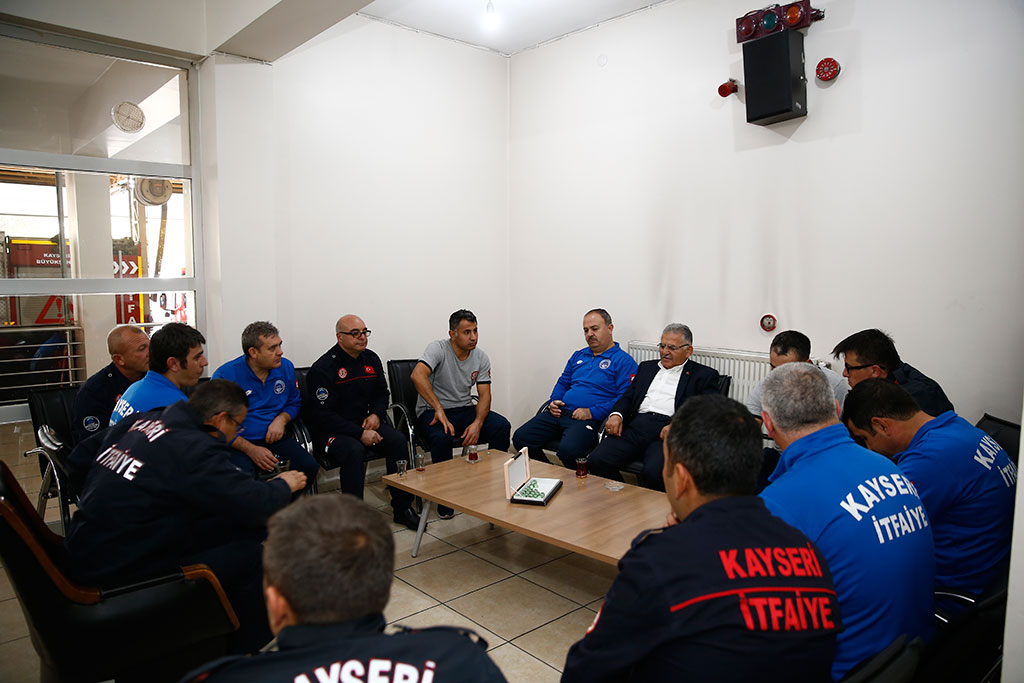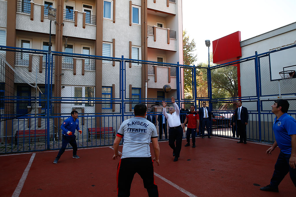 Kayseri Büyükşehir Belediye Başkanı Dr. Memduh Büyükkılıç, vatandaşlar ve belediye birimlerine yönelik sürpriz ziyaretlerini sürdürüyor. Önce Bozantı Caddesi’ndeki taksi durağını ve İnönü Parkı’nı ziyaret eden Başkan Büyükkılıç, daha sonra Büyükşehir Belediyesi İtfaiyesi’ni ziyaret ederek itfaiye personeli ile voleybol oynadı. Büyükşehir Belediye Başkanı Memduh Büyükkılıç, Bozantı Caddesi’ndeki Gül Taksi Durağı’nı ziyaret etti. Taksici esnafı ile bir süre oturan Başkan Büyükkılıç, şehirle ilgili görüşlerini sordu. Başkan Memduh Büyükkılıç, daha sonra İnönü Parkı’nı ziyaret ederek, parkta bulunan vatandaşlarla sohbet etti. Başkan Büyükkılıç, parkta oynayan çocuklara da Kayserispor forması hediye etti. Büyükşehir Belediye Başkanı Memduh Büyükkılıç, sürpriz ziyaretlerini İtfaiye Daire Başkanlığı ile sürdürdü. Başkan Büyükkılıç, burada itfaiye personeli ile birlikte voleybol oynadı. Daha sonra itfaiye personeli ile bir süre sohbet eden Başkan Büyükkılıç, taleplerini dinledi ve yapılan çalışmalarla ilgili bilgi aldı.