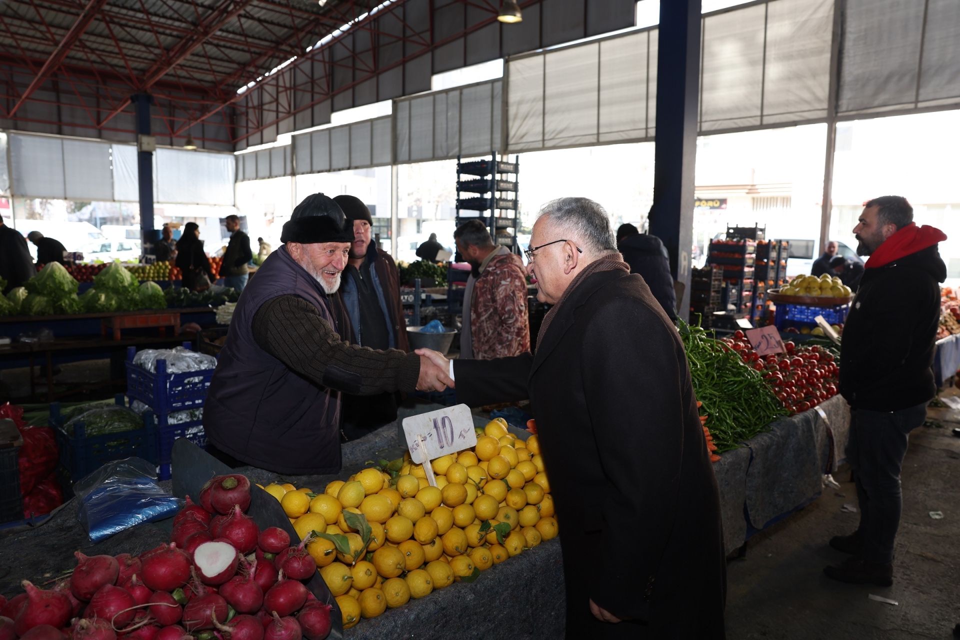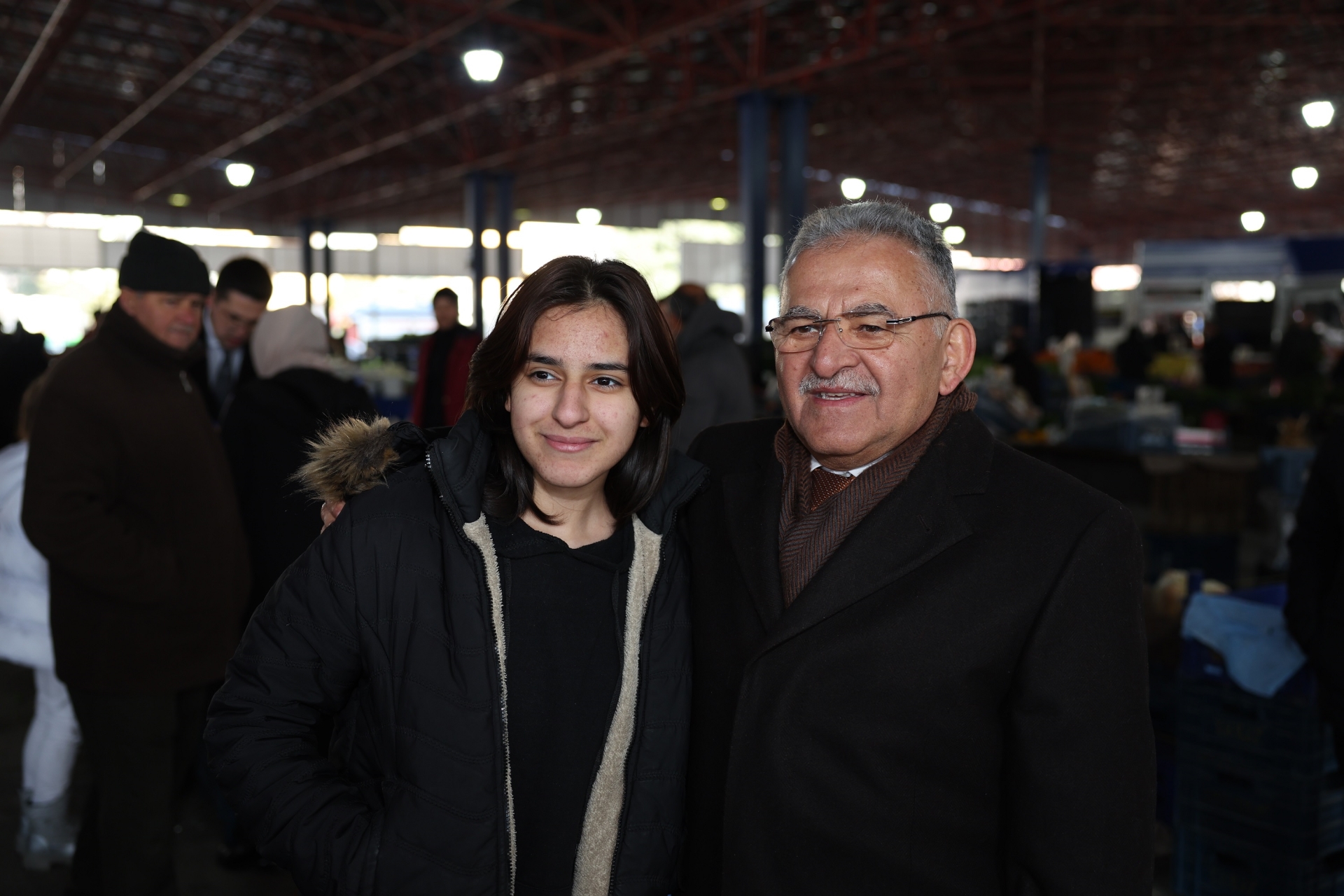 Pazarda alışveriş yapan, karşılaştığı çocuklarla yakından ilgilenen Büyükkılıç, vatandaşlarla hatıra fotoğrafı çektirmeyi de ihmal etmedi.