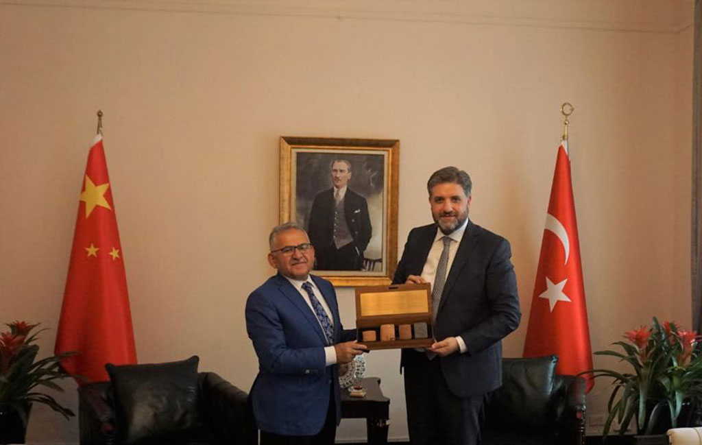 Kayseri Büyükşehir Belediye Başkanı Dr. Memduh Büyükkılıç, Pekin EXPO 2019’daki temasları sırasında Türkiye Cumhuriyeti Pekin Büyükelçisi Abdülkadir Emin Önen’i ziyaret etti. Başkan Büyükkılıç, Pekin Büyükelçiliği’nde gerçekleşen ziyarette, Kayseri’nin sanayi ve ticaret alanındaki avantajları ile turizm değerlerini anlattı. Başkan Büyükkılıç, ülkemizden binlerce kilometre uzakta Türkiye Cumhuriyeti’ni başarıyla temsil eden Büyükelçi Emin Önen’e misafirperverliği için teşekkür etti. Büyükelçi Abdulkadir Emin Önen de Anadolu coğrafyasında Kayseri’nin önemine işaret ederek, ziyaretten duyduğu memnuniyeti dile getirdi.