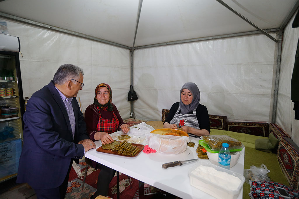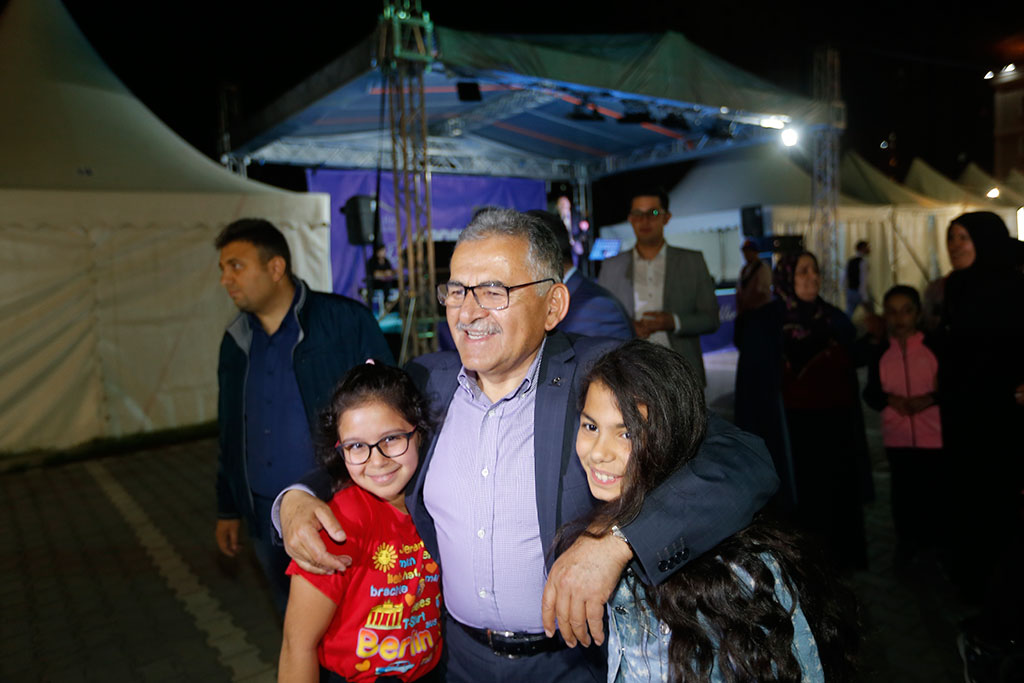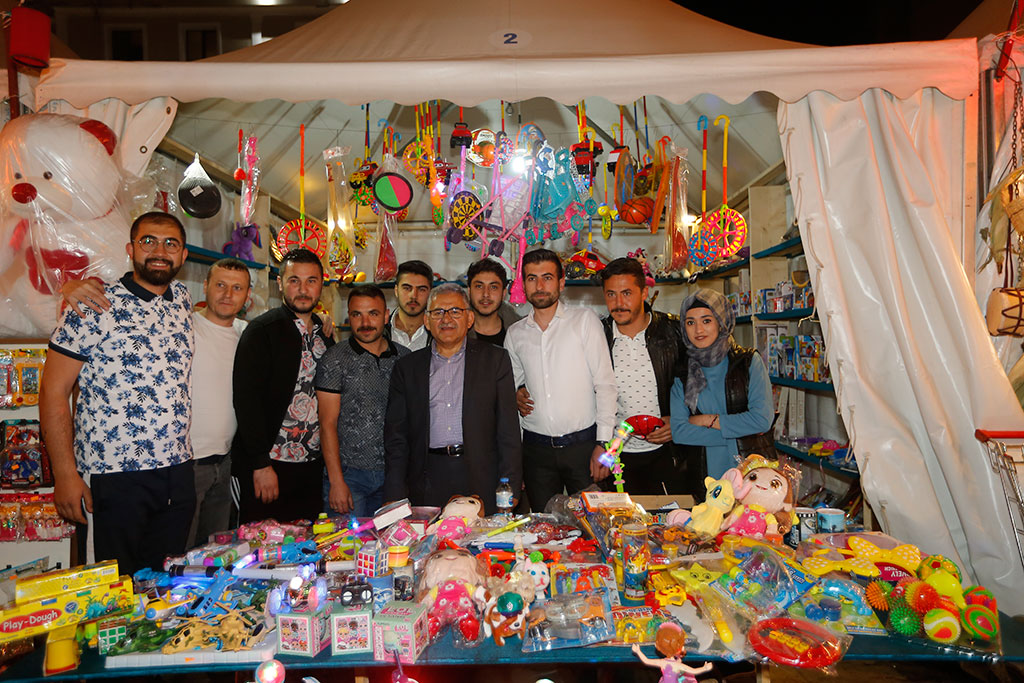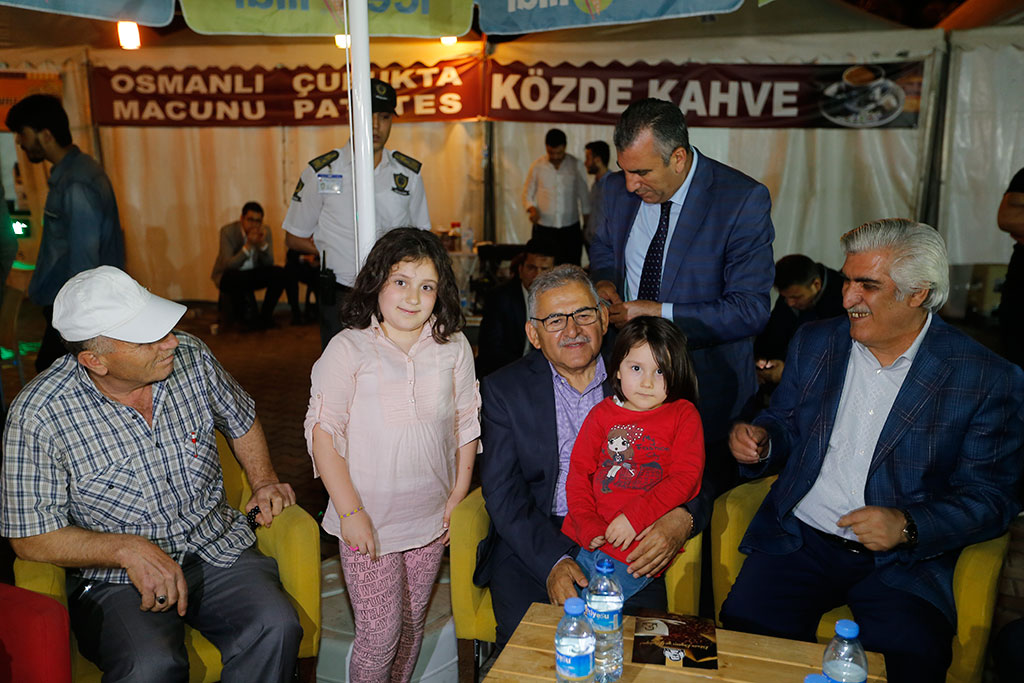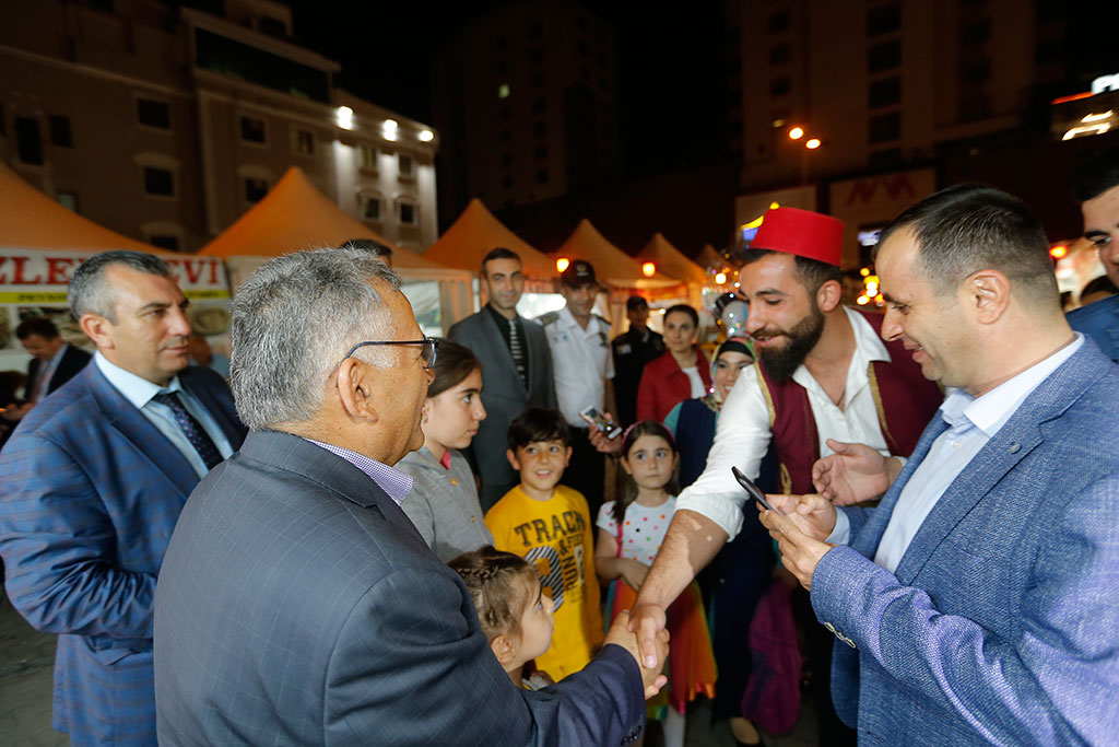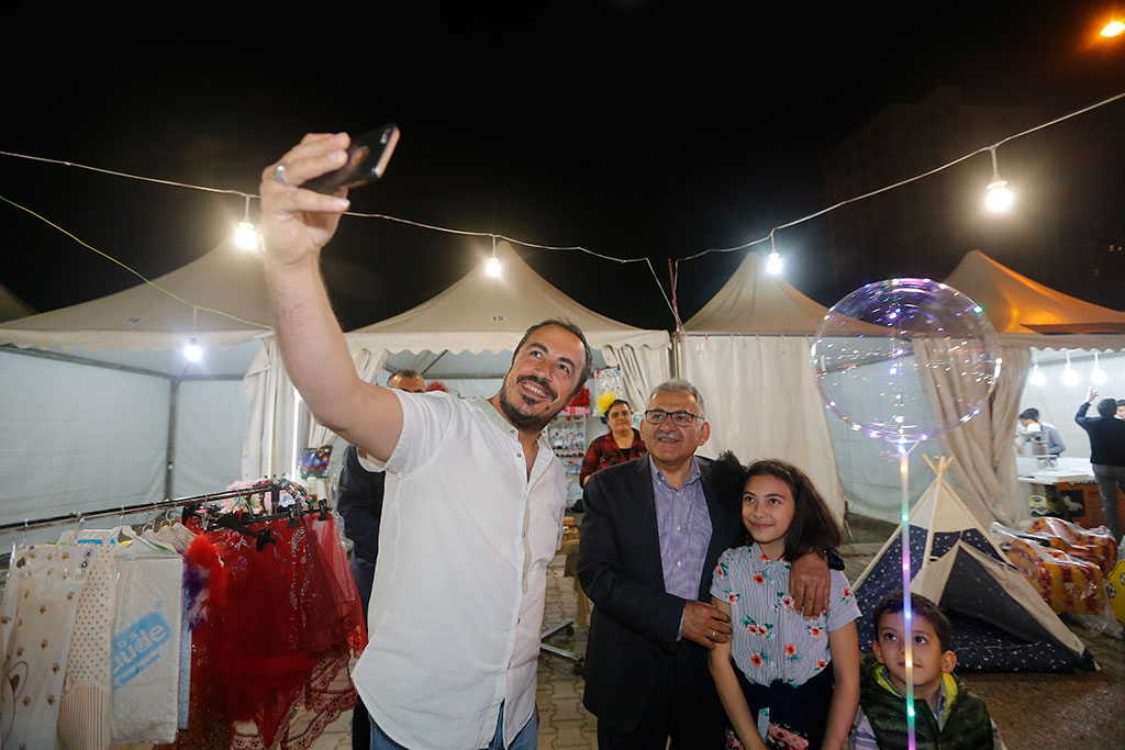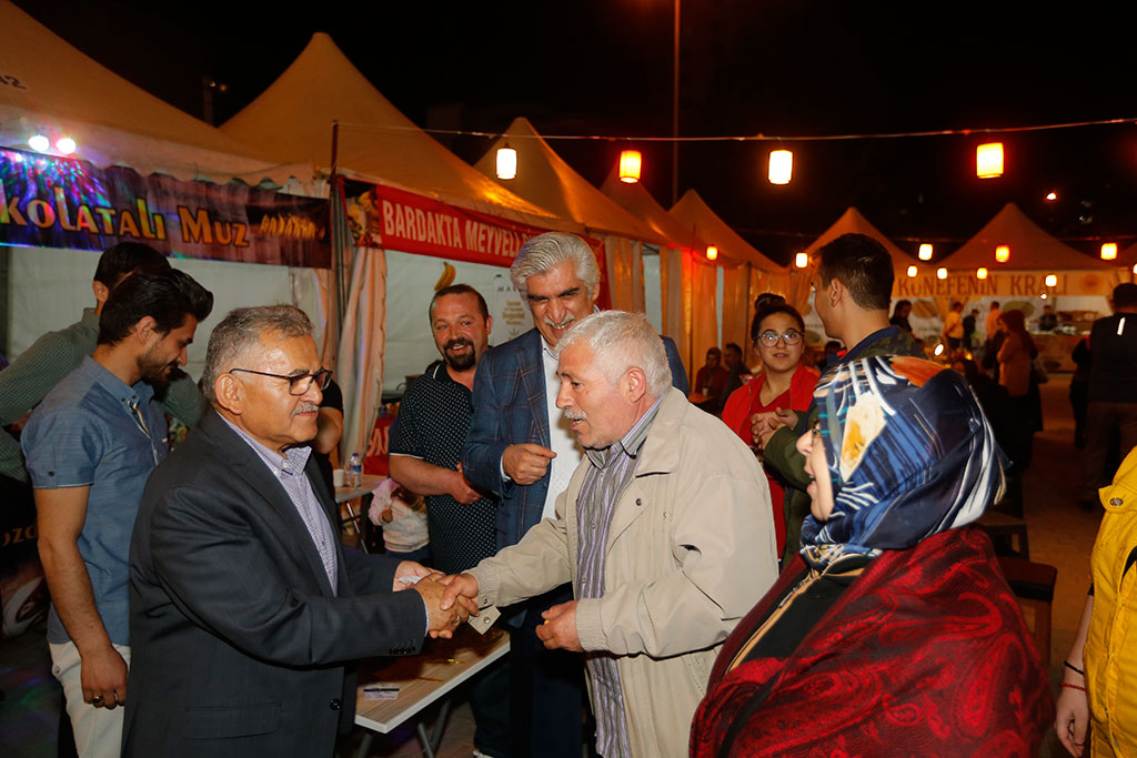 Kayseri Büyükşehir Belediye Başkanı Dr. Memduh Büyükkılıç, teravih namazı sonrası İpeksaray AVM yanına kurulan Ramazan Sokağı’nı ziyaret etti. Esnaf ve vatandaşlarla sohbet eden Başkan Büyükkılıç, Ramazan’ın manevi atmosferinin şehrin dört bir yanında en güzel şekilde yaşandığını söyledi. Ramazan ayında teravih namazlarını her gün farklı bir mahalle veya ilçede kılan Büyükşehir Belediye Başkanı Memduh Büyükkılç, bu kez Erciyesevler Mahallesi’ndeki Yeşilevler Camii’nde eda ettiği teravih namazının ardından İpeksaray AVM yanındaki Ramazan Sokağı’na geçti. Esnafa ve vatandaşa “Hayırlı Ramazanlar” dileklerinde bulunan, el sıkan, hatır soran Başkan Memduh Büyükkılıç, Ramazan Sokağı’ndaki tüm stantları tek tek gezdi. Hayırlı kazançlar temennisiyle esnaflarla sohbet eden Başkan Büyükkılıç, bir grup vatandaşla da bir süre oturarak kahve içti. Büyükkılıç, bu sırada Ramazan Sokağı’na gelen vatandaşlara tatlı ikramında bulundu. Başkan Memduh Büyükkılıç’a Ramazan Sokağı’nı gezisi sırasında İpeksaray AVM Yönetim Kurulu Başkanı Saffet Arslan da katıldı. Gittiği her stantta esnaf ve vatandaşların ilgisiyle karşılaşan Başkan Memduh Büyükkılıç, bazı stantlarda alkışla karşılandı. Büyükşehir Belediye Başkanı Memduh Büyükkılıç, ziyareti sırasında bir ara künefe tezgahına da geçerek çevresindekilere künefe ikram etti. (GÖRÜNTÜLÜ-FOTOĞRAFLI)