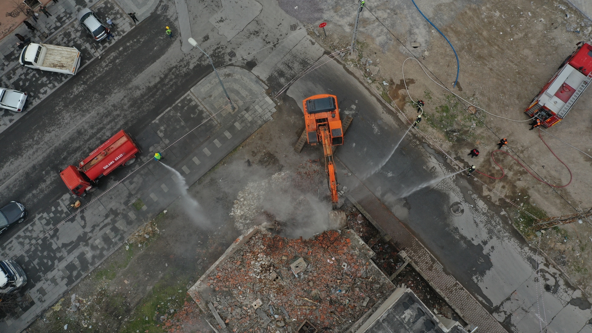 sonuçlanıncaya kadar su sıkılacak ve yıkım anındaki tozun çevreye yayılması