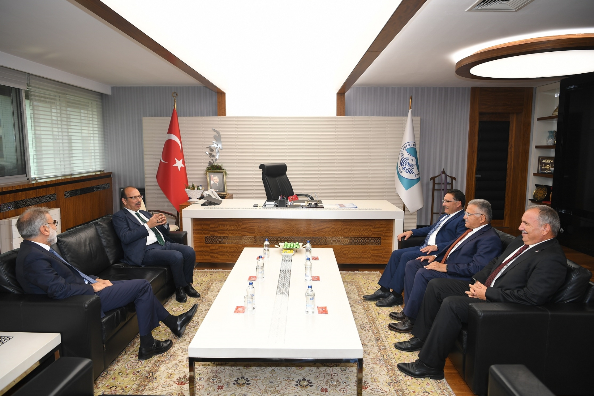 Doğan ve beraberindekilerle birlikte başkanlık makamına geçti. Ziyarete,
