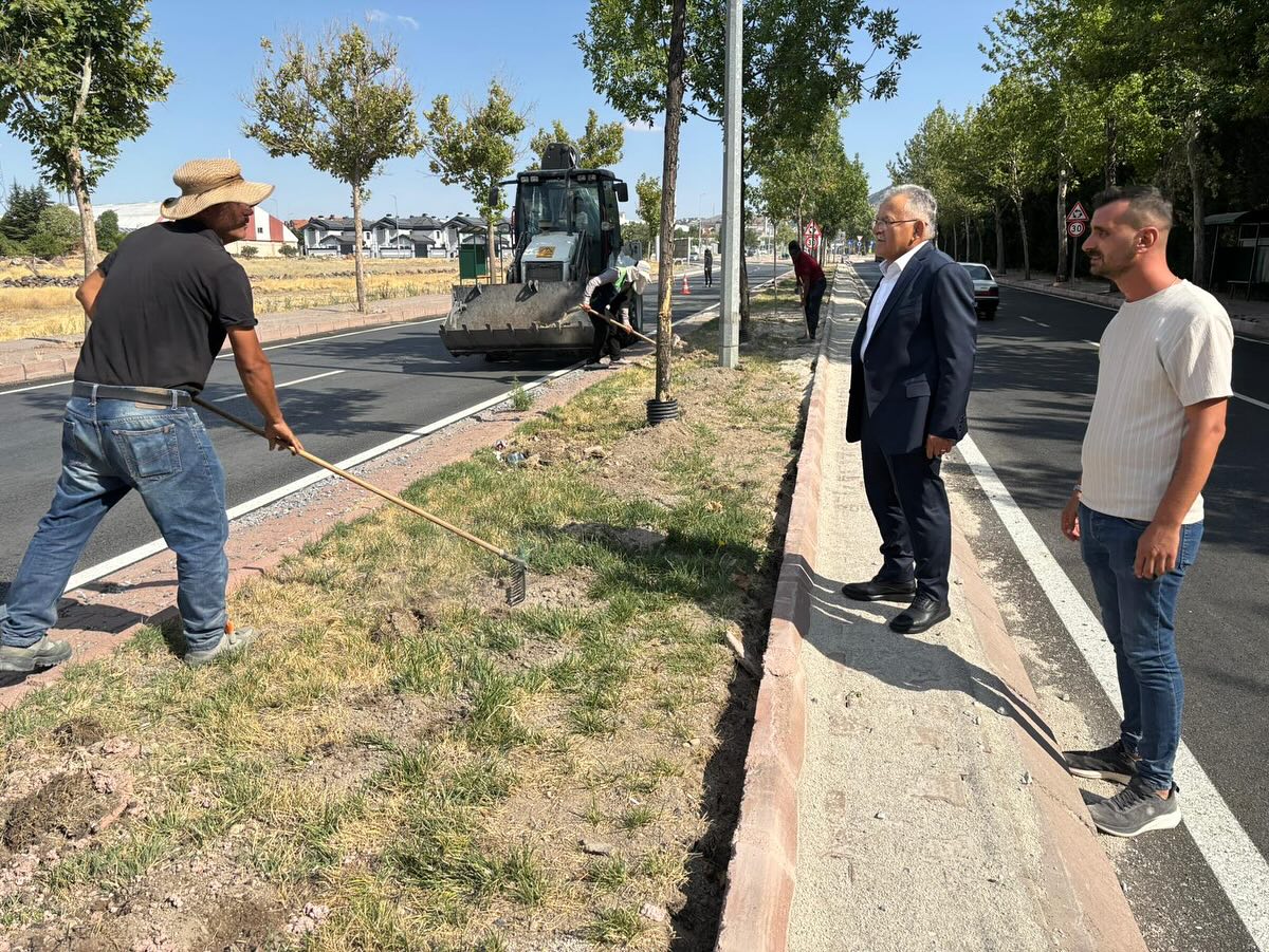 Başkan Büyükkılıç yaptığı açıklamada, “Talas Şehit Komandolar Caddesi’ndeyiz. Altyapısını yeniledik, asfaltını yeniledik, şimdi sıra peyzaj çalışmalarında. Park Bahçeler ve Ağaçlandırma Daire Başkanlığı’mıza bağlı ekiplerimizi sahada ziyaret ettik” dedi.