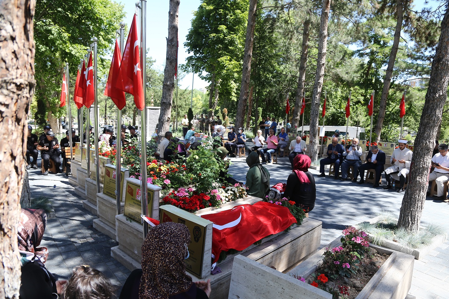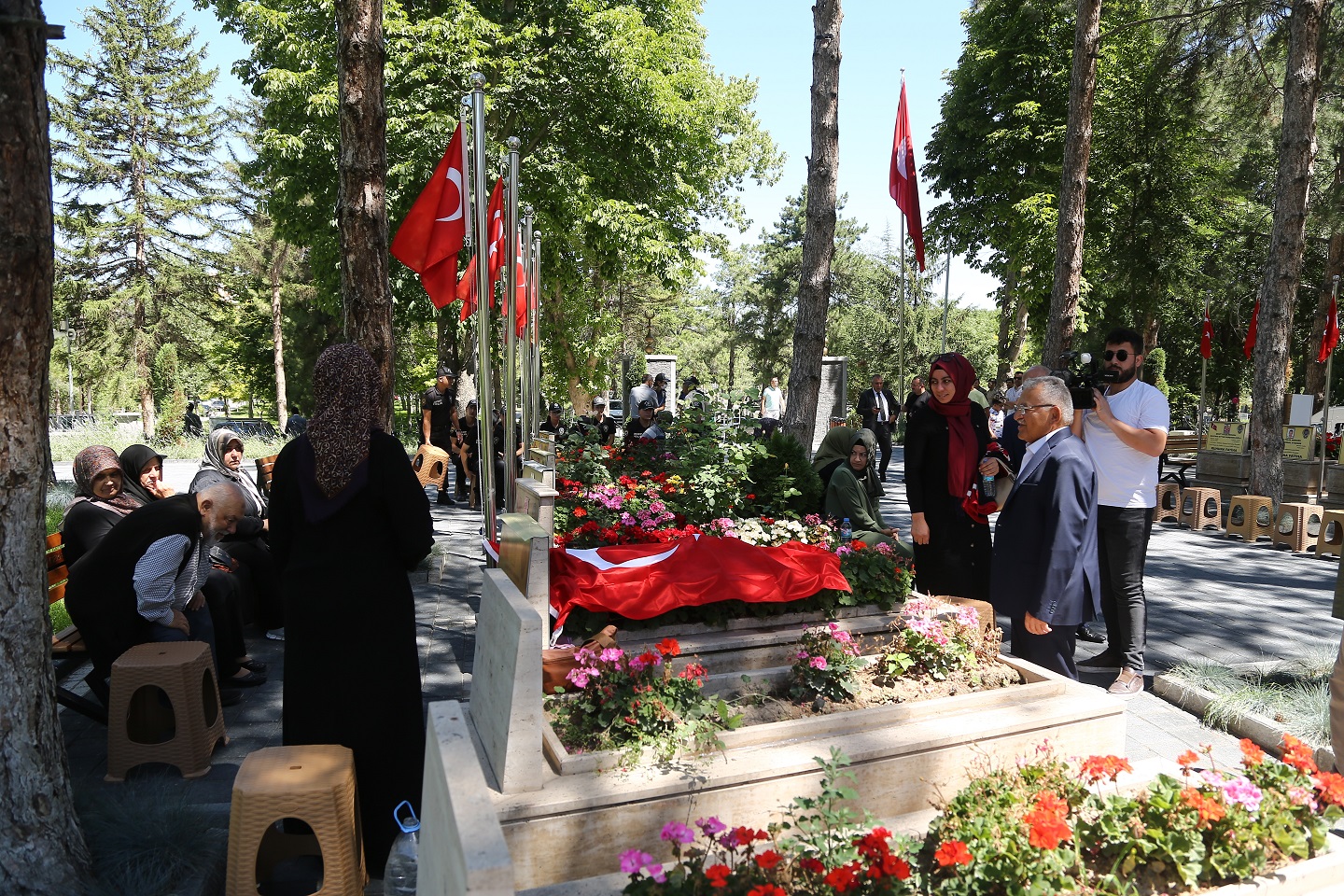 katılarak, şehidin kabri başında Kuran-ı Kerim okudu.
