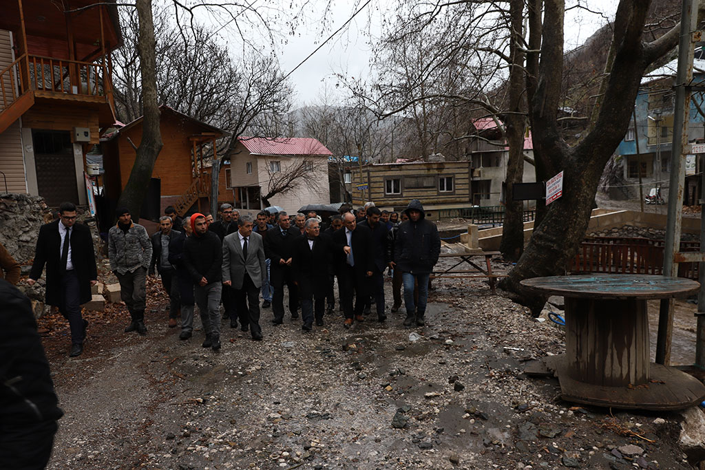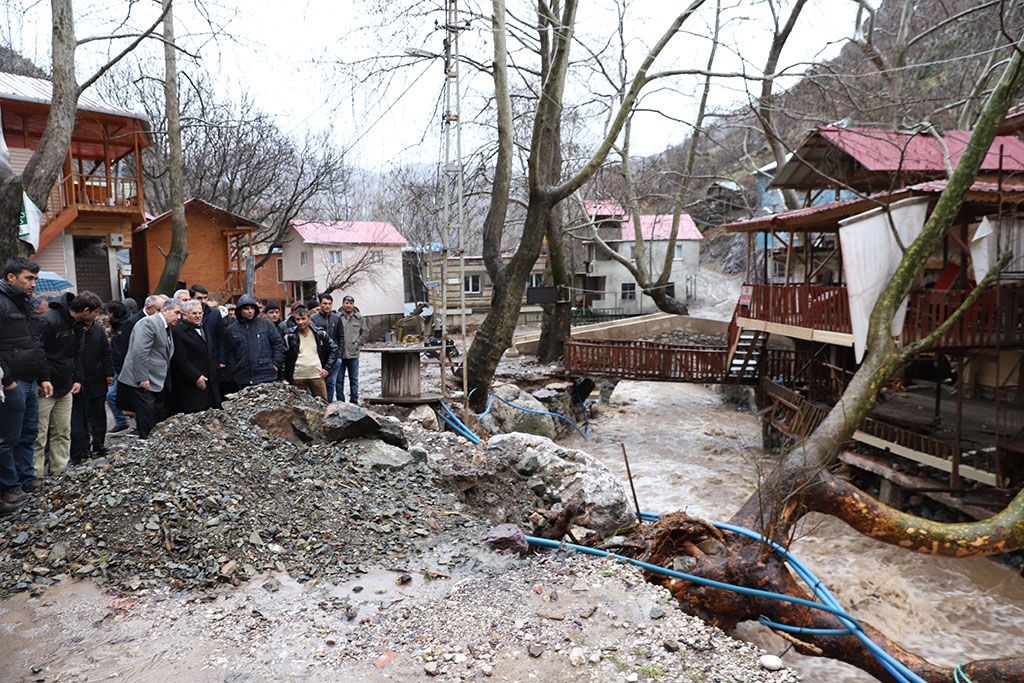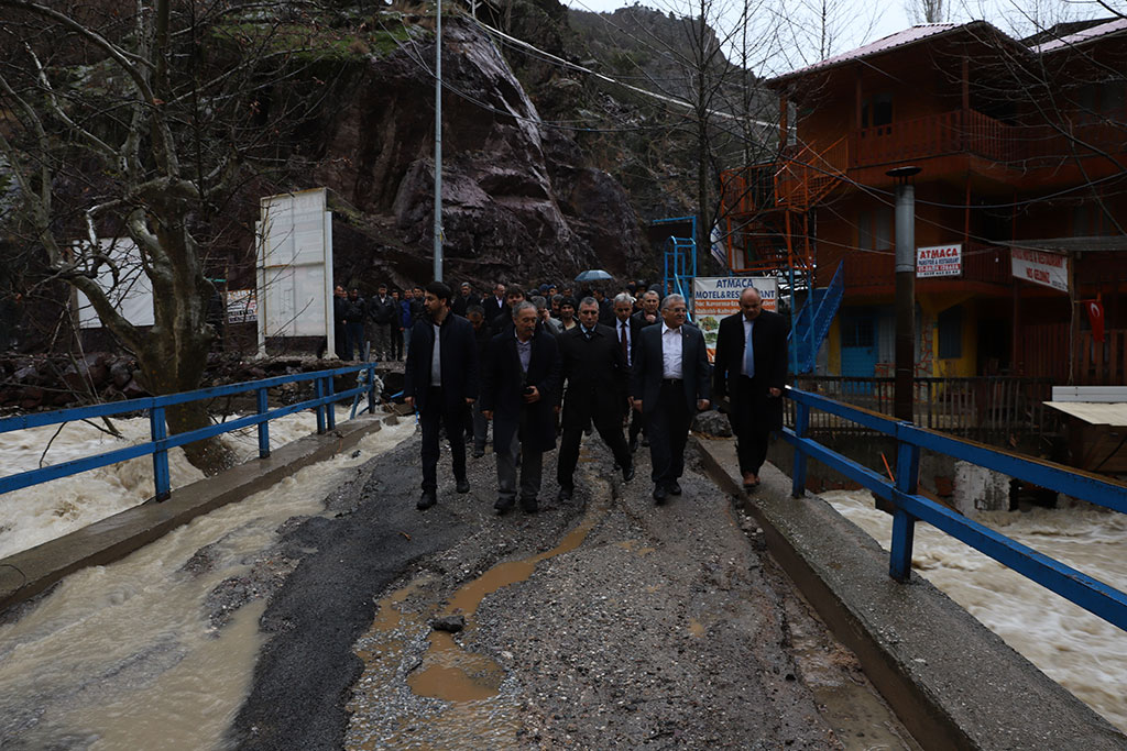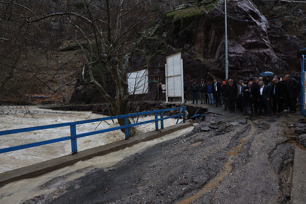 Kayseri Büyükşehir Belediye Başkanı Dr. Memduh Büyükkılıç, Yahyalı’nın Büyükçakır Mahallesi’nde meydana gelen selin ardından bölgeye giderek incelemelerde bulundu. Vatandaşlara geçmiş olsun dileklerini ileten Başkan Büyükkılıç, ilgili Bakanlıklarla koordineli bir şekilde şelaleler bölgesinde çalışmalar yapacaklarını söyledi. Büyükşehir Belediye Başkanı Dr. Memduh Büyükkılıç, önceki gün meydana gelen fırtına sonrası eriyen karların oluşturduğu sel ve meydana getirdiği hasarı yerinde görmek için Yahyalı’ya gitti. Yahyalı Belediye Başkanı Esat Öztürk ile birlikte Büyükçakır Mahallesi’ne giden Başkan Büyükkılıç, bölgede incelemelerde bulundu ve vatandaşlara geçmiş olsun dileklerini iletti. “EKİPLERİMİZ ANINDA MÜDAHALE ETTİLER” Sel sonrası Büyükşehir Belediyesi ve Yahyalı Belediyesi ekiplerinin anında gerekli müdahaleyi yaptıklarını ifade eden Başkan Memduh Büyükkılıç, “Ekiplerimiz anında müdahale ettiler; ancak ben de bizzat yerinde görmek istedim. Kalıcı önlemler almak amacıyla incelemelerde bulunduk. Kapuzbaşı şelalelerinin Güney Şelale kısmındayız. Aslında bu mevsimde su az olur ve baharla birlikte artar; ancak rüzgarla karların erimesi sonucu dağların her yerinden su geliyor” dedi. Bölge halkına da mesaj veren Başkan Memduh Büyükkılıç, “Aslında sel oluşmuyor, biz oluşturuyoruz. Suyun yatağını engellemek için her türlü çalışmayı yapmışız. Büyükçakır Mahallemizdeki kardeşlerimizden anlayış bekliyorum. Allah’a şükür ki canlara bir şey olmamış. Burada Kültür Bakanlığımız, Ulaştırma Bakanlığımız, Çevre Şehircilik Bakanlığımızla çalışmaları gözden geçirmeli ve burayı görsel açıdan herkesin istifadesine sunacağımız bir ortamı sağlamalıyız” diye konuştu. Büyükşehir Belediye Başkanı Memduh Büyükkılıç, sel sonrası fedakarca görev yapan başta Büyükşehir Belediyesi İtfaiye ekipleri ve AFAD olmak üzere tüm ekiplere teşekkür etti.