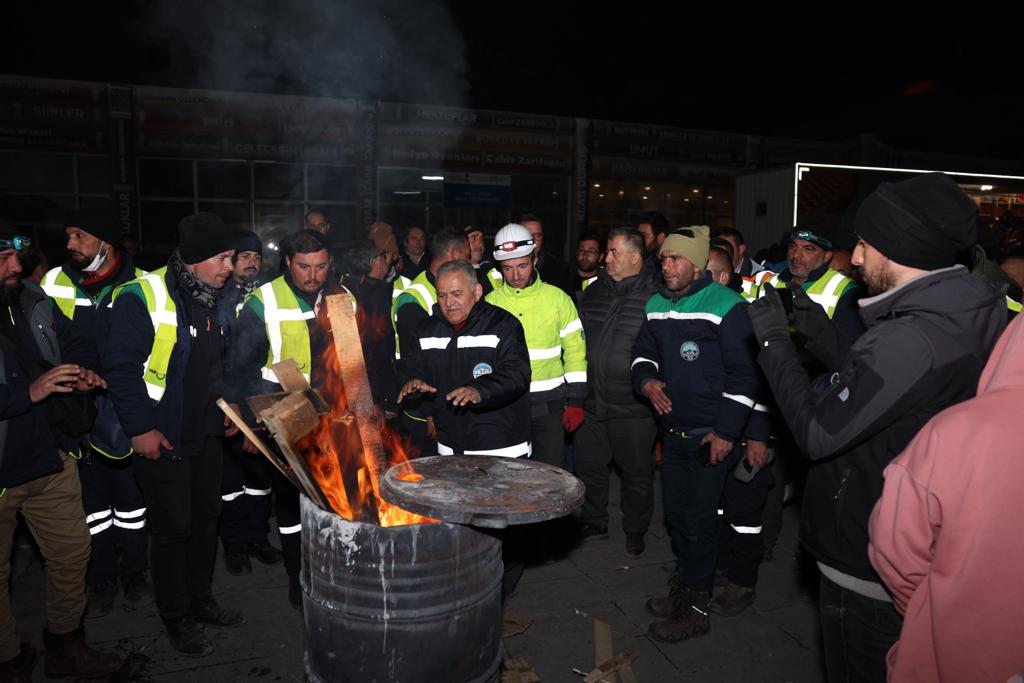 Deprem bölgesi Kahramanmaraş’ta desteklerini ve incelemelerini yapan Kayseri Büyükşehir Belediye Başkanı Dr. Memduh Büyükkılıç, AK Parti Kayseri Milletvekili İsmail Tamer, Kocasinan Belediye Başkanı Ahmet Çolakbayrakdar, Talas Belediye Başkanı Mustafa Yalçın, Hacılar Belediye Başkanı Bilal Özdoğan ve genel sekreter, genel sekreter yardımcıları, daire başkanları ve genel müdürler olmak üzere üst düzey bürokratlar ile birlikte Kayseri temizlik ekibine ziyarette bulundu.