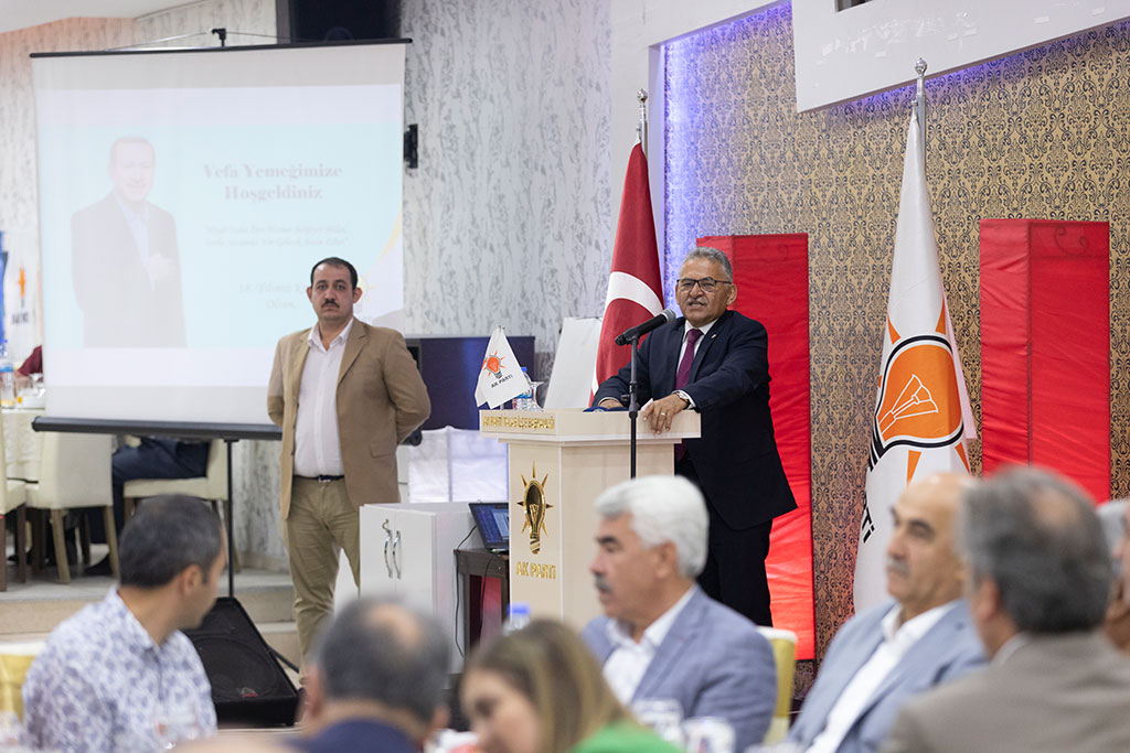 Kayseri Büyükşehir Belediye Başkanı Dr. Memduh Büyükkılıç, belediyedeki yoğun çalışmalarının yanı sıra her programa katılarak vatandaşlarla bir arada olmaya devam ediyor. Başkan Büyükkılıç, Tomarza’dan sonra Talas’ta düzenlenen Vefa Buluşması’na katıldı. AK Parti İl Başkanlığı tarafından Talas’ta gerçekleştirilen Vefa Buluşması’na Büyükşehir Belediye Başkanı Dr. Memduh Büyükkılıç’ın yanı sıra AK Parti İl Başkanı Şaban Çopuroğlu, Melikgazi Belediye Başkanı Mustafa Palancıoğlu, Talas Belediye Başkanı Mustafa Yalçın, AK Parti Talas İlçe Başkanı Kerem Ekici, il ve ilçe yöneticileri, partinin farklı kademelerinde görev yapmış isimler ile vatandaşlar katıldı. Vefa Buluşması’nda yaptığı konuşmada hizmet anlayışları üzerinde duran ve 30 Ağustos Zafer Bayramı’na değinen Başkan Memduh Büyükkılıç “Bizim sevdamız da kaygımız da Ay Yıldızlı Türk Bayrağına, vatanımıza, milletimize sahip çıkmak ve inancımızı geleceğe taşımaktır. Bu arada 30 Ağustos Zafer Bayramımızı tebrik ediyorum. Rabbim cumhuriyetimizi ilelebet geleceğe taşısın. Şehitlerimize rahmet diliyorum ve gazilerimize şükranlarımı sunuyorum. Onlar olmazsa biz olmazdık. Geçmişimizi de geleceğimizi de bileceğiz ve önümüze bakacağız” dedi. “BİZDE JET LAG DA YOK ÇATLAK DA YOK” Pekin Expo 2019 Fuarı için gittiği Çin’den sabah dönerek bir dizi toplantıya katılan Başkan Memduh Büyükkılıç, ‘Jet lag’ olarak ifade edilen ve çoğunlukla uzun süreli uçuşlar sonrasında vücudun biyolojik saati ile iniş yapılan yerin saatinin uyuşmaması nedeni ile ortaya çıkan rahatsızlığı yaşamadıklarını “Bizde elhamdülillah jet lag da yok çatlak da yok” sözleriyle açıkladı. İnsanlara hizmet etmeyi ibadet bildiklerini dile getiren Başkan Büyükkılıç, “İş değişikliği ile dinlenmeyi de erdem olarak kabul ediyoruz. Geçen hafta Çarşamba günü Ankara’da Türkiye Belediyeler Birliği toplantısına katıldık. Perşembe günü bakanlarımızla ve genel müdürlerimizle şehrimizin önemli projeleriyle ilgili görüşmeler yaptık. Her yerde Rabbim kapıları açıyor olumlu cevaplar alıyoruz. Ardından partimizin 18. yıldönümünü kutladık ve daha sonra Nevşehir’de Genel Başkan Yardımcımız Mehmet Özhaseki başkanlığındaki bölge toplantısına katıldık. Oradan Çin’e gittik, Çin’den geldik Tomarza’ya gittik ve oradan da Talas’a geldik. Bunları bir maharet olarak söylemiyorum. Biz farklıyız diyorsak çok çalışmamız lazım. Layık olmazsak veren alır” diye konuştu.
