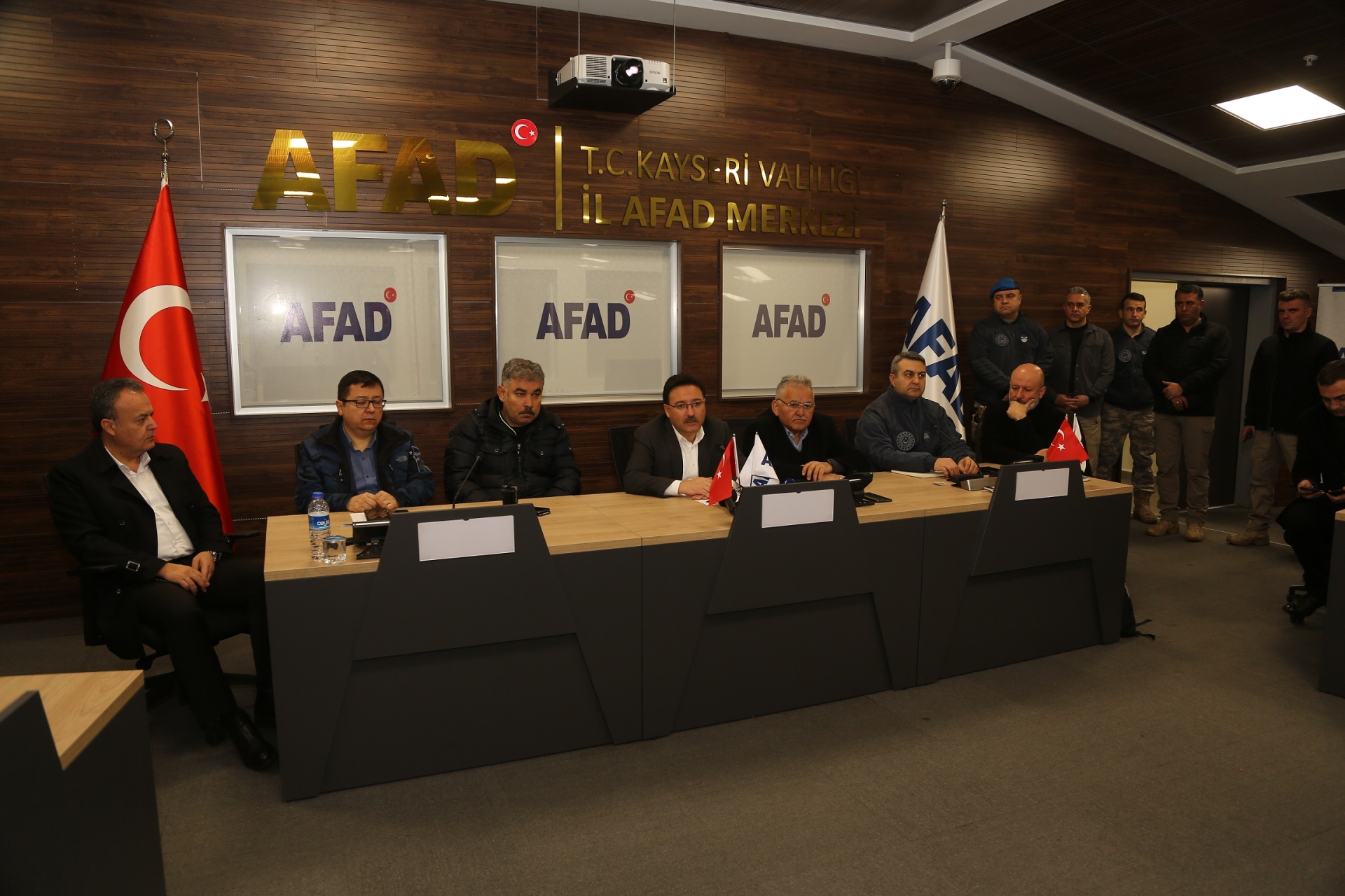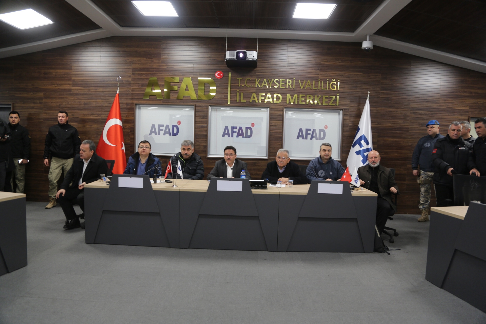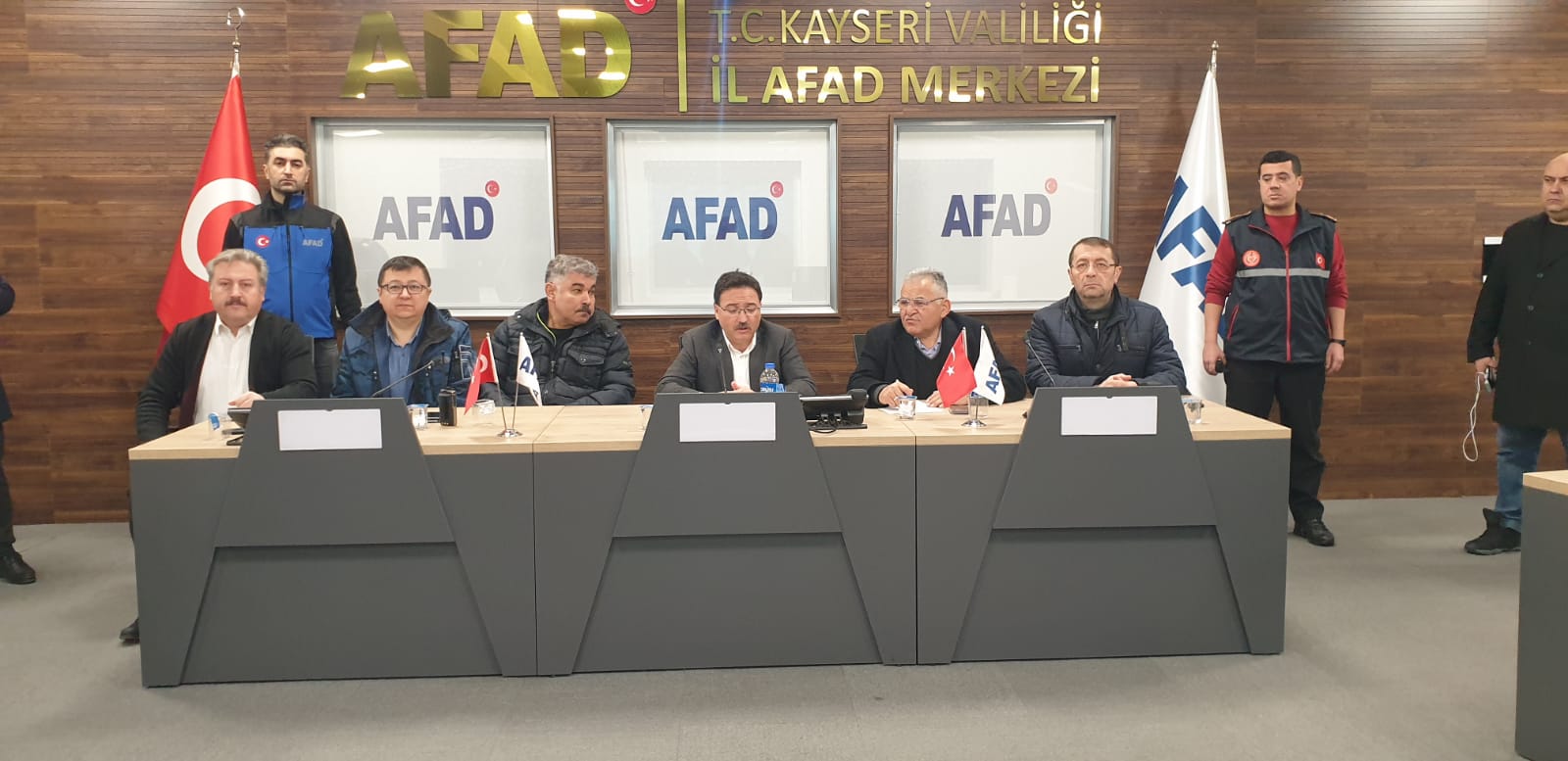 Kayseri Büyükşehir Belediye Başkanı Dr. Memduh Büyükkılıç, Kayseri Valisi Gökmen Çiçek ve tüm birimlerle birlikte AFAD İl Müdürlüğü Koordinasyon Merkezi’nde Kayseri’de de hissedilen Kahramanmaraş'ın Pazarcık ilçesinde meydana gelen 7,4 büyüklüğündeki deprem ile ilgili kriz masasına katıldı.