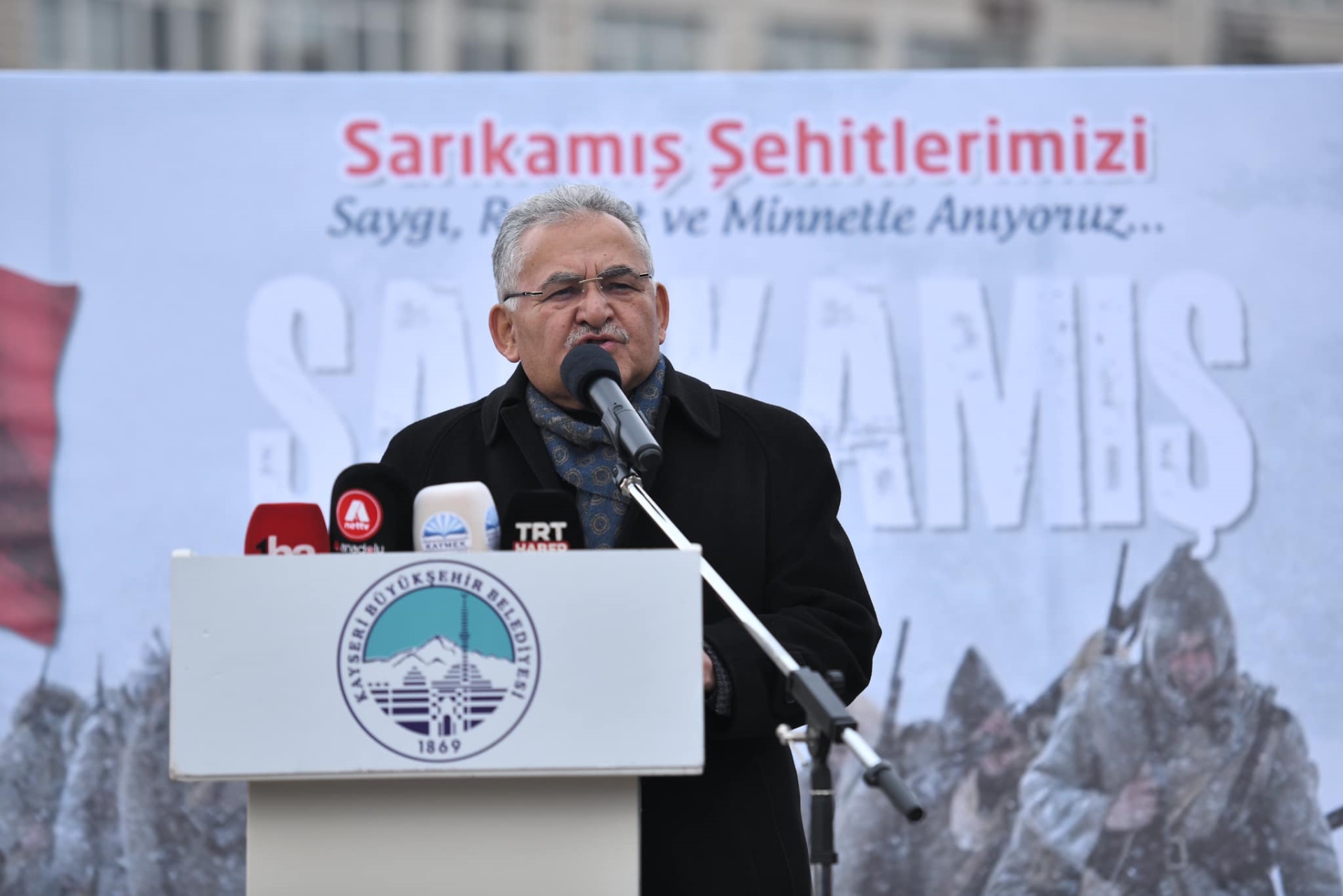 Programda konuşan Vali Gökmen Çiçek ise, “Böyle anlamlı programın düzenlemesinden dolayı Büyükşehir Belediye Başkanımıza ve ekibine çok teşekkür ediyorum. Gerçekten Sarıkamış içimizde bir yaradır. Sarıkamış deyince içi ürpermeyen Türk evladı olmaz. Binlerce vatan evladı hiç düşünmeden ölüme gülerek gittiler. Binlerce yüzyıl sürecek Türk milletinin benliğinde ölümden korkmamanın vatanı kurtarmak için ölüme gülerek gitmenin adıdır. Kayseri Büyükşehir Belediyesi bugün hem Kayseri’den giden şehitlerini hem de oradaki tüm şehitlerini anıyor. Tekrar Büyükşehir Belediye Başkanımızı ve ekibini kutluyorum. Erciyes’ten Sarıkamış’a selam yolluyoruz” ifadelerini kullandı.