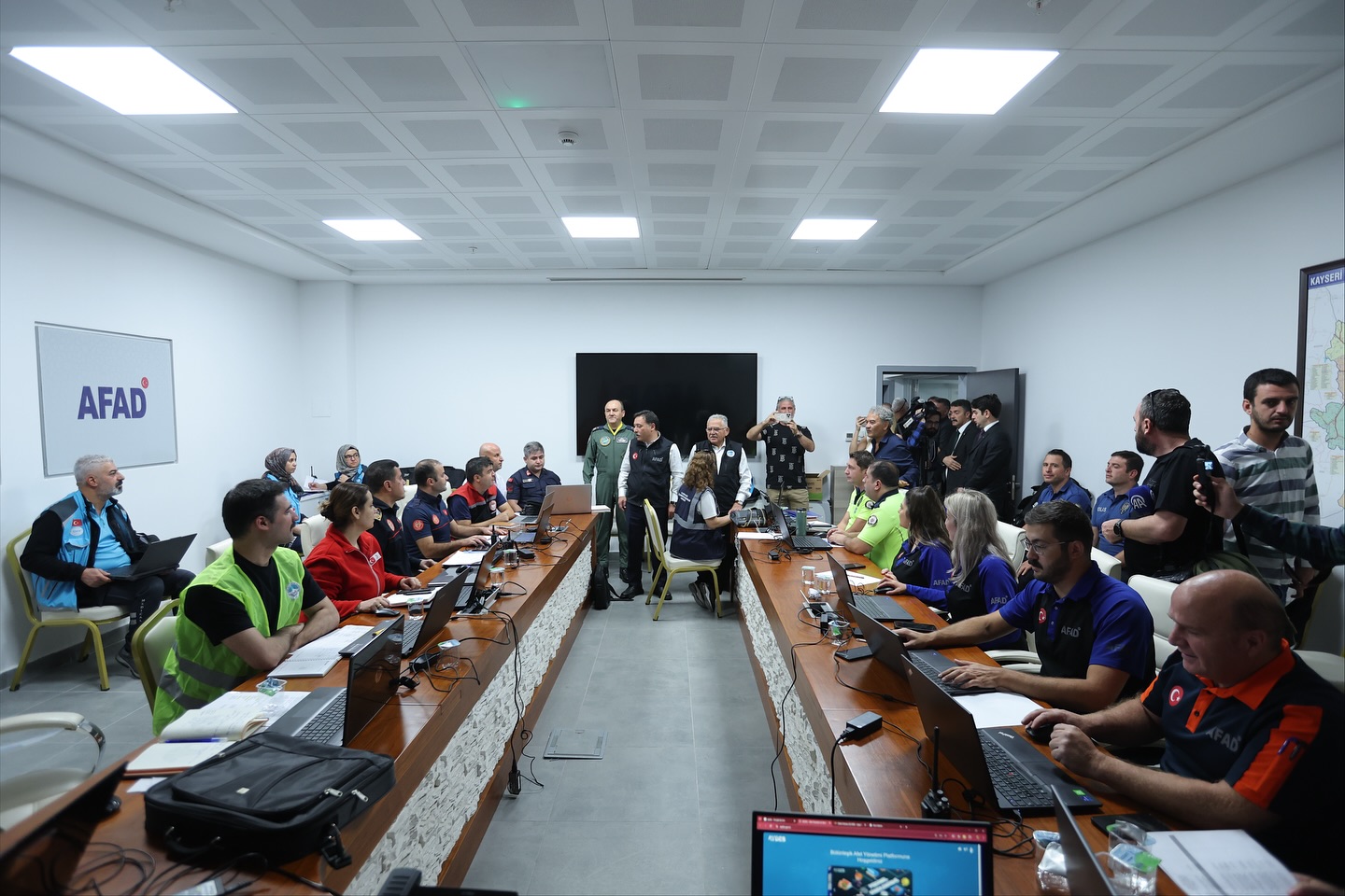 İl Afet ve Acil Durum Müdürlüğü’nde gerçekleşen tatbikata Vali Gökmen Çiçek ile beraberindeki diğer kurum ve kuruluşların temsilcileri, Kayseri Büyükşehir Belediye Başkanı Dr. Memduh Büyükkılıç ve Büyükşehir Belediyesi kuruluşlarının yetkilileri katıldı.