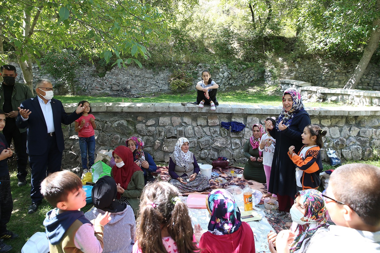 ilgilenerek onların piknik esnasında yemek dualarına eşlik etti. Çocuklara