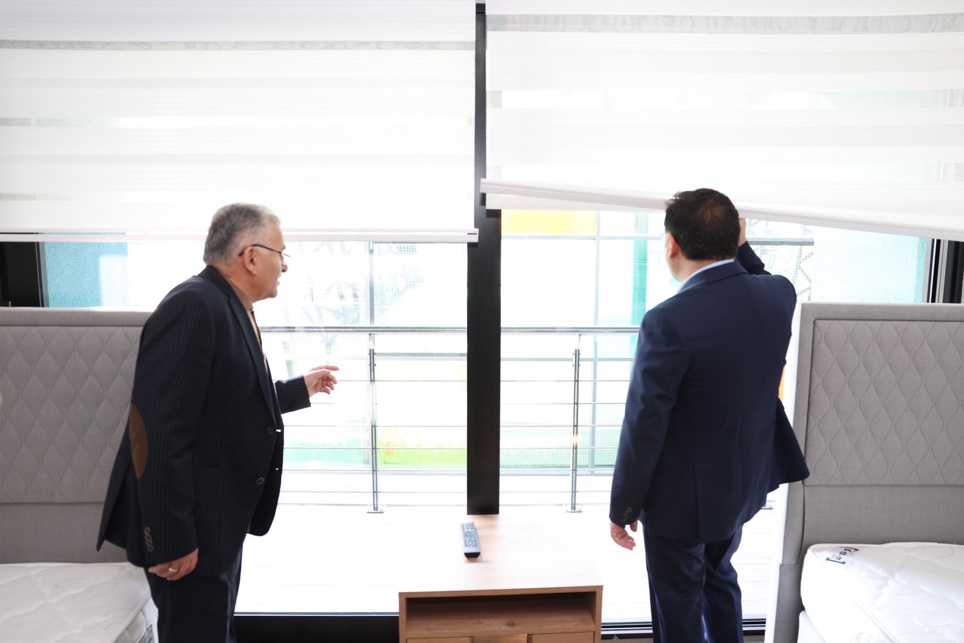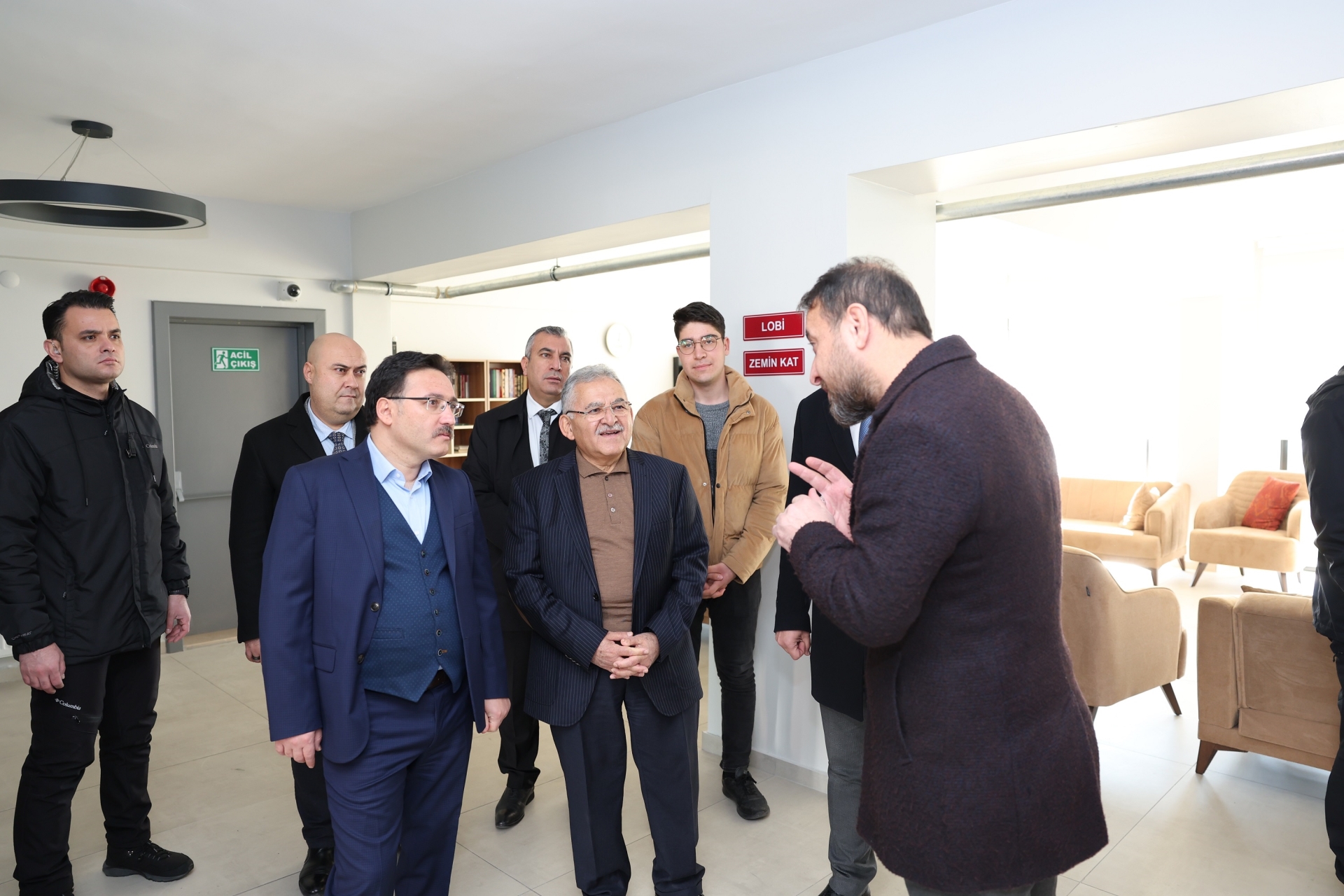 KAYMEK Akademi Tesisleri ziyaretinin ardından hayırsever-belediye işbirliğinde yapılan ve dua alan Ali İhsan-Gülsevim Erbil Hasta ve Hasta Yakınları Misafirhanesi’ndeki çalışmaları inceleyen ve tamamlanan misafirhaneyi gezen Başkan Büyükkılıç ve Vali Çiçek, misafirhanenin Kayseri için önemli bir hizmet olacağını ifade ettiler.