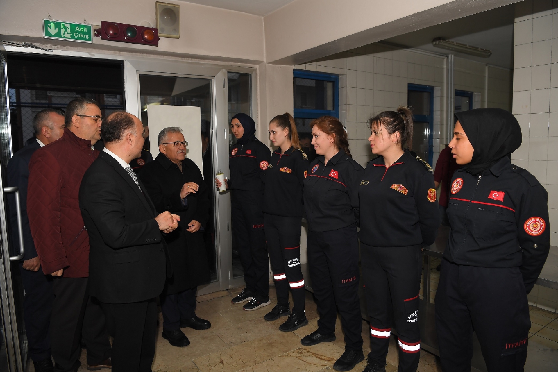 Kadın itfaiyeciler tarafından karşılanan Vali Günaydın ile