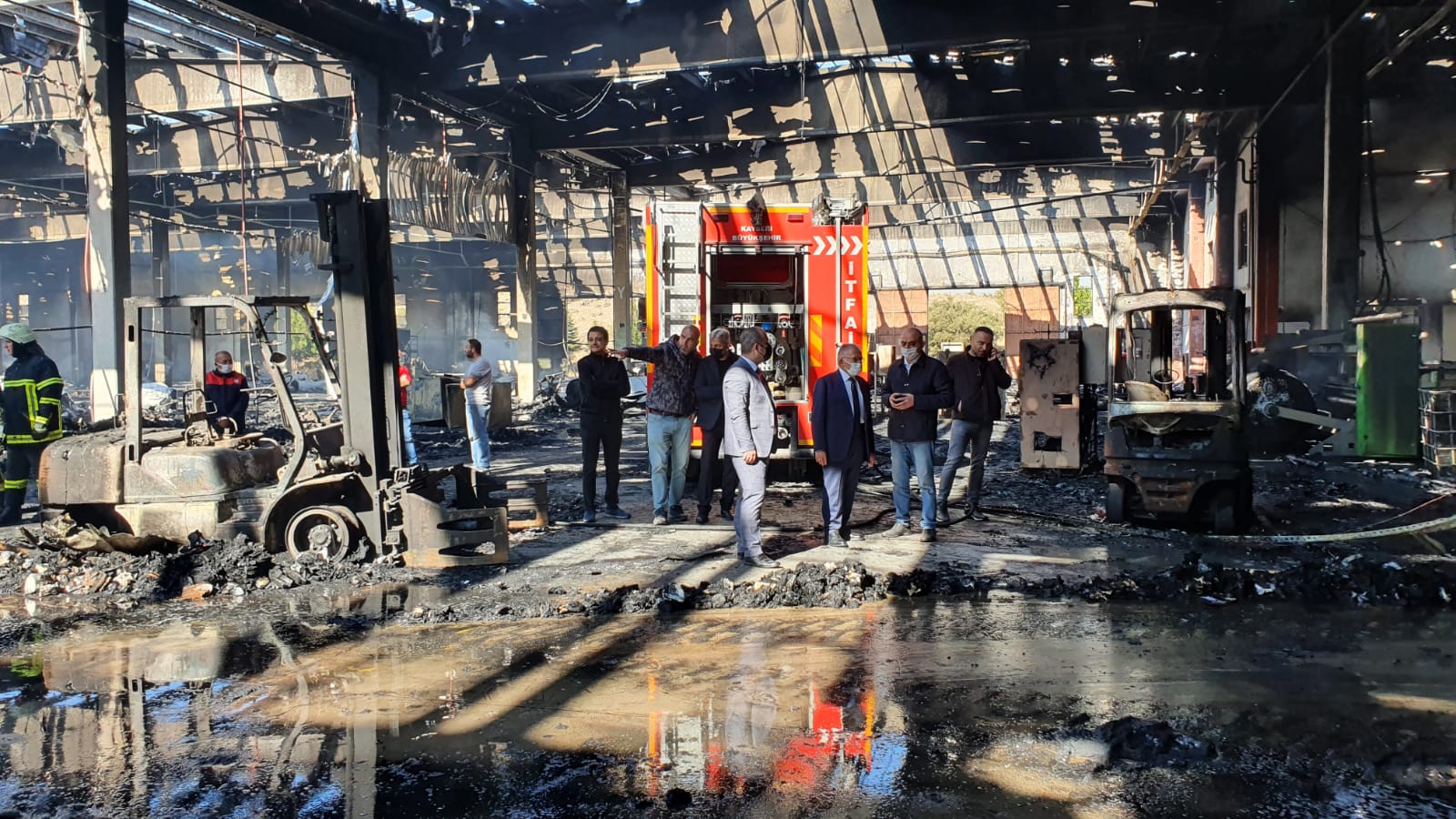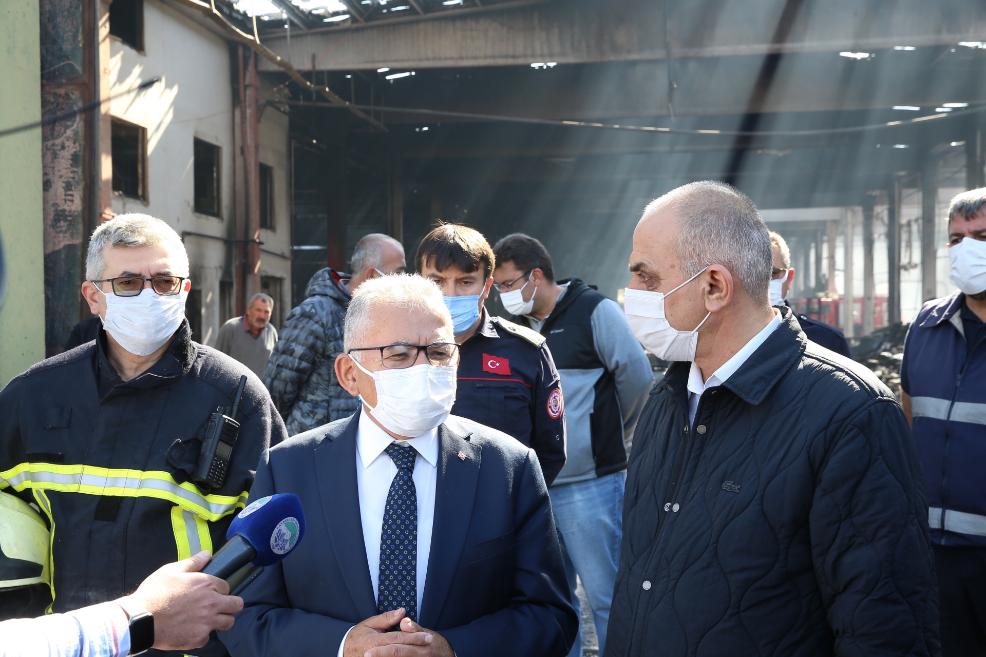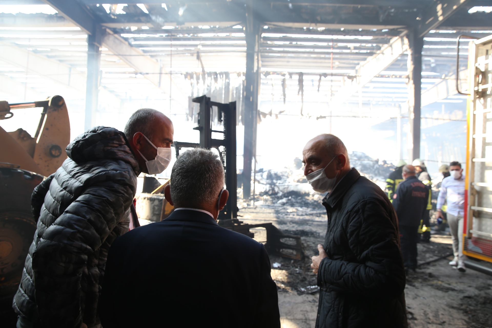 geçmiş olsun dileklerinde bulundu hem de yangın çıkan fabrikada incelemelerde