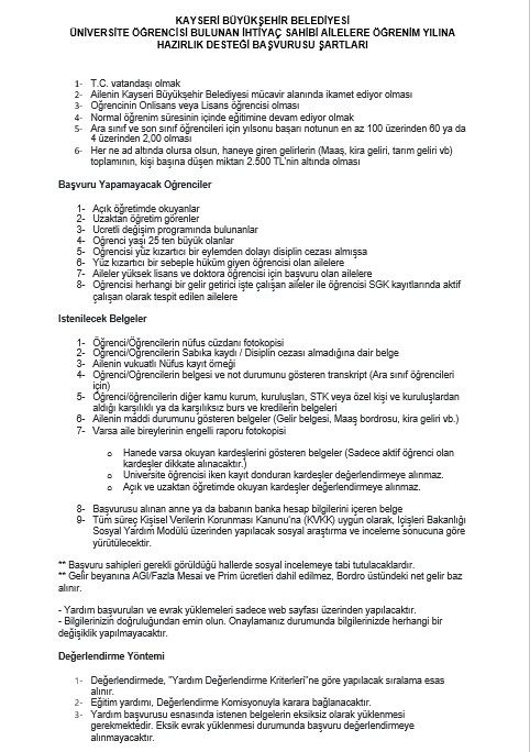 öğrencilerin yardımdan faydalanabilmesi için başvuru şartları şu şekilde
