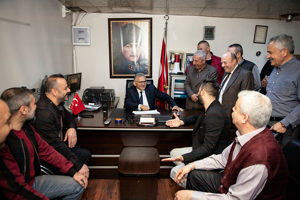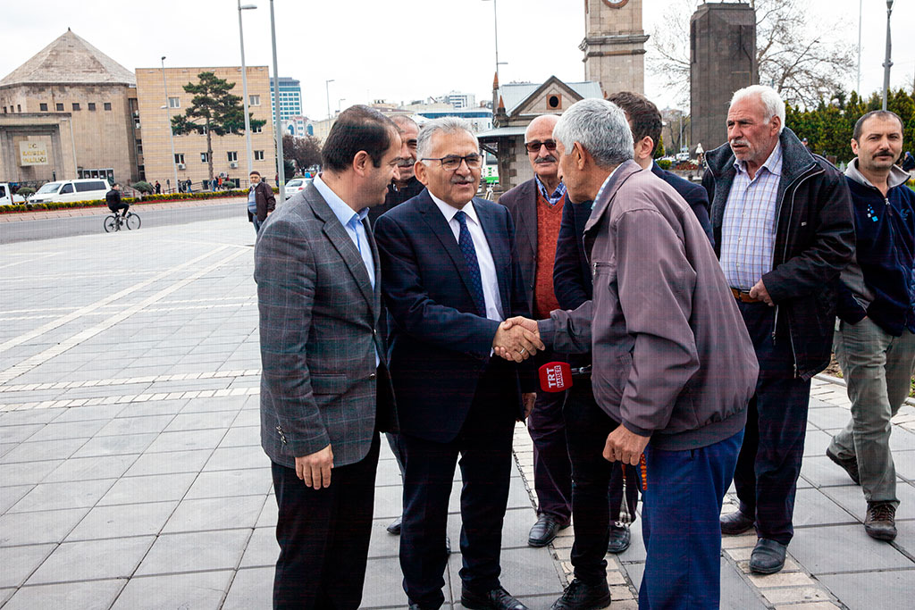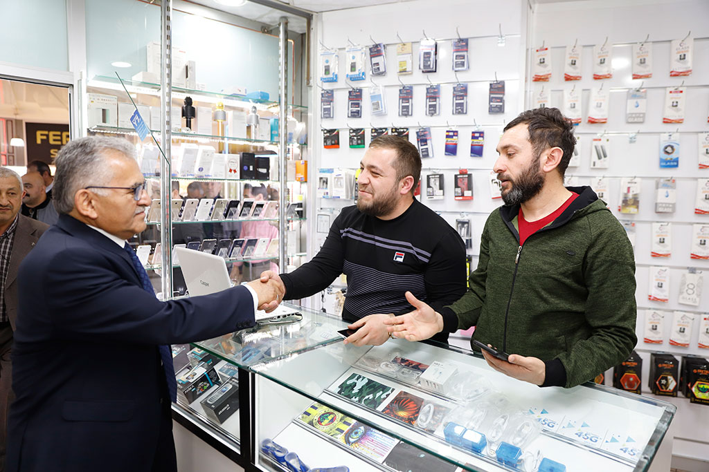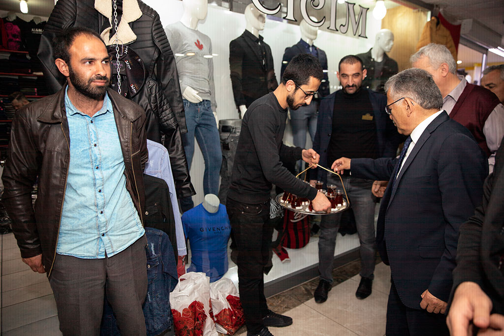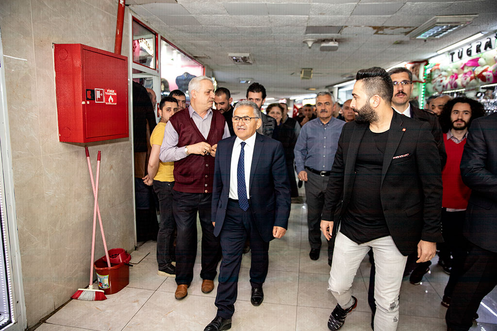 Kayseri Büyükşehir Belediye Başkanı Dr. Memduh Büyükkılıç, Yeraltı Çarşısı’nı ziyaret ederek esnafların taleplerini dinledi. Cumhuriyet Meydanı’nda da vatandaşlarla selamlaşan Başkan Büyükkılıç, Uluslararası Liselerarası Tiyatro Festivali için şehrimize gelen Gürcistan ekibiyle karşılaşınca renkli anlar yaşandı. Büyükşehir Belediye Başkanı Memduh Büyükkılıç, Yeraltı Çarşısı ziyareti öncesi Cumhuriyet Meydanı’nda vatandaşlarla selamlaştı. Başkan Büyükkılıç, bu sıra Büyükşehir Belediyesi’nin düzenlediği Uluslararası Liselerarası Tiyatro Festivali için ilimize gelen Gürcistan ekibiyle karşılaştı. Başkan Büyükkılıç ile Gürcistanlı misafirlerimiz arasında sıcak ve samimi bir sohbet yaşandı. Gürcistanlı misafirler Kayseri’de kendilerini evlerinde gibi hissettiklerini belirterek, Başkan Büyükkılıç’a teşekkür ettiler. Büyükşehir Belediye Başkanı Memduh Büyükkılıç, daha sonra Yeraltı Çarşısı’nı ziyaret etti. Yeraltı Çarşısı Derneği’nde Dernek Başkanı Gökhan Gülen ve esnaflarla görüşen Başkan Büyükkılıç, esnafın taleplerini dinledi. Yeraltı Çarşısı esnafı, Başkan Büyükkılıç’a samimiyeti ve yakın ilgisi nedeniyle teşekkür ederek, ne denli yakınlık duyduklarını Büyükşehir Belediyesi için “O kapı bizim kapımız” ifadelerini kullanarak dile getirdiler. Büyükşehir Belediye Başkanı Büyükkılıç, derneği ziyaretinin ardından çarşıyı gezerek esnaflarla selamlaştı ve hayırlı işler temennisinde bulundu.