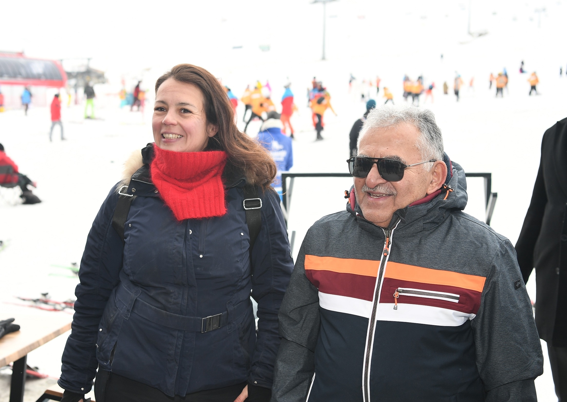 Büyükkılıç, kayak yapan yabancı turistlerle de sohbet etmeyi ihmal etmedi.
