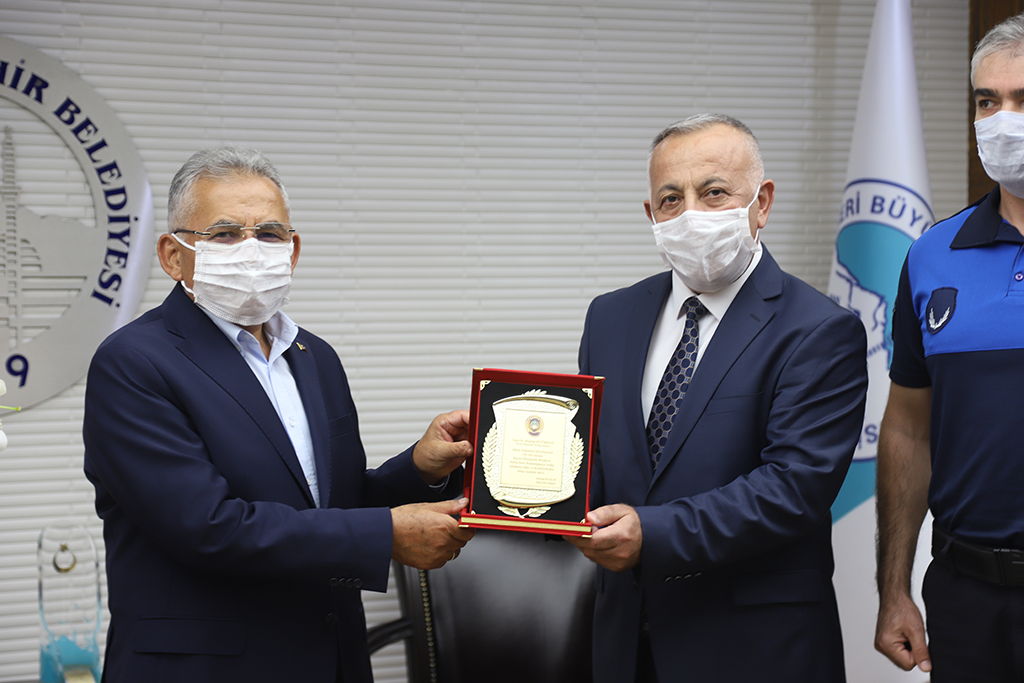 Büyükşehir Belediyesi Genel Sekreter Yardımcısı Bayar Özsoy ve Zabıta Daire Başkanı Mustafa Kayacık “Zabıta Haftası” nedeniyle Kayseri Büyükşehir Belediye Başkanı Dr. Memduh Büyükkılıç’ı ziyaret etti. Zabıta Haftası nedeniyle kendisini ziyaret eden Büyükşehir Belediyesi Genel Sekreter Yardımcısı Bayar Özsoy, Zabıta Daire Başkanı Mustafa Kayacık ve Zabıta ekiplerine teşekkür eden Başkan Büyükkılıç, “Belediyemizin vitrini olarak nitelendirdiğimiz Büyükşehir Zabıta ekibimiz başta olmak üzere tüm ilçelerdeki Zabıtalarımızın Zabıta Haftası’nı tebrik ediyorum. Şehrimizde yaşayan hemşehrilerimizin esenliği, huzuru, sağlıklı bir çevre edinmeleri konusunda özellikle de pandemi döneminde fedakarca çalışan zabıta ekibimize teşekkür ediyorum. Sağ olsunlar, var olsunlar. Onların samimi ve fedakar gayretleri şehrimizdeki bu bahsettiğimiz sağlıklı ve huzurlu, esenli ortamı sağlamaya en büyük destek. Tabi emniyetimizle iş birliği halinde, sağlık çalışanlarımızla iş birliği halinde gece demeden gündüz demeden fedakarca ve sabretmenin en güzel örneğini gösteriyor ve vatandaşlarımızın gönlünde yer ediyorlar. Dolayısıyla belediyemizi temsil etme yönünde gayretlerini de biliyorum. Hepinize teşekkür ediyor sağlıklı huzurlu daha nice yıllara, haftalara diye dua ve temennide bulunuyorum” şeklinde konuştu.