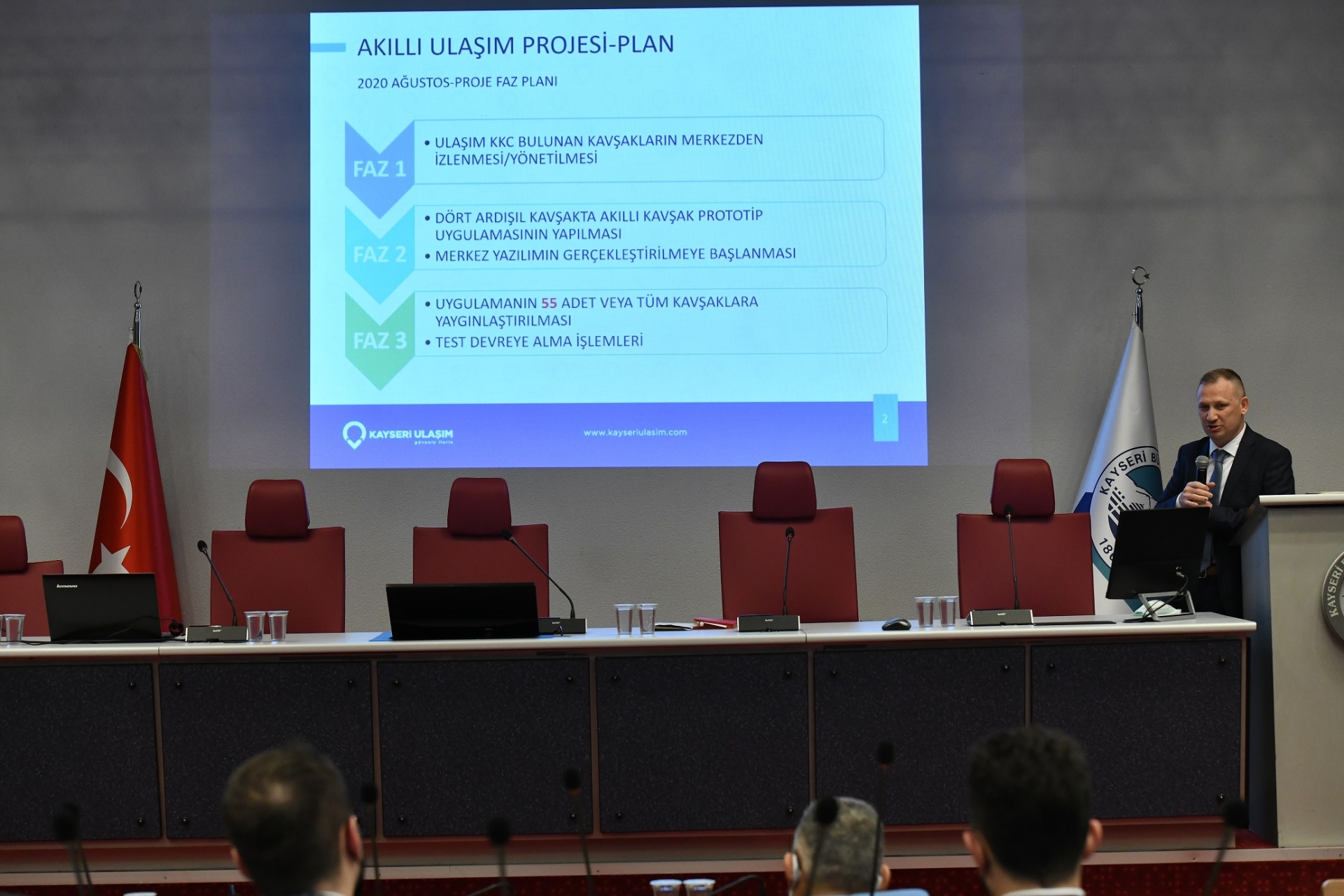 Ulaşım A.Ş. Genel Müdürü Feyzullah Gündoğdu da yaptığı sunumda akıllı kavşak projesi faz planlarının geldiği noktayı anlatırken, Bilgi İşlem Daire Başkanı Emre Yaylagül ise ‘Akıllı Şehir Kayseri’ uygulaması hakkında bilgiler verdi. Akıllı Şehir Kayseri mobil uygulamasının şu ana kadar 124 bin kişinin telefonlarına yüklediğini ve uygulamanın 78 bin aktif kullanıcısı olduğunu belirten Yaylagül, Akıllı Şehir Kayseri mobil uygulamasının daha modern, estetik, kullanışlı ve kapsamlı hale getirilmesi için çalışmaların aralıksız sürdüğünü ifade etti.