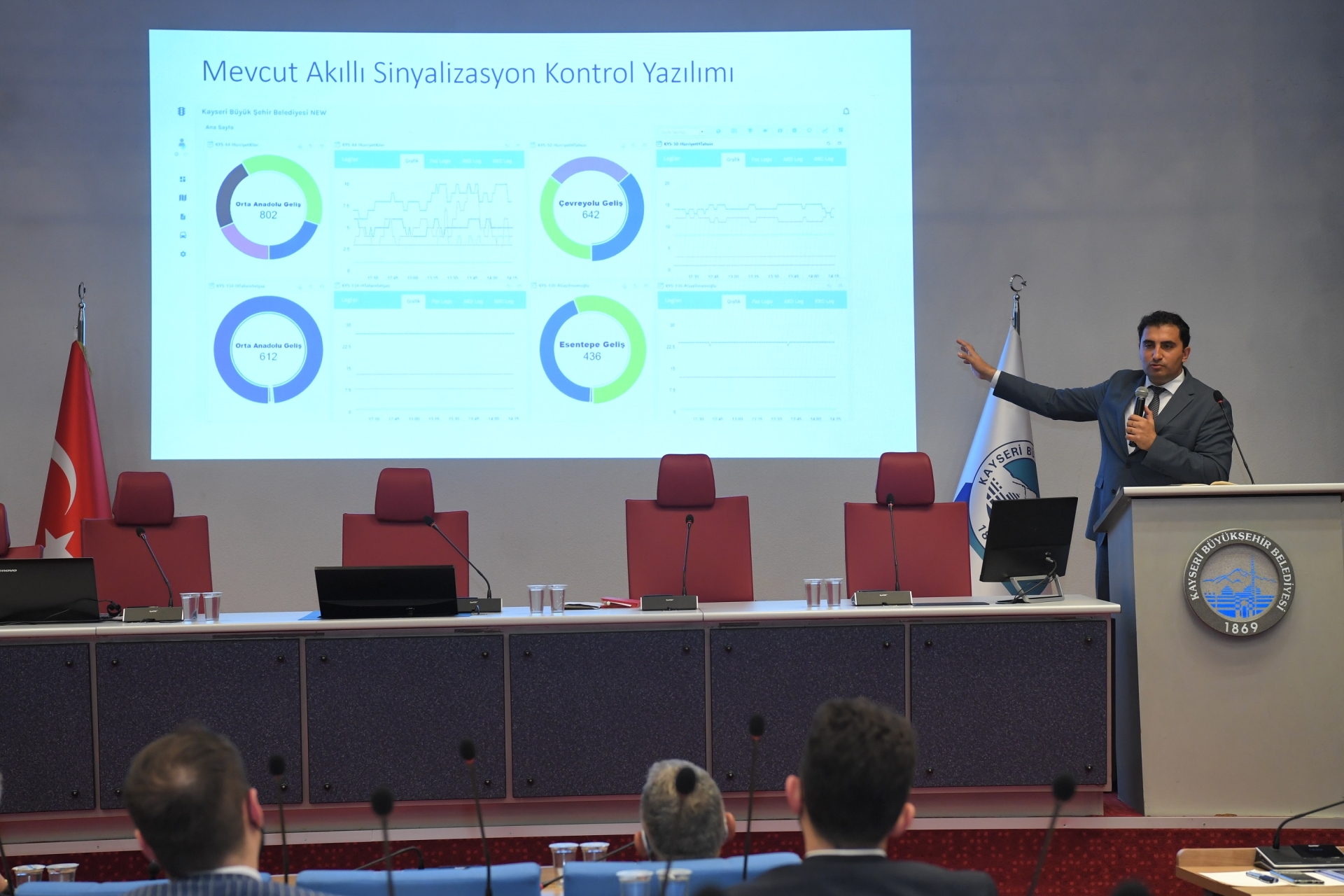 Toplantıda Başkan Büyükkılıç’a, Ulaşım Planlama ve Raylı Sistem Daire Başkanlığı tarafından akıllı ulaşım sistemleri, kavşak tipleri, elektronik denetleme sistemleri, planlama yapılan kavşaklar, değişken mesaj sistemleri, akıllı sinyalizasyon kontrol yazılımı gibi çalışmalar anlatılırken, ulaşımda anlık takip ve denetim ile raporlar konusunda yapılan çalışmalar aktarıldı.