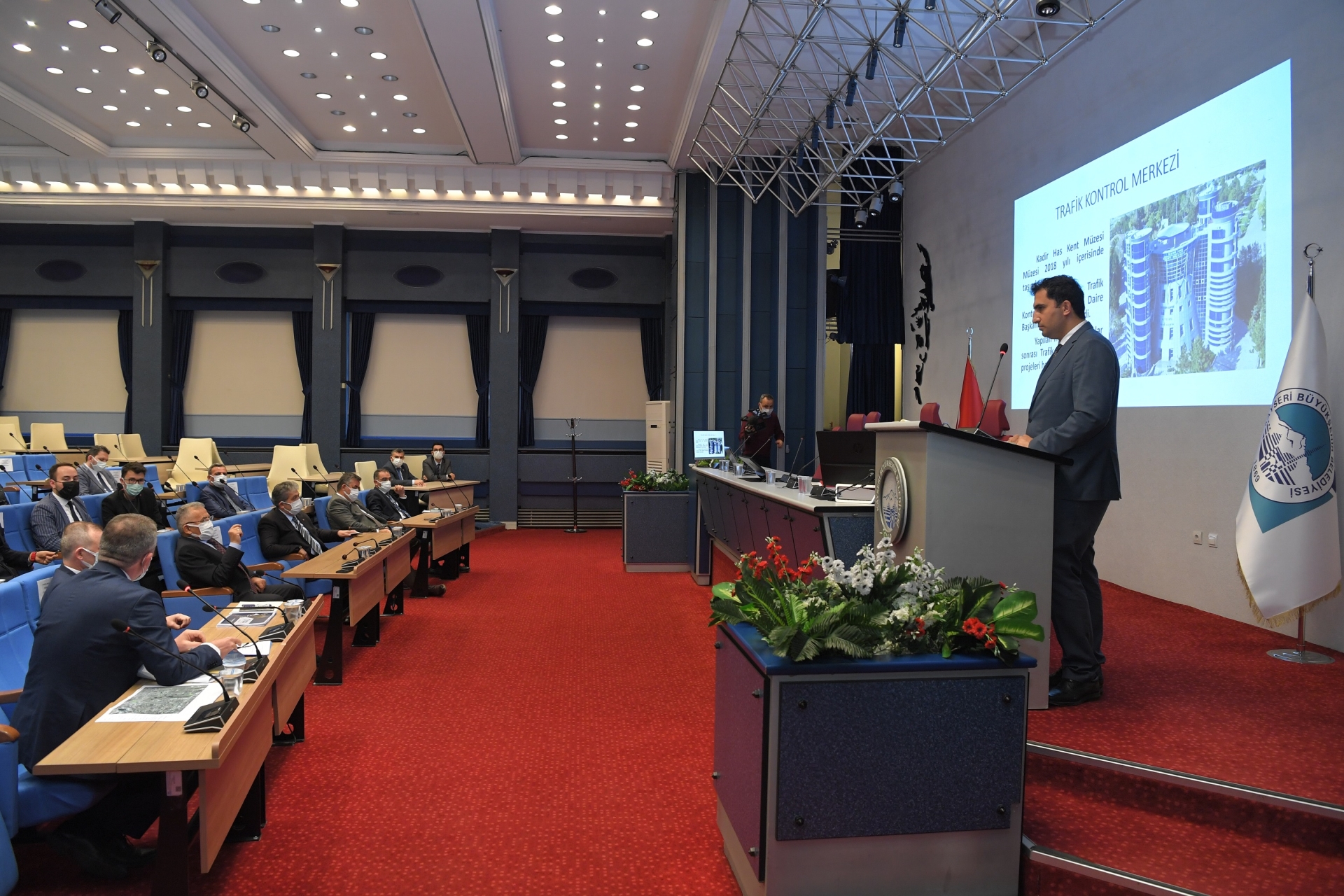 Kayseri Büyükşehir Belediyesi trafikten sağlığa, kent güvenliğinden estetiğine kadar birçok alanda akıllı şehirciliğe yönelik uygulamaları hayata geçirirken, bu konuda Büyükşehir Belediye Başkanı Dr. Memduh Büyükkılıç’a, Ulaşım A.Ş. ile Bilgi İşlem ve Ulaşım Planlama ve Raylı Sistem Daire Başkanlıkları tarafından kapsamlı sunum yapıldı. Büyükşehir Belediyesi Meclis Salonu’nda gerçekleşen toplantıya Büyükşehir Belediye Başkanı Dr. Memduh Büyükkılıç’ın yanı sıra Genel Sekreter Hüseyin Beyhan, Genel Sekreter Yardımcıları Hamdi Elcuman, Serdar Öztürk ve Bayar Özsoy, Bilgi İşlem Daire Başkanı Emre Yaylagül ve Ulaşım Planlama ve Raylı Sistem Daire Başkanı Sedat Erdoğan, Ulaşım A.Ş. Genel Müdürü Feyzullah Gündoğdu ile ekipleri hazır bulundu.