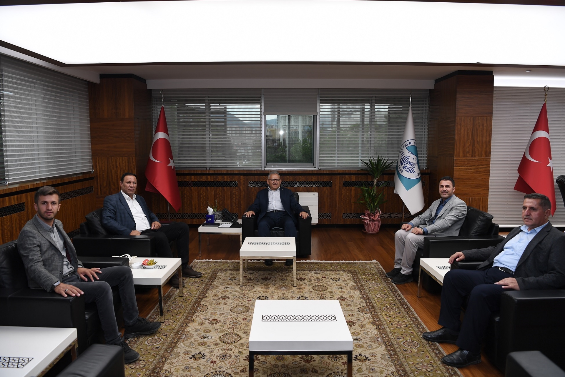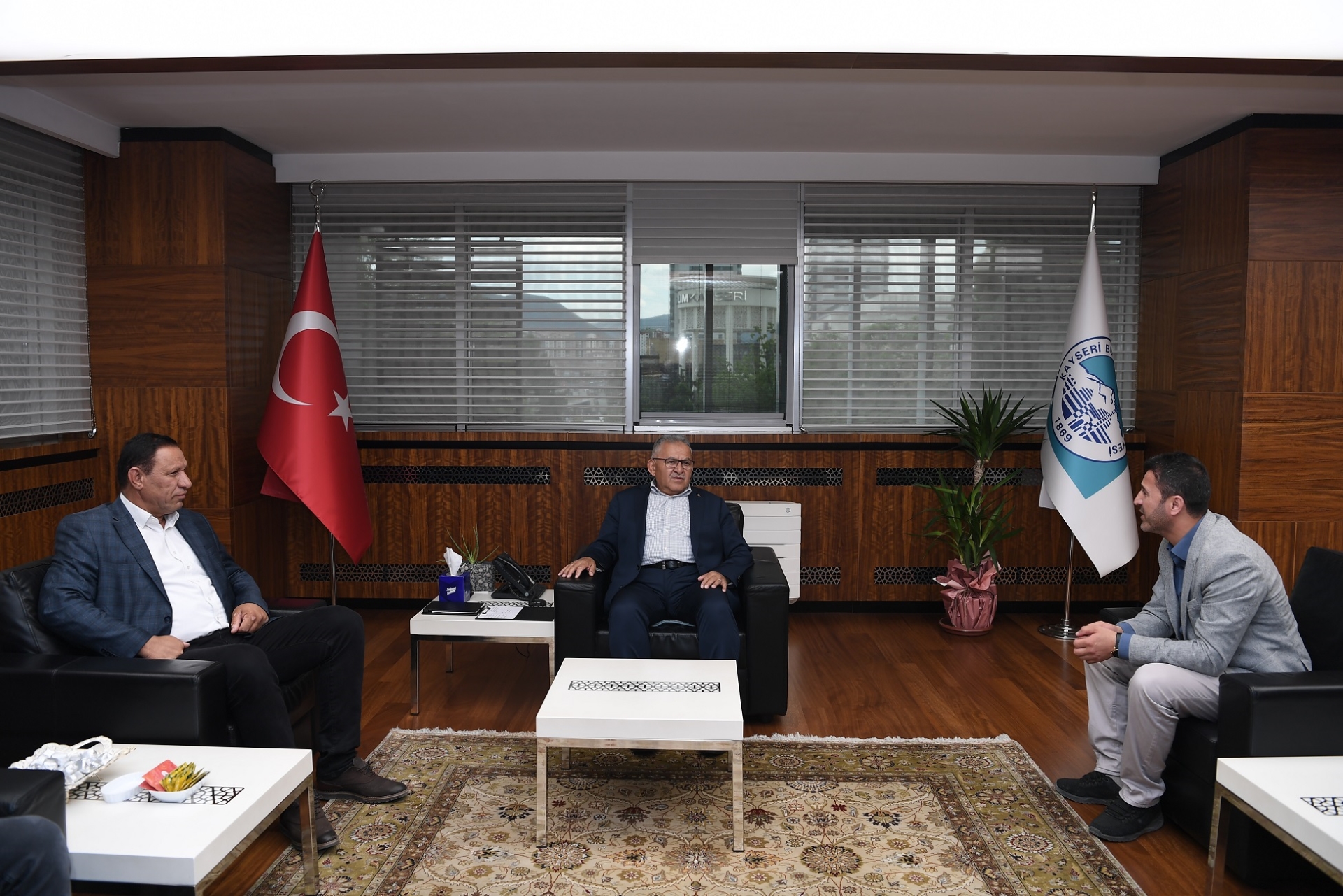 ve heyeti ile sohbet eden Kayseri Büyükşehir Belediye Başkanı Dr. Memduh