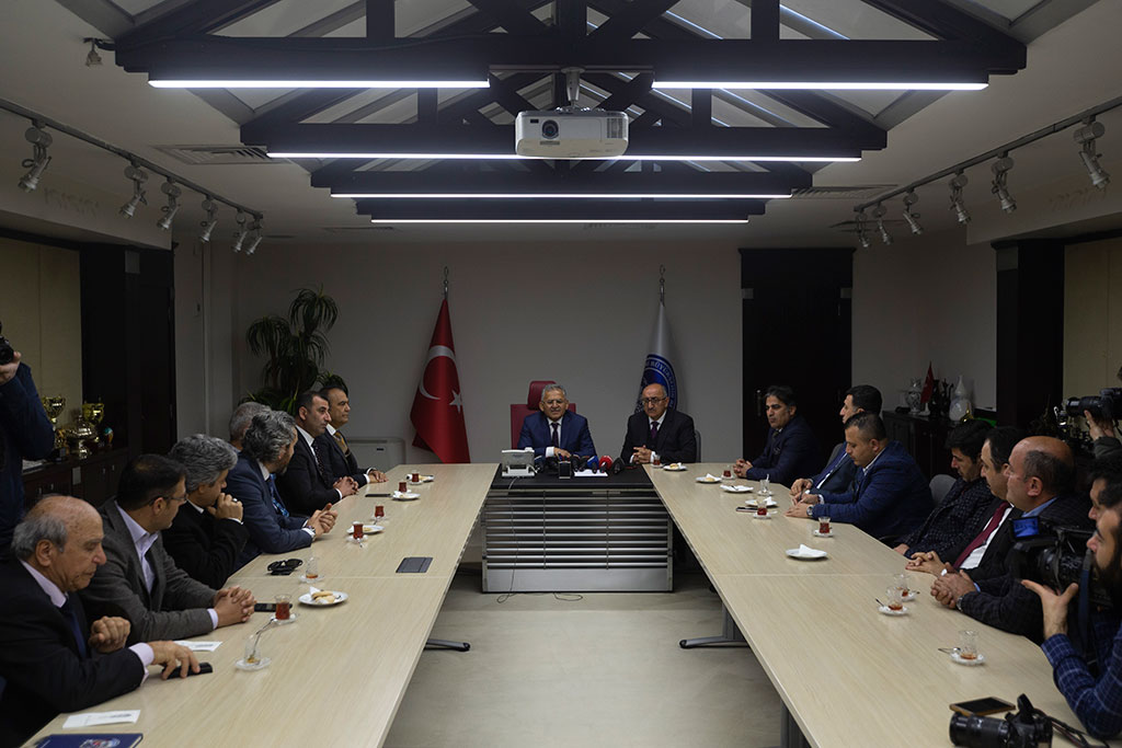 Kayseri Büyükşehir Belediye Başkanı Dr. Memduh Büyükkılıç’ın görevi devralmasıyla birlikte toplumun her kesiminden başlayan “Hayırlı Olsun” ziyaretleri devam ediyor. Başkanlık katına gelen vatandaşların tamamını makamında kabul eden ve hayır dualarını alan Başkan Büyükkılıç’a kurum ve kuruluşlardan da ziyaretler gerçekleşiyor. Kayseri Organize Sanayi Bölgesi (OSB) Yönetim Kurulu Başkanı Tahir Nursaçan ve yönetimini makamında kabul eden Başkan Büyükkılıç, ziyaretten duyduğu memnuniyeti dile getirerek, “İyi ki varsınız. Allah sizlerden razı olsun. Şehrimize hem katma değer hem ihracat anlamında güzel katkılarda bulunuyorsunuz. Sizden daha fazlasını bekliyoruz. Bizler de bir organizatör mantığı içinde üniversitelerimizle ve Organize Sanayi Bölgesi ile yolumuza hep birlikte devam edeceğiz” dedi. Başkan Büyükkılıç’ın Kayseriye önemli hizmetleri olduğunu belirten Organize Sanayi Bölgesi Başkanı Tahir Nursaçan ise, “Şehrimizde önemli hizmetleriniz oldu. Bugün de büyükşehir belediyemizde sizin Büyükşehir Belediye Başkanı olduğunuzu görmekten duyduğumuz mutluluğu şahsım, yönetim kurulum ve sanayicilerim adına ifade etmek isterim. İnşallah gönlümüz, kalbimiz bir ve beraber olup güzel kayserimizin daha üst seviyelere çıkması için sizinde desteğinizle çalışmalarımızı arttıracağız” ifadelerini kullandı. “AYRIŞTIRMAYIZ, ÖTEKİLEŞTİRMEYİZ” Kayseri Gazeteciler Cemiyeti Başkanı Veli Altınkaya ve üyeleri de Başkan Büyükkılıç’a hayırlı olsun ziyaretinde bulundu. Her ortamda “Kayseri” ortak paydasında buluştukları Gazeteciler Cemiyeti üyelerinin ziyaretinden memnuniyet duyduğunu belirten Başkan Büyükkılıç, konuşmasını şöyle sürdürdü: “31 Mar t itibariyle seçimlerimiz sonuçlandı. Kayseri’mize yakışan bir huzur ortamı oldu. Buna katkı sağlayan tüm belediye başkanlarımıza, tüm belediye meclis üyelerimize ayrı ayrı teşekkür ediyorum. Ama burada en önemli katkıyı gazeteci dostlarımızın sağladığını düşünüyorum. Çünkü sizlerin olgun ve olumlu yaklaşımı bizi bu günlere getirdi. İyi ki varsınız. Tabi insanoğluyuz zaman zaman hatalar olabilir ama art niyet olmadığı sürece hepsine çözüm bulunur. Sizler de kamu görevi yapıyorsunuz dolayısıyla hatalarımız olduğunda da çekinmeden nezaket kuralları çerçevesinde bizlere hatırlatmanızı beklerim. Rabbim sizleri ve büyükşehir belediyesi ile birlikte on altı belediye başkanını mahçup etmesin. Çünkü biz ayrıştırmayız, ötekileştirmeyiz. Biz insanlarımıza hizmet için varız.” Başkan Memduh Büyükkılıç’ın uzun yıllar Kayseri’de aktif siyasetin içerisinde olduğunu ve gazeteciler olarak kendisini yakından tanıdıklarını belirten Kayseri Gazeteciler Cemiyeti Başkanı Veli Altınkaya ise, “Sayın Başkanımızın basınla hep yakın ve sıcak ilişkileri oldu. Tüm üyelerim ve yönetimim adına sizi tebrik diyorum, başarılar diliyorum. Eminim ki halka vaat ettiğiniz projeleri, beklide daha fazlasını hayata geçireceksiniz. Basınla ilişkiler noktasında da geride bıraktığımız 20 yıl içerisinde çok sıcak samimi bir diyaloğumuz oldu. Burası büyükşehir olunca basınla ilişkileri on altı kat daha artıracağından hiç şüphem yok” dedi. “KAYSERİ’Yİ İLERİYE TAŞIMA GAYRETİ İÇERİSİNDE OLACAĞIZ” Büyükşehir Belediye Başkanı Memduh Büyükkılıç, Yönetim Kurulu Başkanlığını yaptığı Kayseri Serbest Bölgesi’nin yöneticilerinin de “hayırlı olsun” dileklerini kabul etti. Genel Müdürü Ahmet Ziya Beşparmak ve yönetim kurulu üyeleri ile bir süre görüşen Başkan Büyükkılıç, Kayseri’yi dala ileriye taşıma gayreti içerisinde olduklarını belirterek, “İnşallah Organize Sanayi Bölgesi, Serbest Bölge, Tekno Park, Sanayi Odası, Ticaret Odası ve Ticaret Borsamız ile bir ahenk, uyum ve dayanışma içerisinde en güzel şekilde Kayseri’mizi daha ilerilere taşıma gayreti içerisinde olacağız. Serbet bölgemizin gerçekten güzide ekibiyle birlikte çalışmaktan gurur duyuyorum” diye konuştu. Büyükşehir Belediye Başkanı Memduh Büyükkılıç’ın her daim arkasında olduklarını belirten Kayseri Serbest Bölgesi Yönetim Genel Müdürü Ahmet Beşparmak, Başkan Büyükkılıç’a başarı diledi.