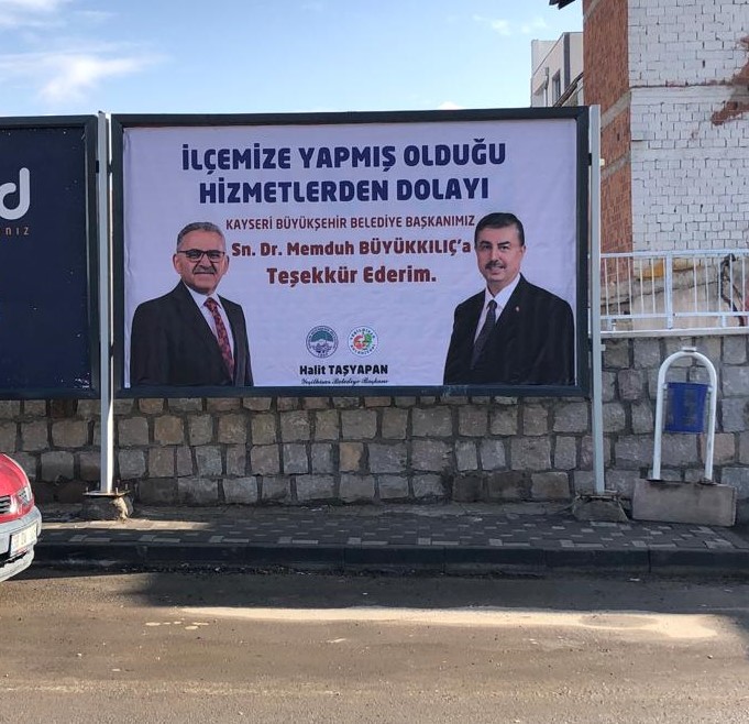 Başkan Büyükkılıç’a ilçeye yapılan yatırım dolayı, afişlerle teşekkür etti.