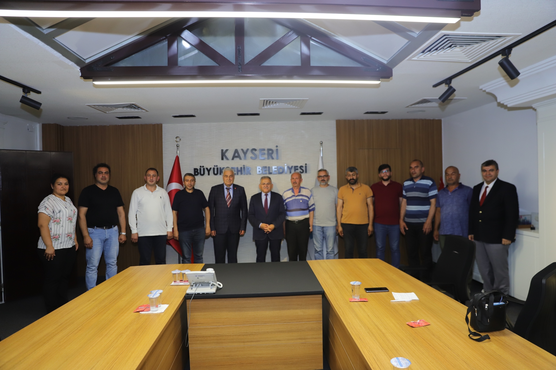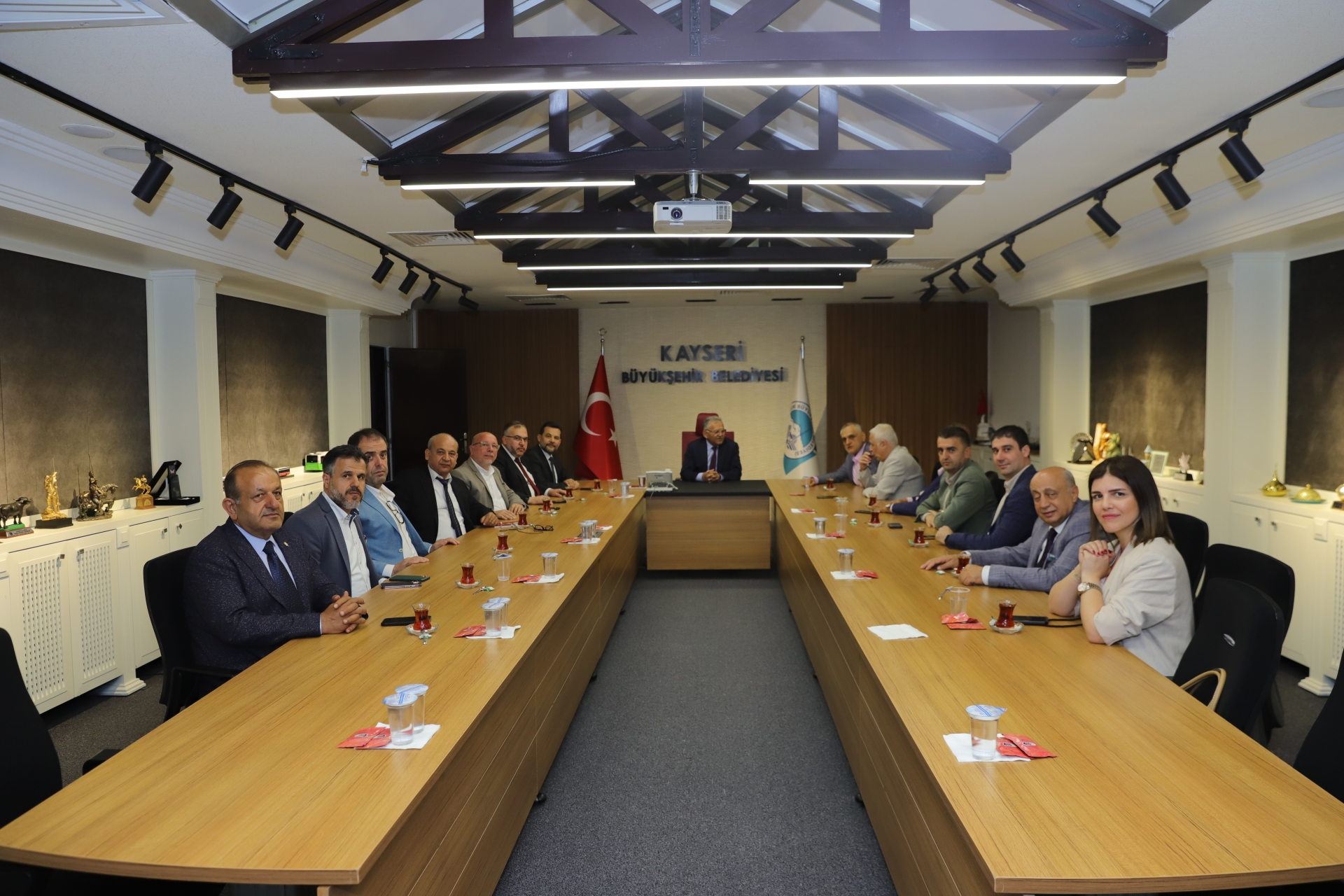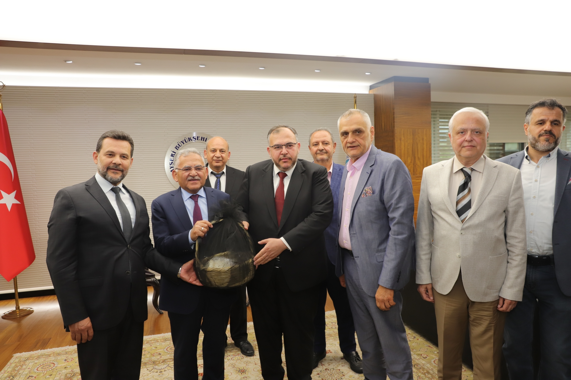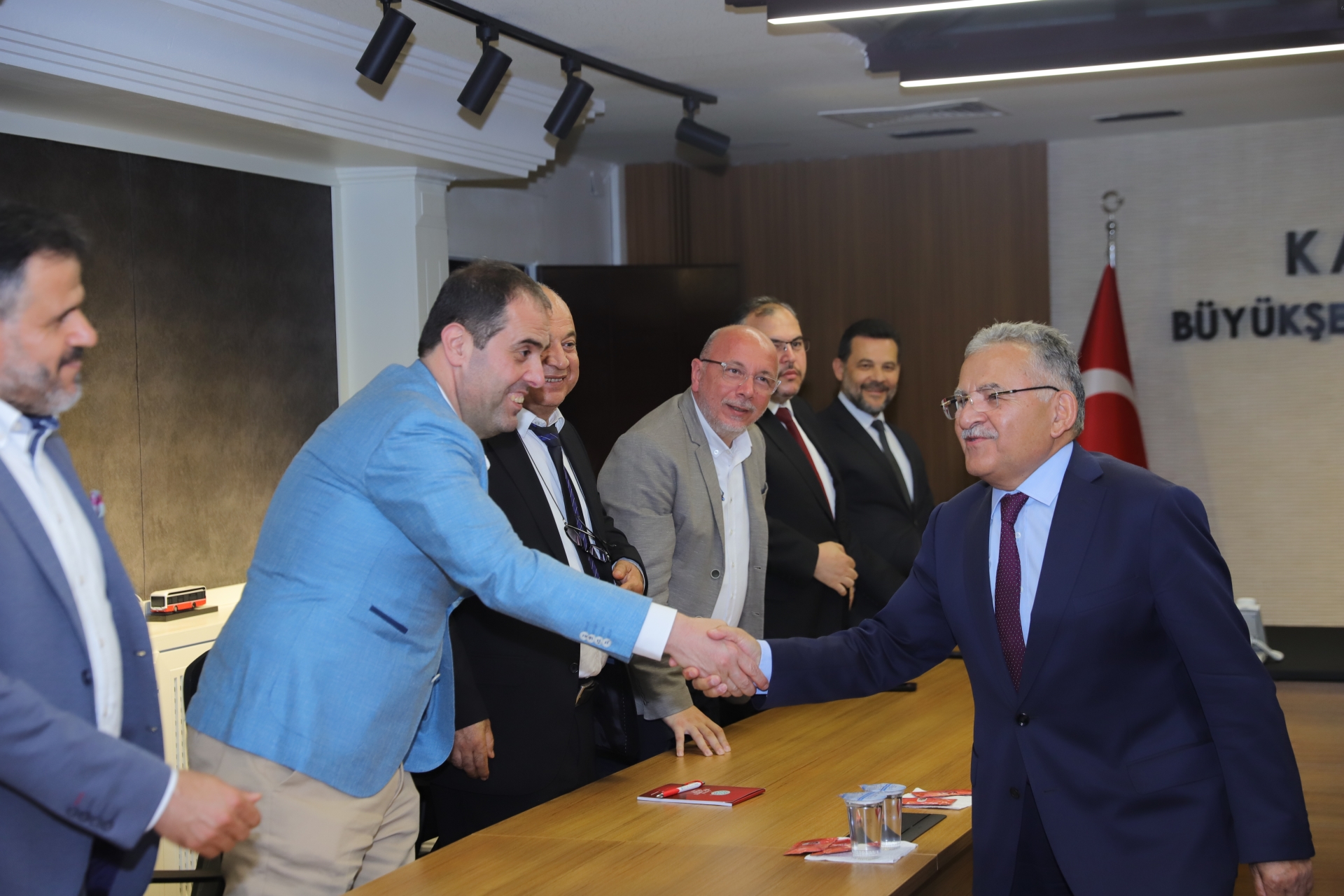 Kayseri Büyükşehir Belediye Başkanı Dr. Memduh Büyükkılıç, Çorum Mecitözü Kaymakamı, Antakya Ticaret Odası ve Sanayi Odası Başkanı, AK Parti Meclis Üyesi ve Erdemli Mahalle Muhtarı, Toprak Mahsulleri Ofisi Kayseri Şube Müdürü, Sıhhı Tesisatçılar Odası Dernek Başkanı ve yönetimi, Diş Hekimleri Odası Başkanı, Develi Şıhlı Mahalle Muhtarı ile Atatürkçü Düşünce Derneği Kayseri Şubesi Yönetim Kurulu’nu kabul etti. Yerel yönetim hizmetlerini gönül belediyeciliği anlayışıyla yürüten Başkan Büyükkılıç, kamu kurum kuruluşları ve sivil toplum kuruluşları ile istişareler gerçekleştirerek ortak aklı ön planda tutmaya ayrı bir önem veriyor. Bu kapsamda Çorum Mecitözü Kaymakamı Mustafa Atış, Antakya Ticaret Odası ve Sanayi Odası Başkanı Hikmet Çinçin ve beraberindeki heyet, AK Parti Meclis Üyesi İlyas Emre ve Erdemli Mahalle Muhtarı Ahmet Çavuş ile beraberindekiler, Toprak Mahsulleri Ofisi Kayseri Şube Müdürü Abdülnaim Gülseroğlu, Sıhhı Tesisatçılar Odası Dernek Başkanı Mehmet Faruk Vural ve Yönetim Kurulu Üyelerini, Diş Hekimleri Odası Başkanı Umut Kural ve beraberindeki heyet ile Develi Şıhlı Mahalle Muhtarı Yıldırım Demirel, Atatürkçü Düşünce Derneği Kayseri Şubesi Yönetim Kurulu Büyükkılıç’a ziyarette bulundular.Başkan Büyükkılıç, misafirlerini başkanlık toplantı salonu ve makamında ayrı ayrı kabul ederek, sohbet etti, istişarelerde bulundu.Ziyaretlerin ardından açıklamalarda bulunan Büyükkılıç, Büyükşehir Belediyesi olarak gönül belediyeciliği ve kucaklayıcı hizmet anlayışı çizgisinde gayret gösterdiklerini vurgulayarak, “Bütün derdimiz ve çabamız Kayserimiz ve ülkemiz içindir. Gerek şehrimizde gerek çevre illerimizde kamu kurum kuruluşlarımız ve STK’larımız ile daima birlik ve dayanışma içerisindeyiz. Ortak bir amaç olan bu güzel şehre ve ülkeye hizmet etmek için ortak aklı ön planda tutuyor, bu doğrultuda bulduğumuz her fırsatta istişarelerimizi yapıyoruz. Bugünde bizleri ziyaret eden her bir kardeşimize ayrı ayrı teşekkür ediyorum. Her birine çalışmalarında başarılar diliyorum” diye konuştu.Samimi ve sıcak bir ortamda gerçekleşen ziyaretlerin ardından Başkan Büyükkılıç’a hediye takdimleri olurken, Büyükkılıç misafirleriyle ayrı ayrı fotoğraf çektirdi.