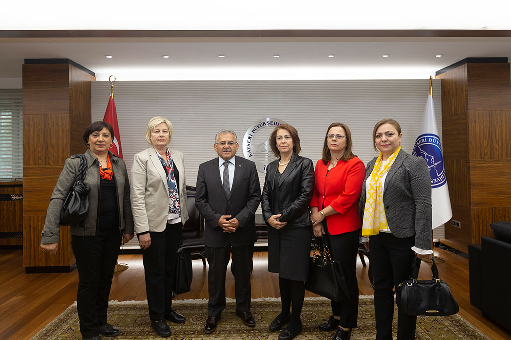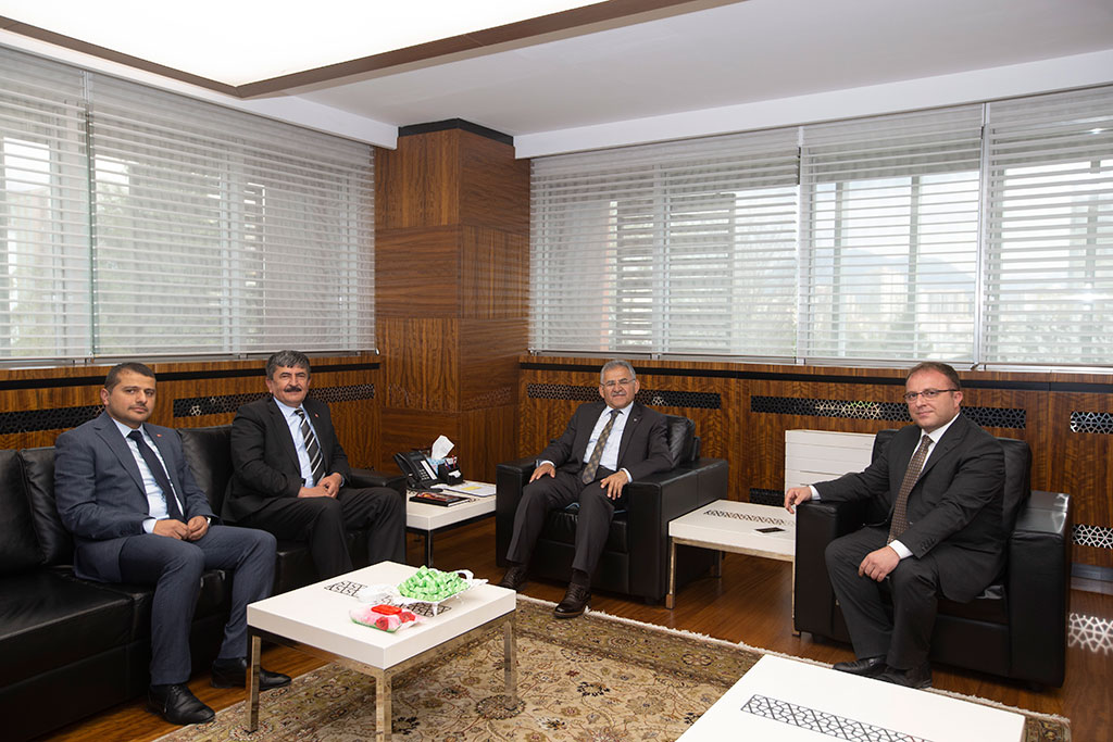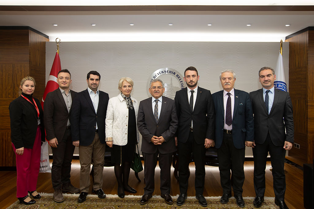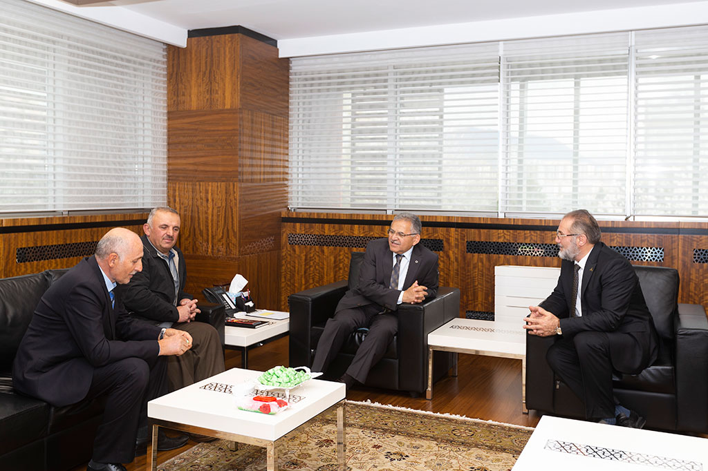 Kayseri Büyükşehir Belediye Başkanı Dr. Memduh Büyükkılıç’a hayırlı olsun ziyaretleri devam etti. Başkan Büyükkılıç, tüm kişi, kurum ve kuruluşlara ilgileri için teşekkür etti ve Kayseri için hep birlikte el ele gönül gönüle çalışacaklarını söyledi. Büyükşehir Belediye Başkanı Memduh Büyükkılıç’ı Gönüllü Kültür Teşekkülleri Başkanı Ahmet Taş ile Konya Sivil Toplum Kuruluşları Platformu Başkanı Muhsin Görgülü ziyaret etti. Ziyarette Başkan Büyükkılıç’a hayırlı olsun temennilerini ileten Ahmet Taş, “Rabbim adaletle, şevkle, başarıyla hizmet etmeyi nasip etsin. Sivil topluma düşen bir görev olursa hem yanınızdayız hem de duacınızız” dedi. Ahmet Taş, ziyarette ayrıca Konya Sivil Toplum Kuruluşları Platformu Başkanı Muhsin Görgülü ile birlikte Konya sivil toplum kuruluşlarının 24-28 Nisan tarihleri arasında Kayseri’de yapacağı Ufuk Turu programına da Başkan Büyükkılıç’ı davet etti. Büyükşehir Belediye Başkanı Memduh Büyükkılıç’ı Türkiye Belediye Başkanları Birliği Genel Sekreteri Hüseyin Erer ve belediye başkanları, Develi Kaymakamı Murat Duru, Gemerek Belediye Başkanı Remzi Kılıçdağı, Kızılay Kayseri Şube Başkanı Şener Şekerci ve şube yöneticileri, Türk Kadınlar Birliği Kayseri Şube Başkanı Ayşe Uzunlu ve yönetim kurulu üyeleri, Aile Sosyal Politikalar İl Müdürü Nevzat Özer ve Arı Yetiştiricileri Birliği Başkanı İlhan Bozdağ da ziyaret etti. Başkan Büyükkılıç, tüm kişi, kurum ve kuruluşlara nezaketleri için teşekkür ederek, Kayseri için el ele gönül gönüle çalışacaklarını söyledi.