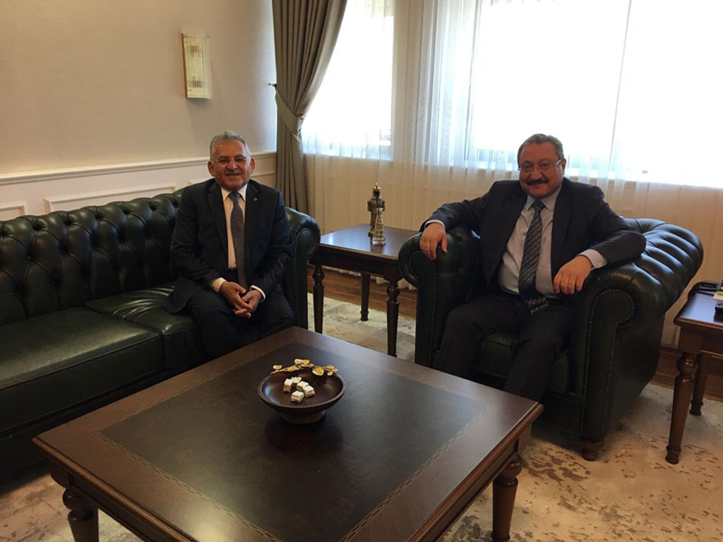 Kayseri Büyükşehir Belediye Başkanı Dr. Memduh Büyükkılıç, Cumhurbaşkanlığı Külliyesi’nde yapılan Büyükşehir Belediye Başkanları Zirvesi için gittiği Ankara’da Kayseri ile ilgili önemli görüşmeler yaptı. Başkan Büyükkılıç’ın görüşme trafiği erken saatlerde başladı ve gün boyunca devam etti. Büyükşehir Belediye Başkanı Dr. Memduh Büyükkılıç, Ankara’daki temaslarına Uluslararası Sağlık Hizmetleri A.Ş. (USHAŞ) Genel Müdürü Mehmet Ali Kılıçkaya’yı ziyaret ederek başladı. Görüşmede Kayseri’de yapılan Sağlık Turizmi Çalıştayı ve sonrasında sağlık turizmi alanında yaşanan gelişmeler ele alındı. Büyükşehir Belediye Başkanı Büyükkılıç, USHAŞ’ın ardından Sağlık Bakanlığı’na geçerek Erciyes Üniversitesi Eski Rektörü de olan Sağlık Bakan Yardımcısı Prof. Dr. Muhammet Güven ile görüştü. Sağlık Bakanlığı’nda Sağlık Bakan Yardımcısı Halil Eldemir ile de bir araya gelen Başkan Büyükkılıç, Bakan Yardımcılarıyla Kayseri’nin sağlıkla ilgili beklentilerini paylaştı. Büyükşehir Belediye Başkanı Dr. Memduh Büyükkılıç, Ankara’da Emniyet Genel Müdürü Mehmet Aktaş’ı da ziyaret etti. Temmuz ayında Emniyet Genel Müdürlüğü’ne atanan Mehmet Aktaş’a hayırlı olsun dileklerini ileten Başkan Büyükkılıç, ülkemizin huzur ve güvenini sağlayan fedakar emniyet teşkilatına Emniyet Genel Müdürü Aktaş’ın şahsında teşekkür etti. Büyükşehir Belediye Başkanı Büyükkılıç, Emniyet Genel Müdürlüğü’nün ardından Ulaştırma ve Altyapı Bakanlığı’na geçerek Altyapı Yatırımları Genel Müdürü Necdet Sümbül‘ü ziyaret etti. Başkan Büyükkılıç, Belsin-Terminal-Şehir Hastanesi-Nuh Naci Yazgan Üniversitesi-Mobilyakent Raylı Sistem Hattı’nın ihalesini yapacak olan Altyapı Genel Müdürlüğü’nü ziyaretinde ihale sürecine ilişkin bilgi aldı. Başkan Memduh Büyükkılıç, Ankara’daki yoğun temaslarını TCDD Genel Müdürlüğü ile sürdürerek Genel Müdür Ali İhsan Uygun ile TCDD Taşımacılık A.Ş. Genel Müdürü ve Yönetim Kurulu Başkanı Erol Arıkan'ı ayrı ayrı ziyaret etti. Ziyarette her iki müdürlüğün sahasında olan konularla ilgili değerlendirmelerde bulunuldu. Büyükşehir Belediye Başkanı Dr. Memduh Büyükkılıç, Ankara temasları çerçevesinde Sivil Havacılık Genel Müdürlüğü’nü de ziyaret etti.