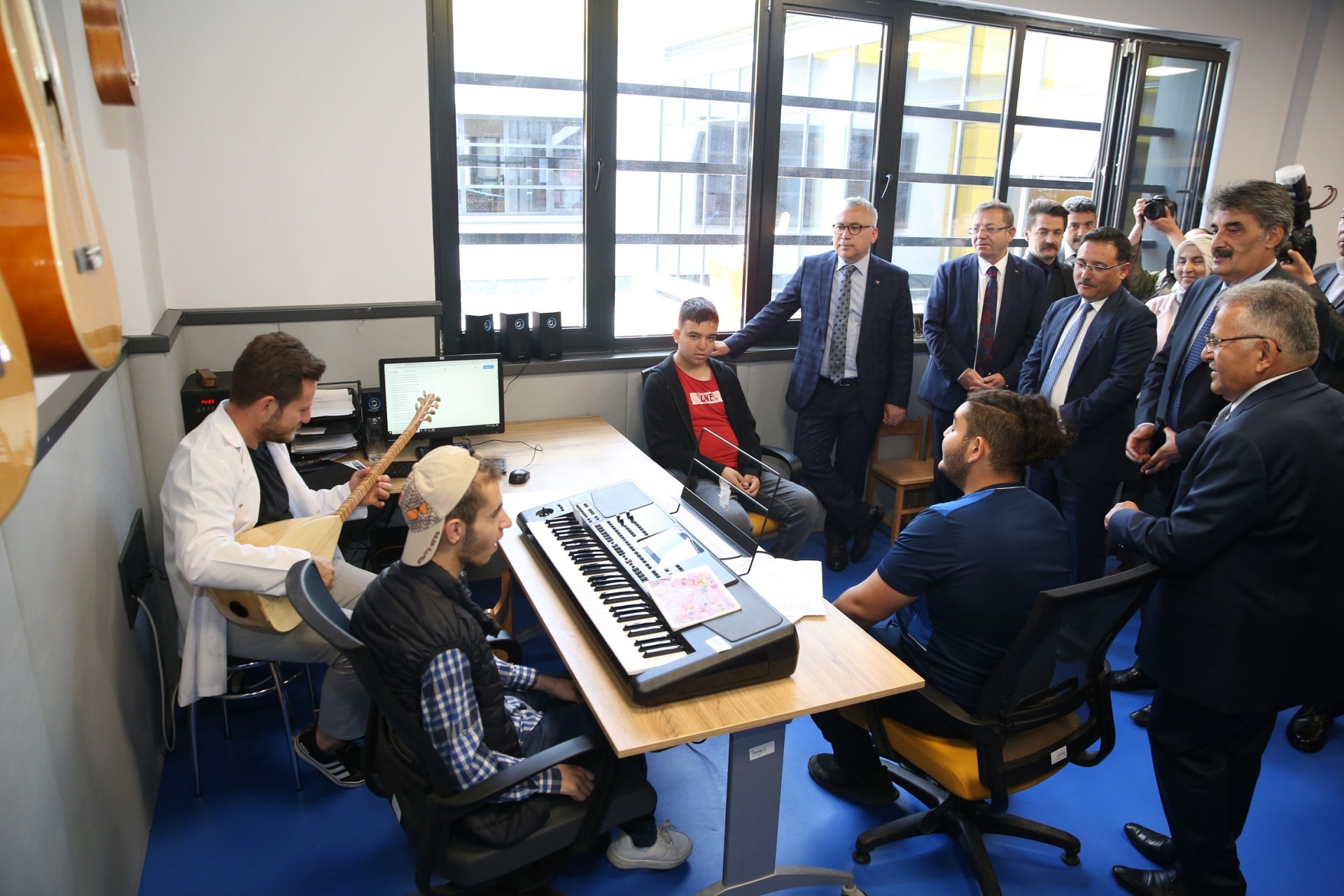Tesisi ilgiyle gezen, sınıflarda özel öğrencilerle yakından